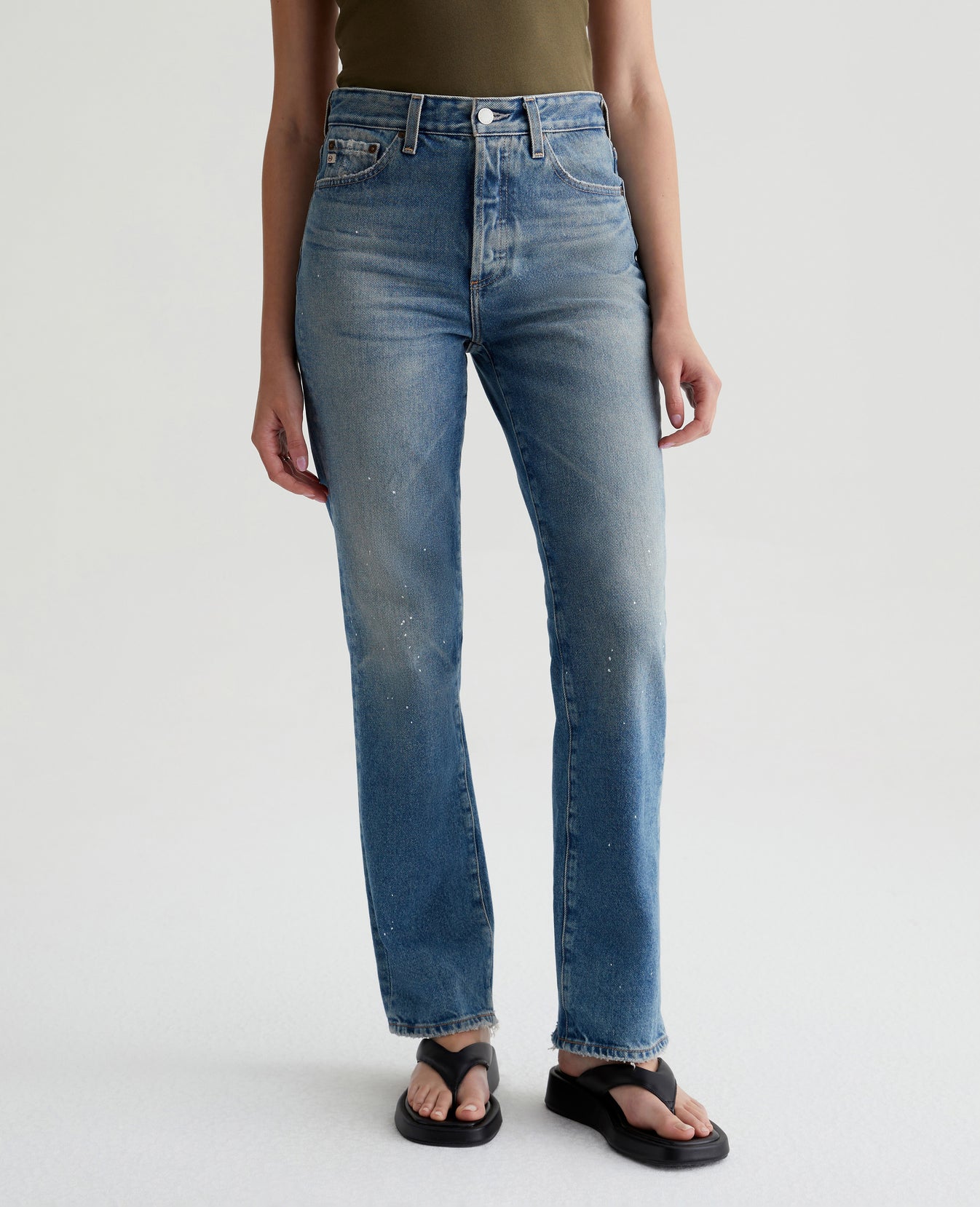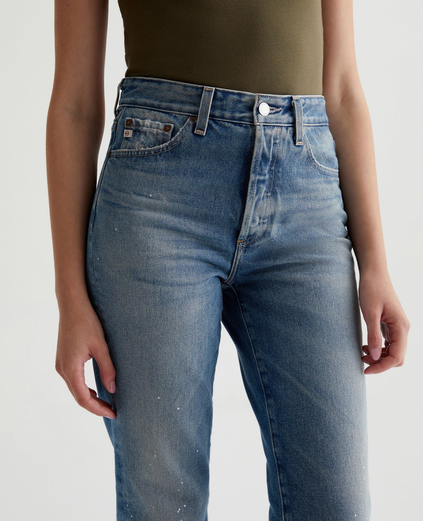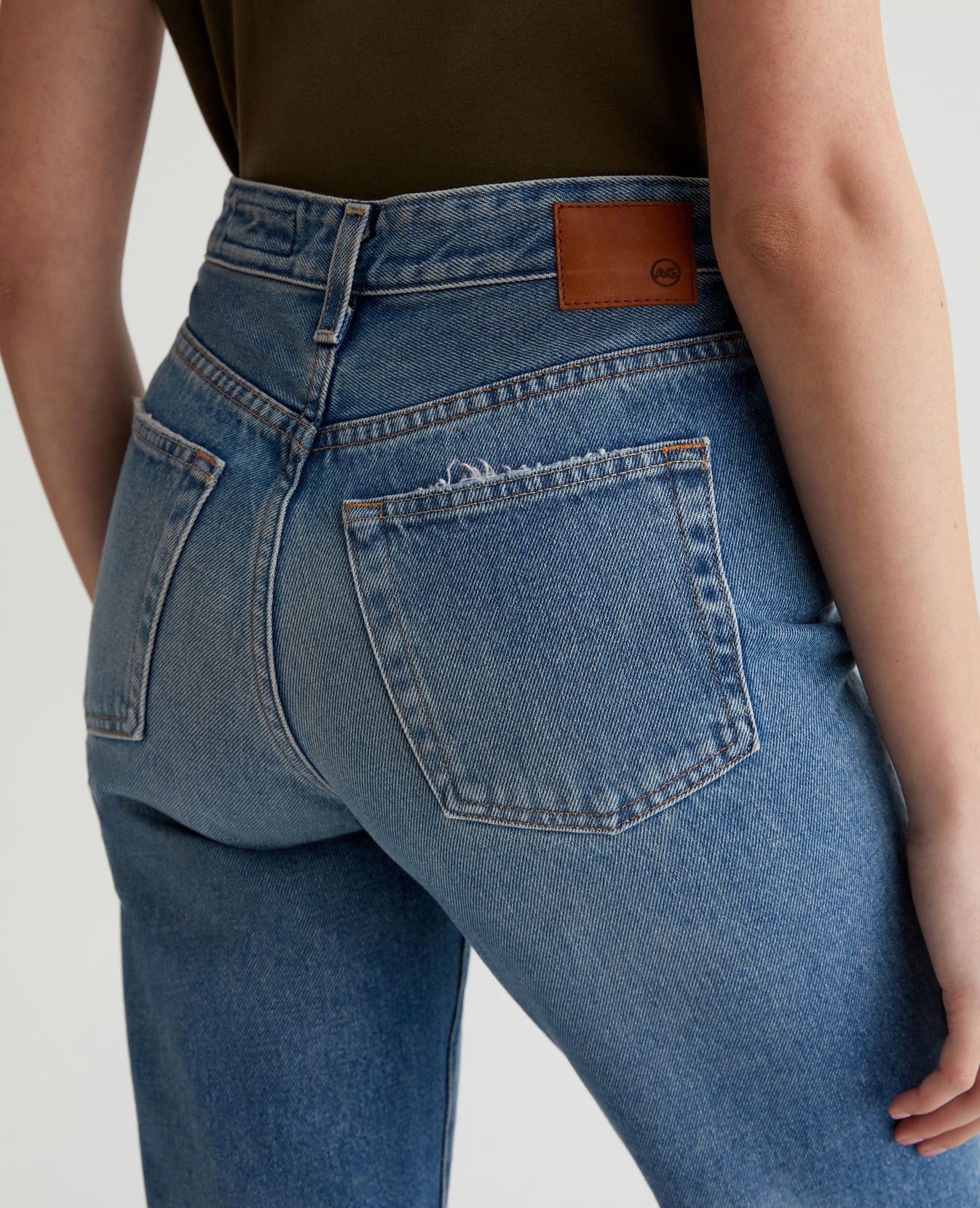 Alexxis is a vintage straight jean for women, updated here in a 15-year medium wash with vintage-inspired fading, distressing, and white paint flecks. The pair has worn hems that are torn up at the back. Designed with a retro high waist and a button fly, the Alexxis features a fitted silhouette through the hips and a straight fit down the legs. This women's jean is crafted from 12.75 oz. Savior Rigid Denim in 100% cotton.