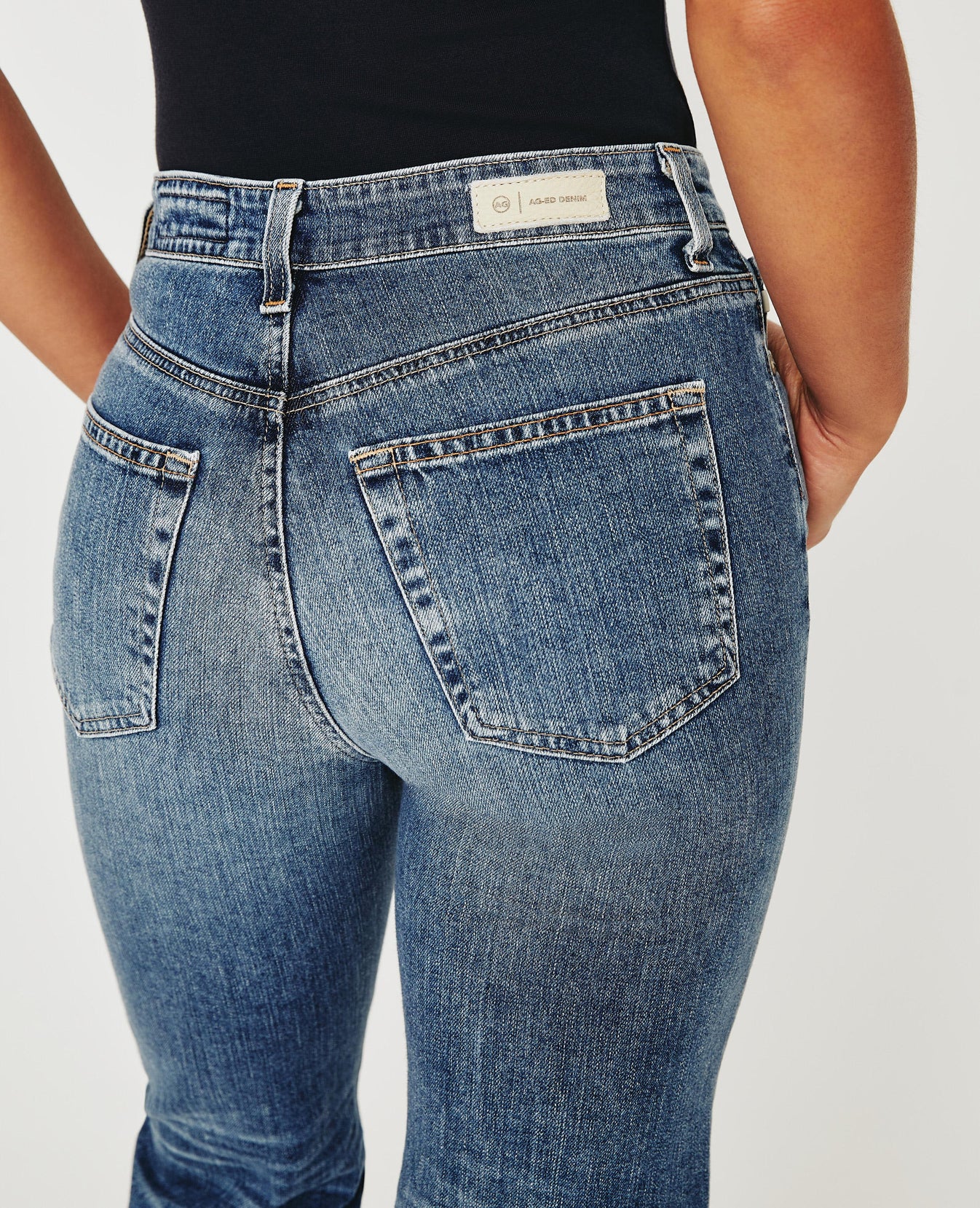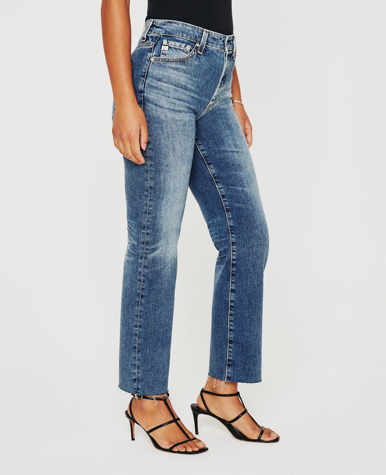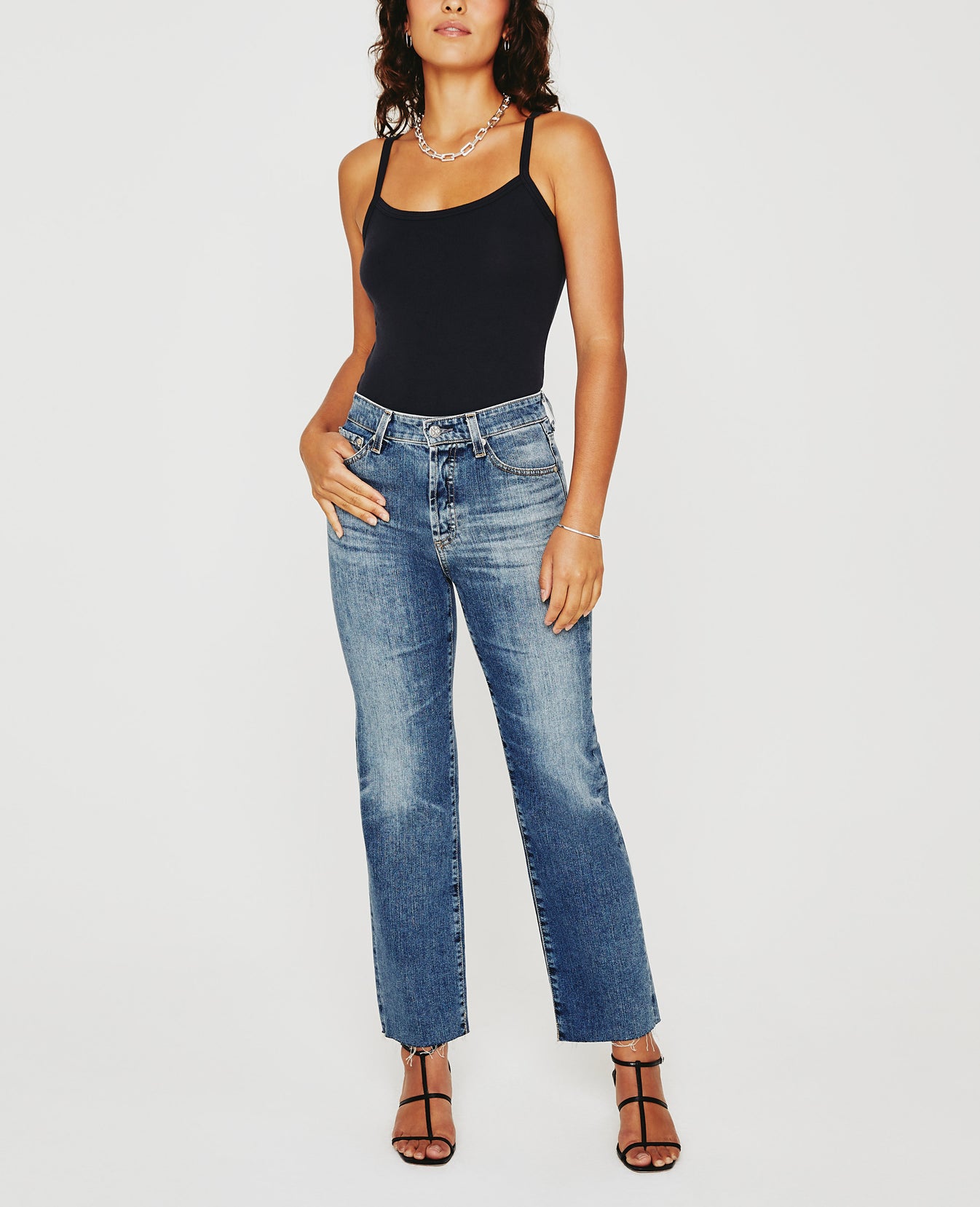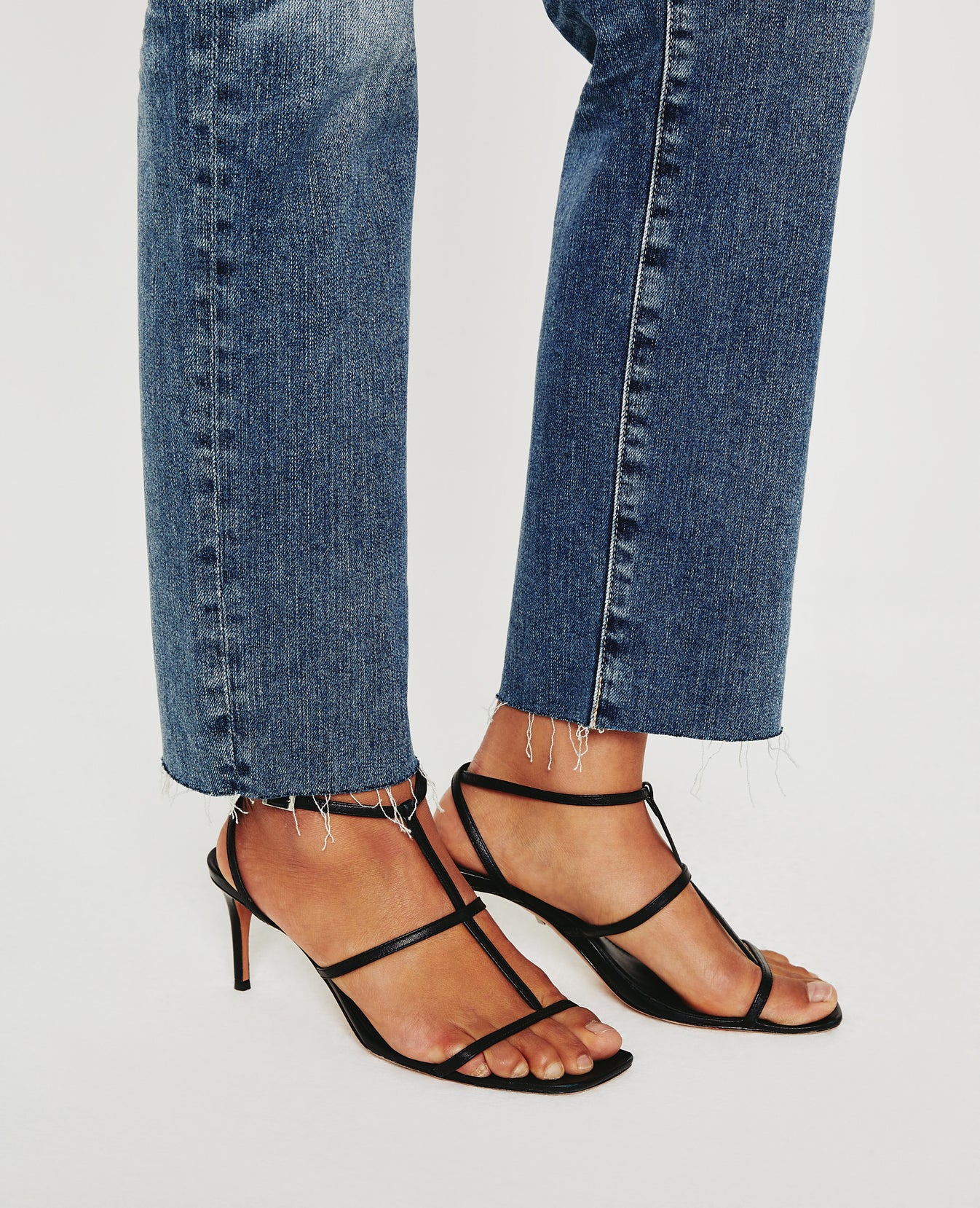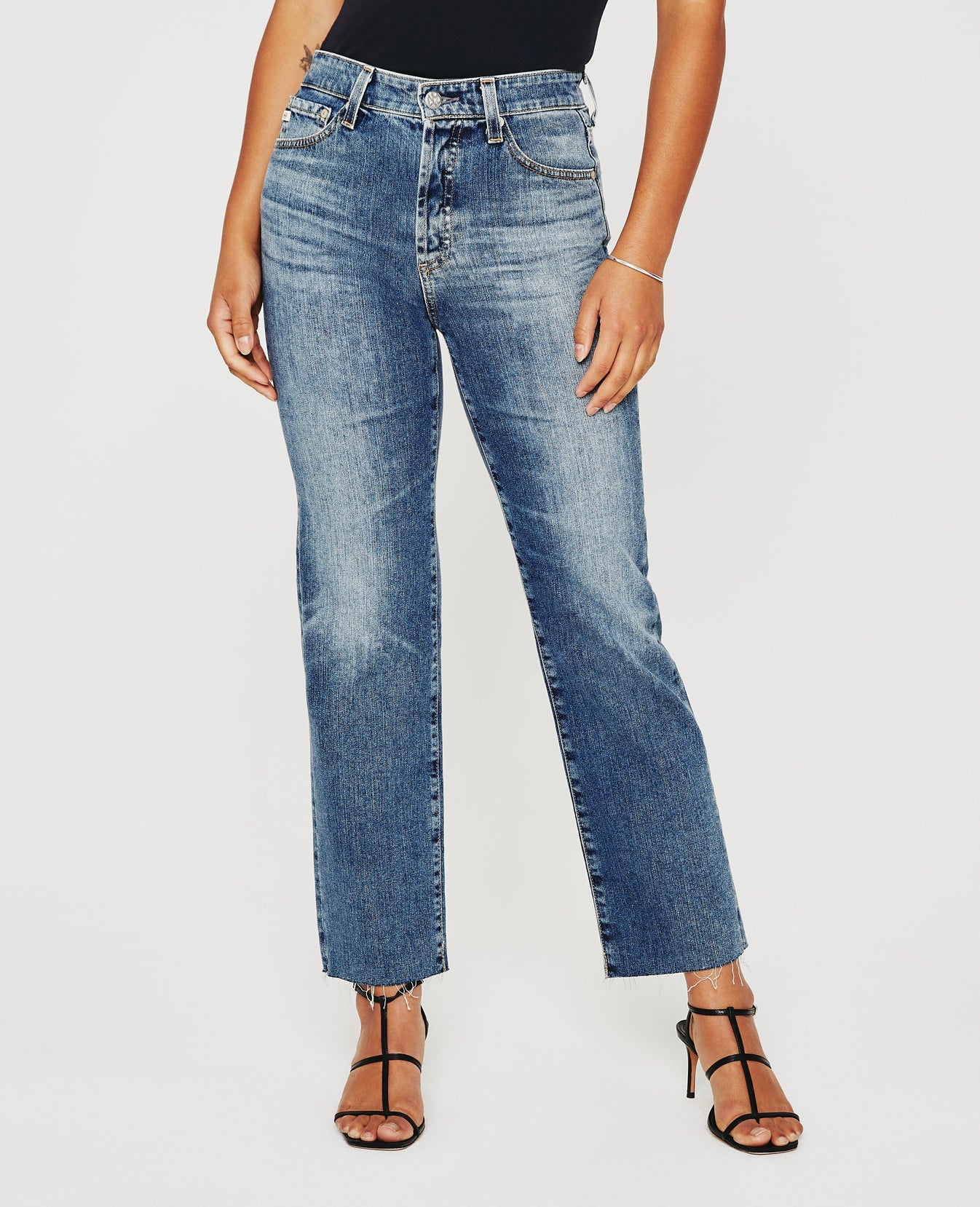 Alexxis Crop is a vintage-style straight jean for women, offered in a medium blue wash with fading and subtle whiskering. Our Alexxis Crop has an ultra-high waist and is fitted through the hips before falling to a straight-leg silhouette with cropped, raw hems. This pair is designed in 11 oz. Lead Denim featuring a bit of stretch for a comfortable feel right from the start.