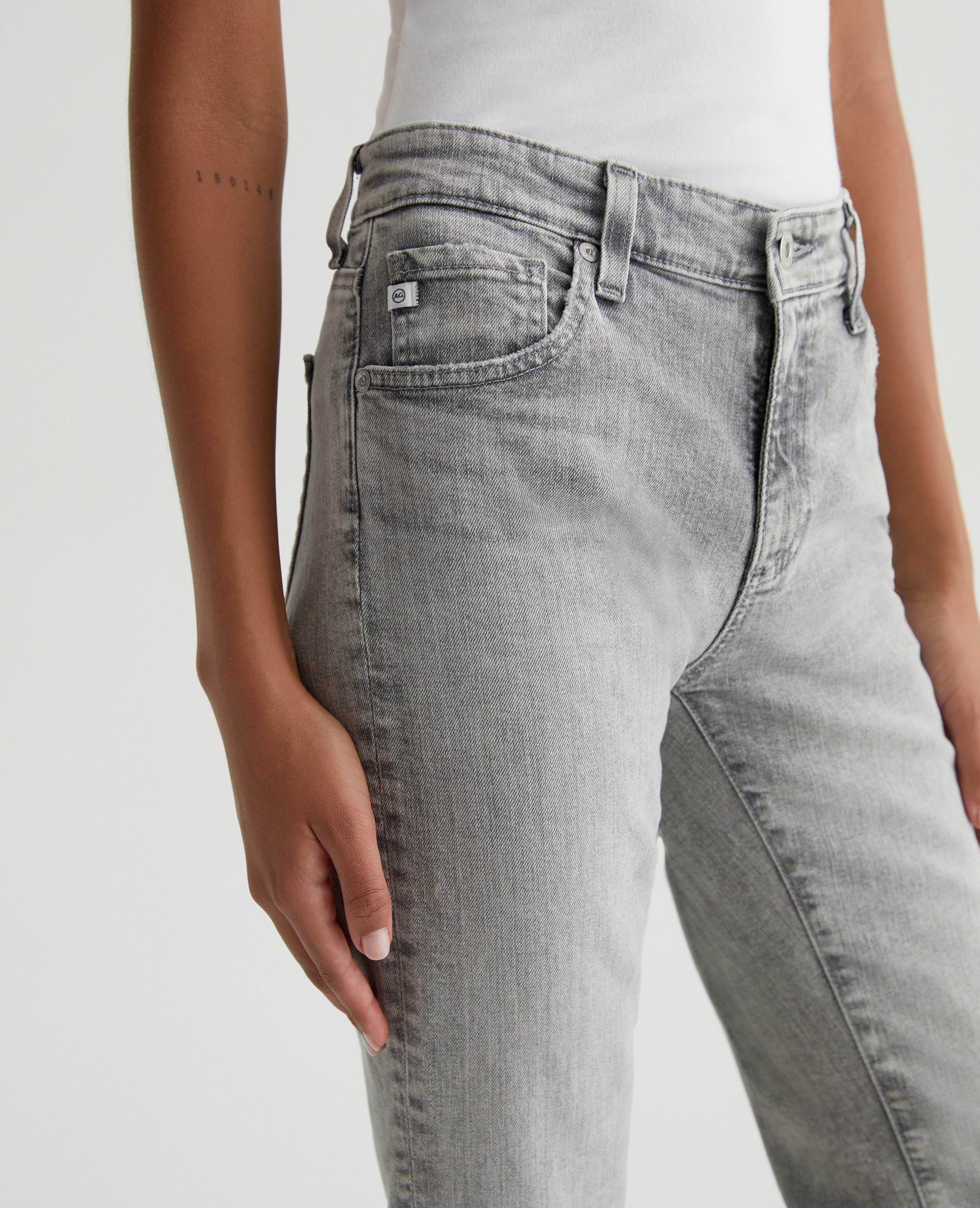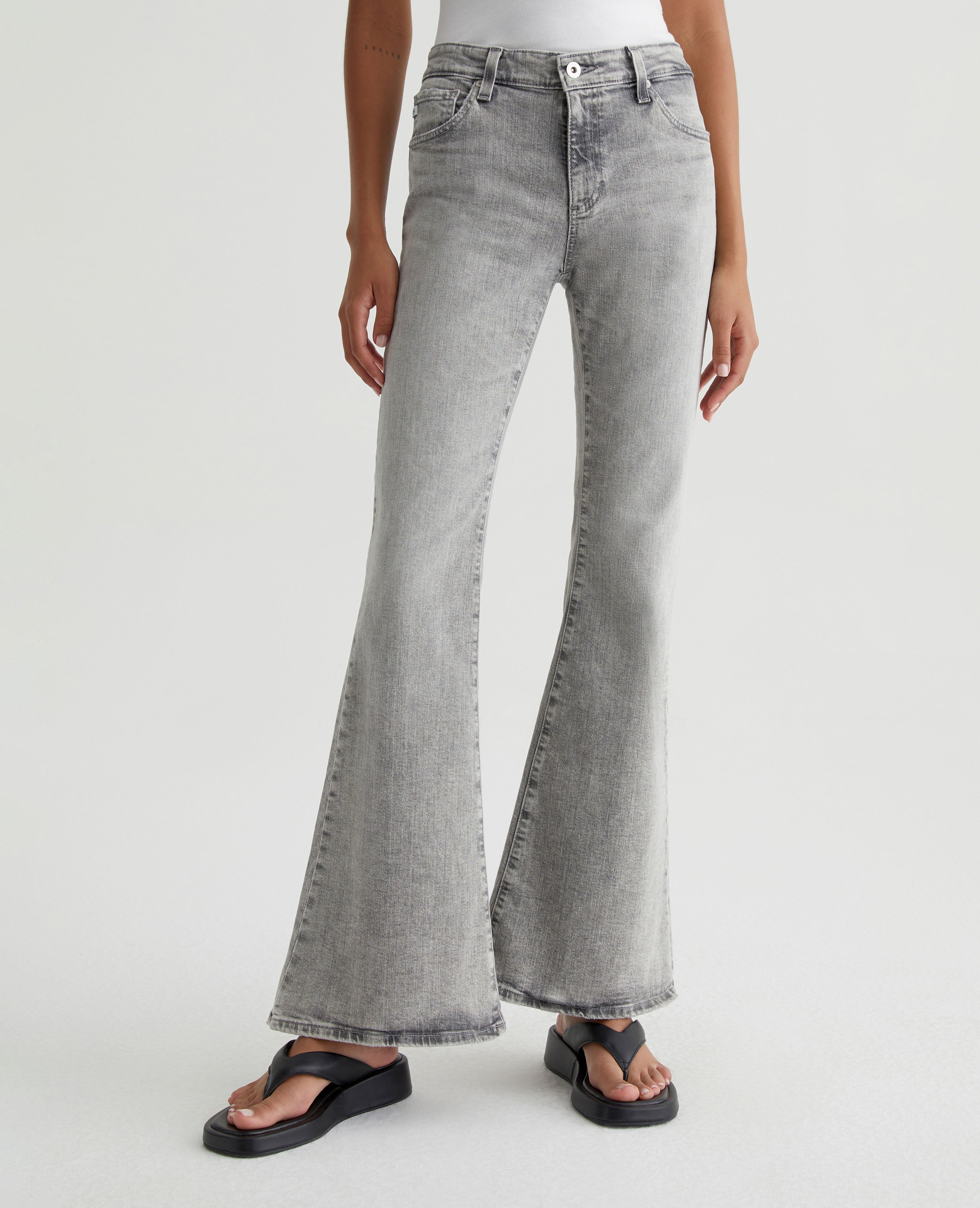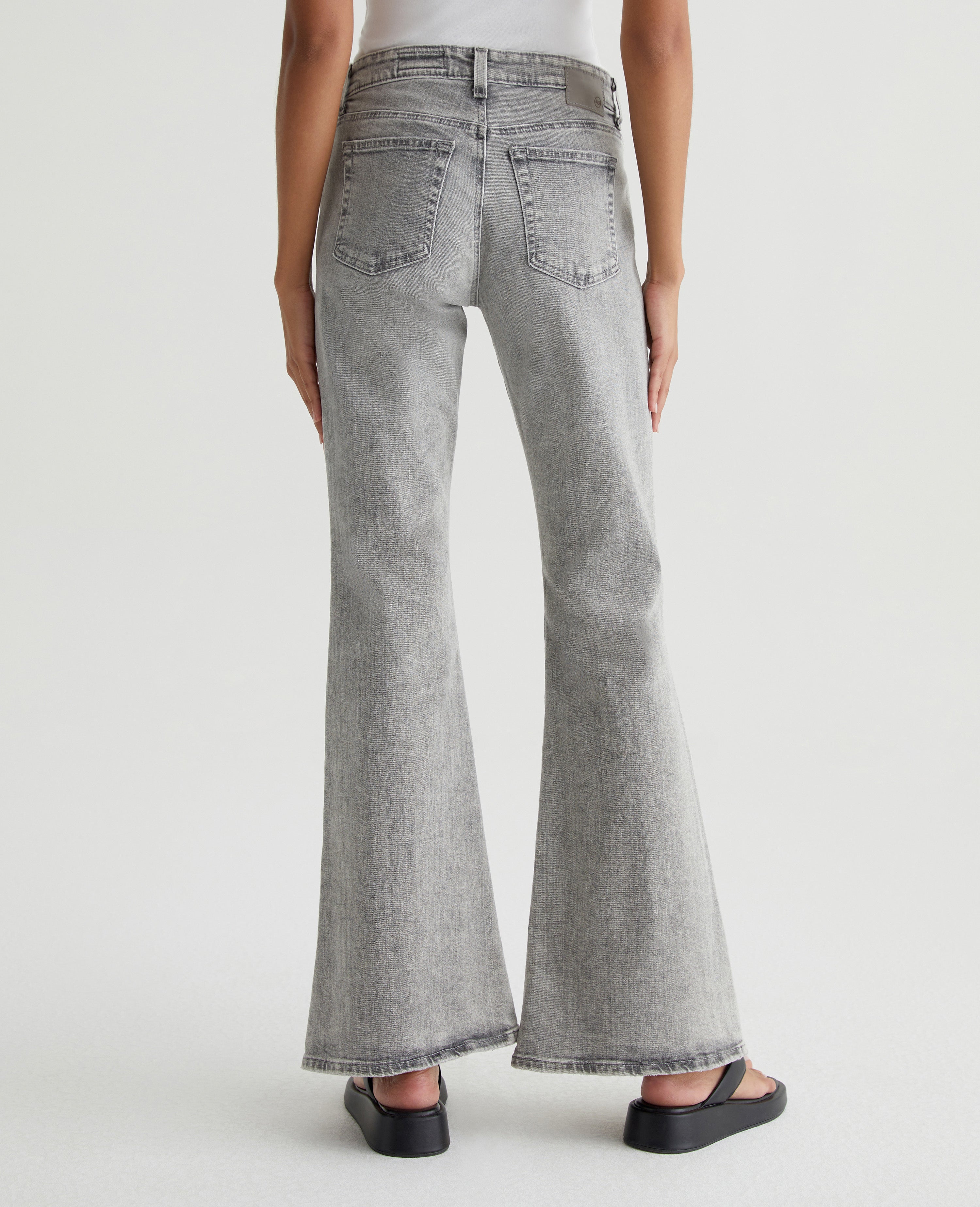 Angeline is a mid-rise jean with a dramatic flared silhouette. It's done here in a grey moonwash with heavy fading and gently worn pocket edges. Featuring classic five-pocket styling, the style comes in 11.25 oz. Static Stretch Denim for an extra-comfortable feel.