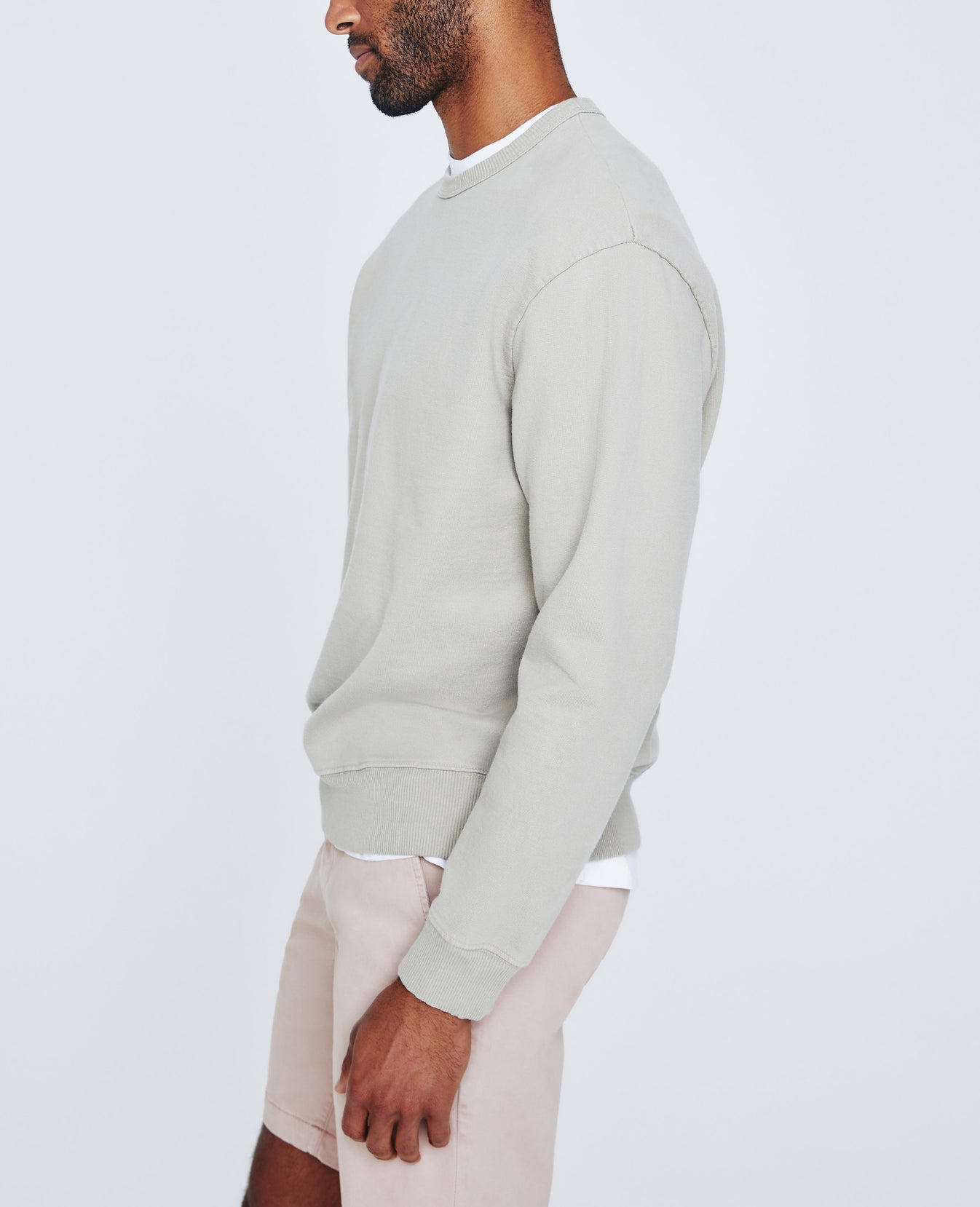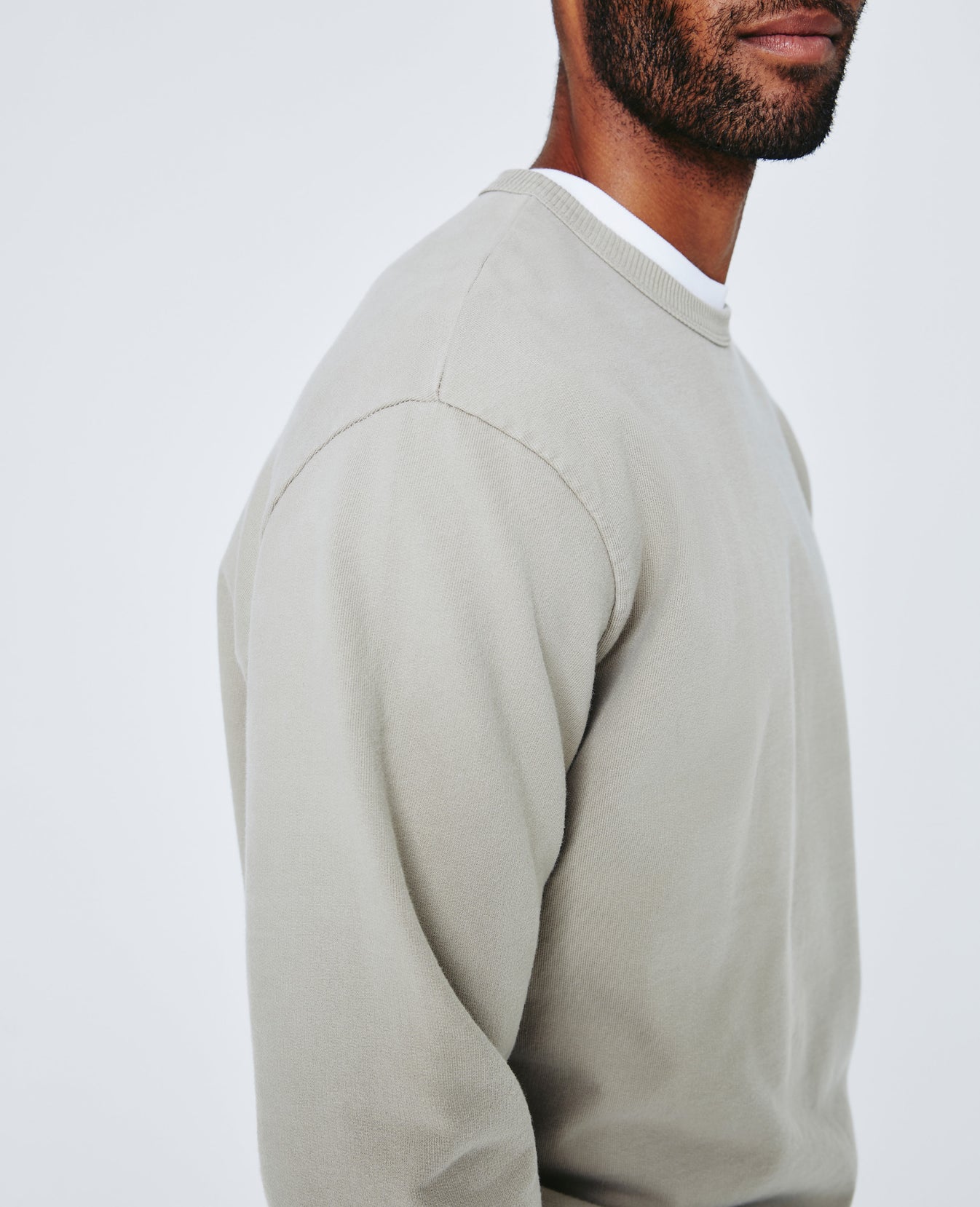 The Arc Crew for men features a beige hue and vintage-inspired ribbing at the collar, waist, and sleeves. This men’s long sleeve top is designed in an exclusive AG-made Essential Luxe Terry, thoughtfully knitted with pima cotton to prevent torquing, shrinking, and color loss.