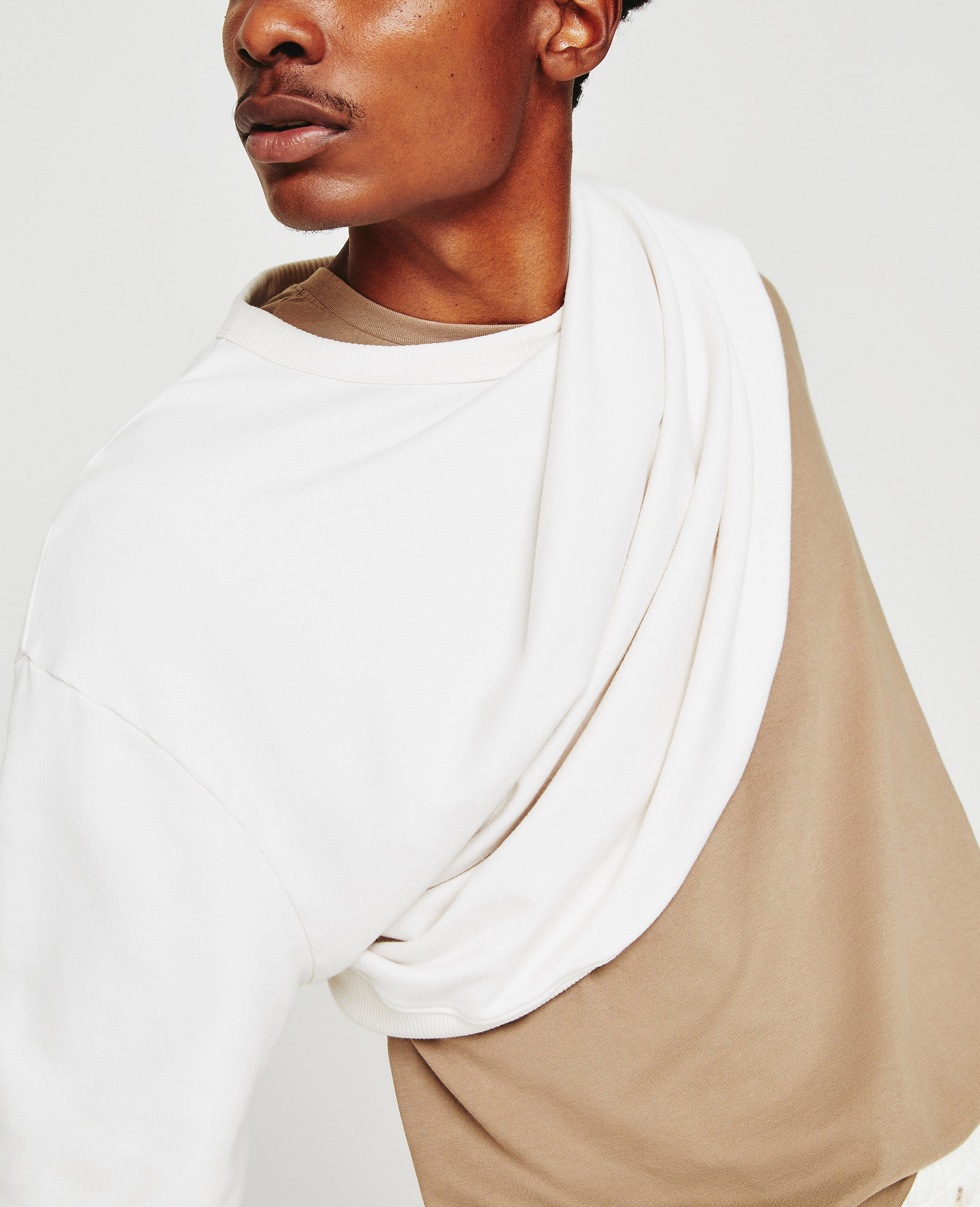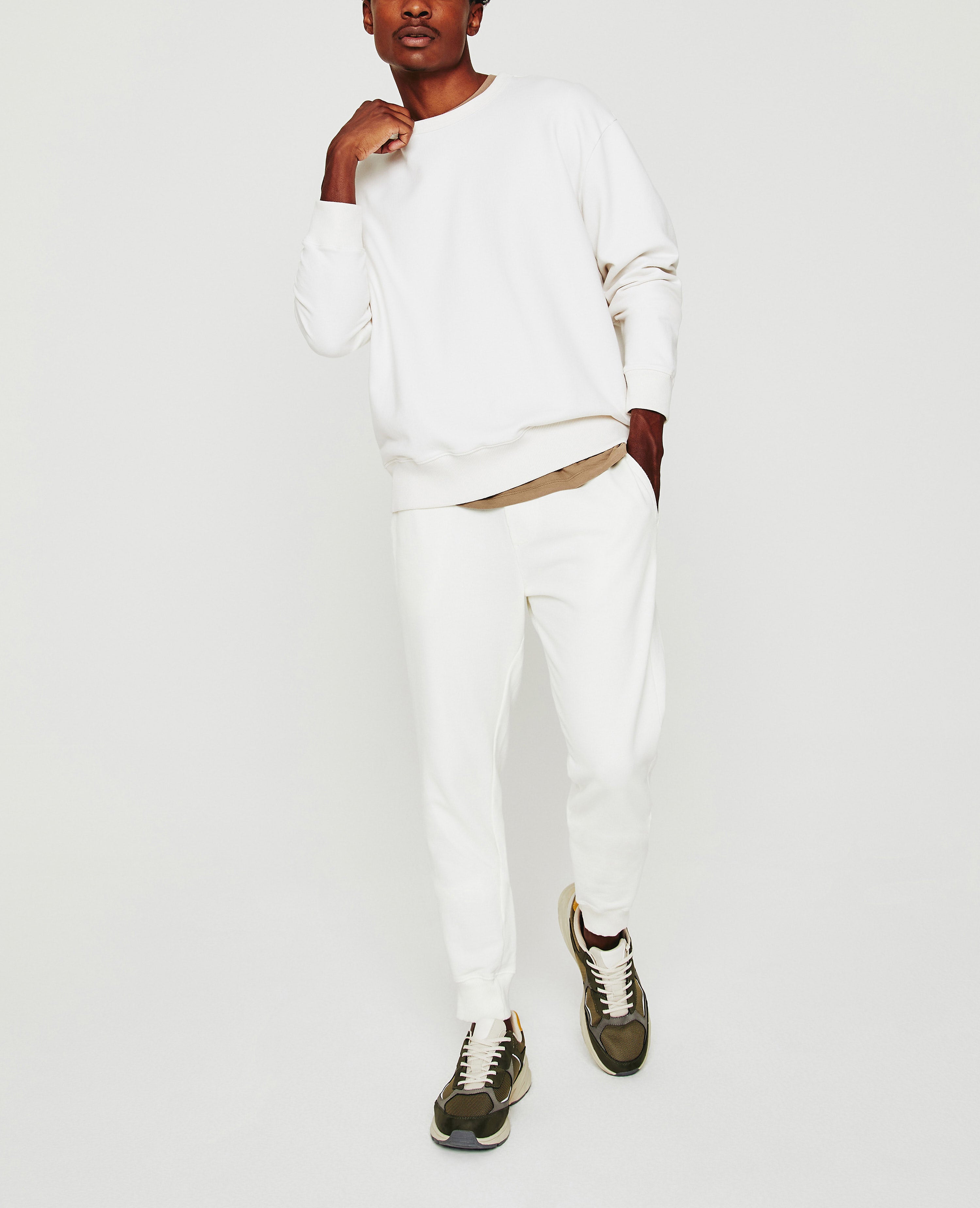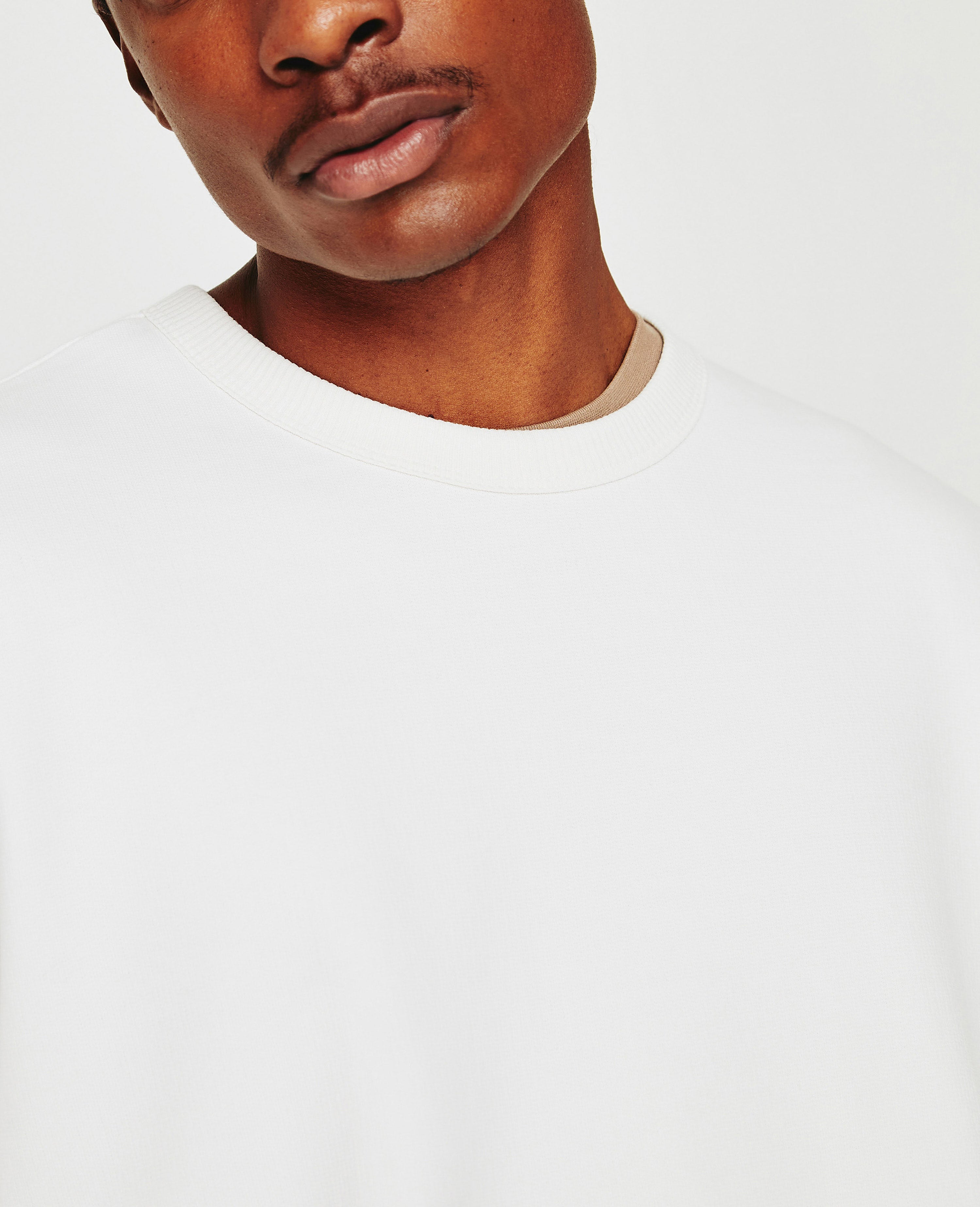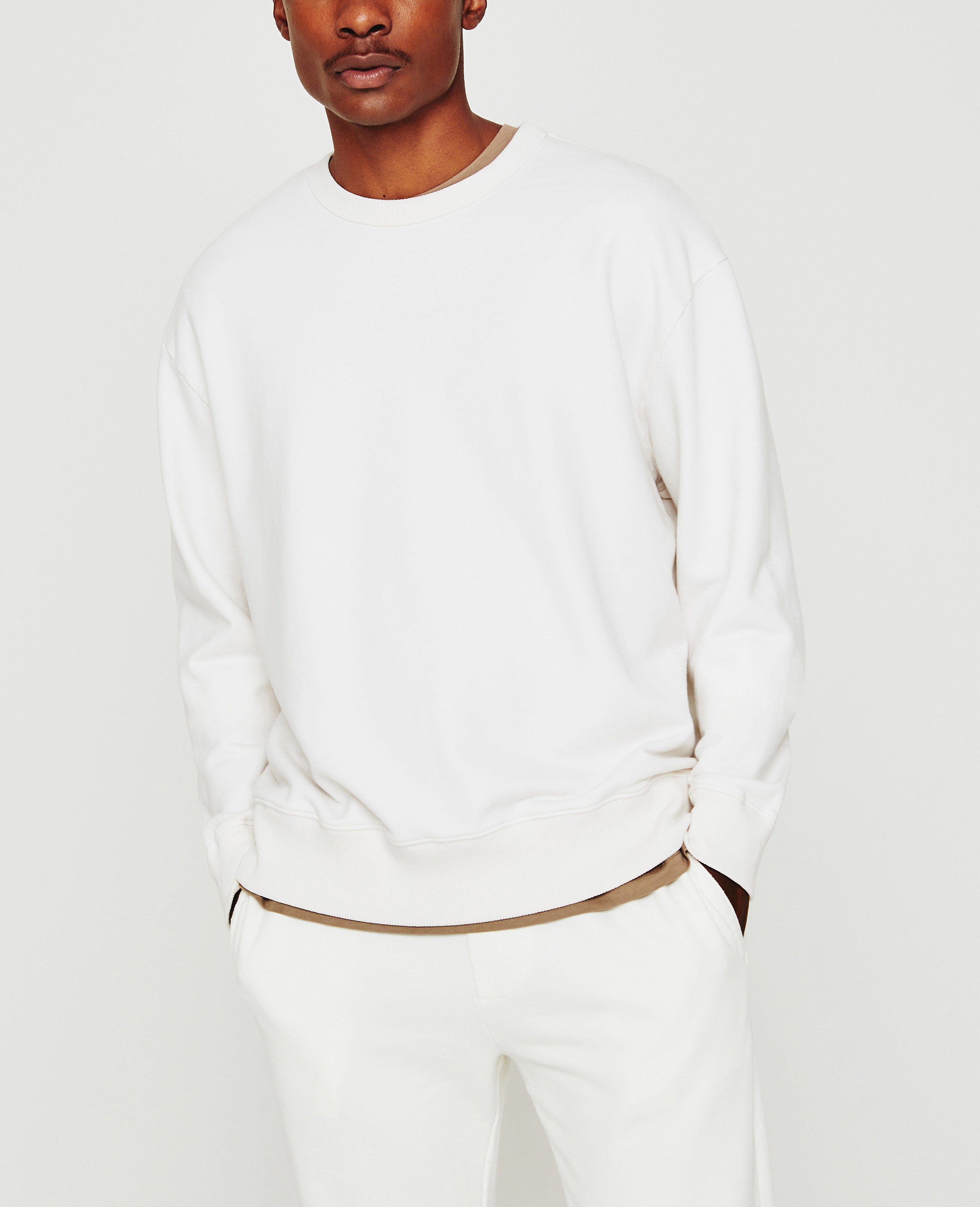 The Arc Crew for men features a ivory hue and vintage-inspired ribbing at the collar, waist, and sleeves. This men’s long sleeve top is designed in an exclusive AG-made Essential Luxe Terry, thoughtfully knitted with pima cotton to prevent torqueing, shrinking, and color loss.