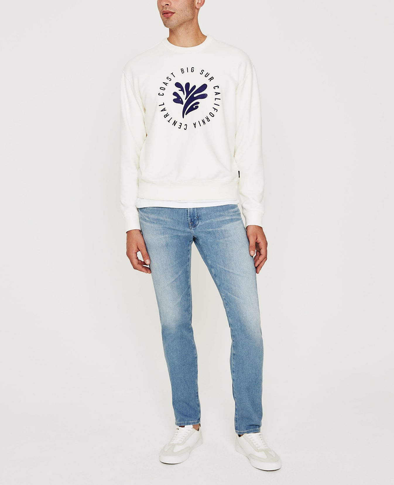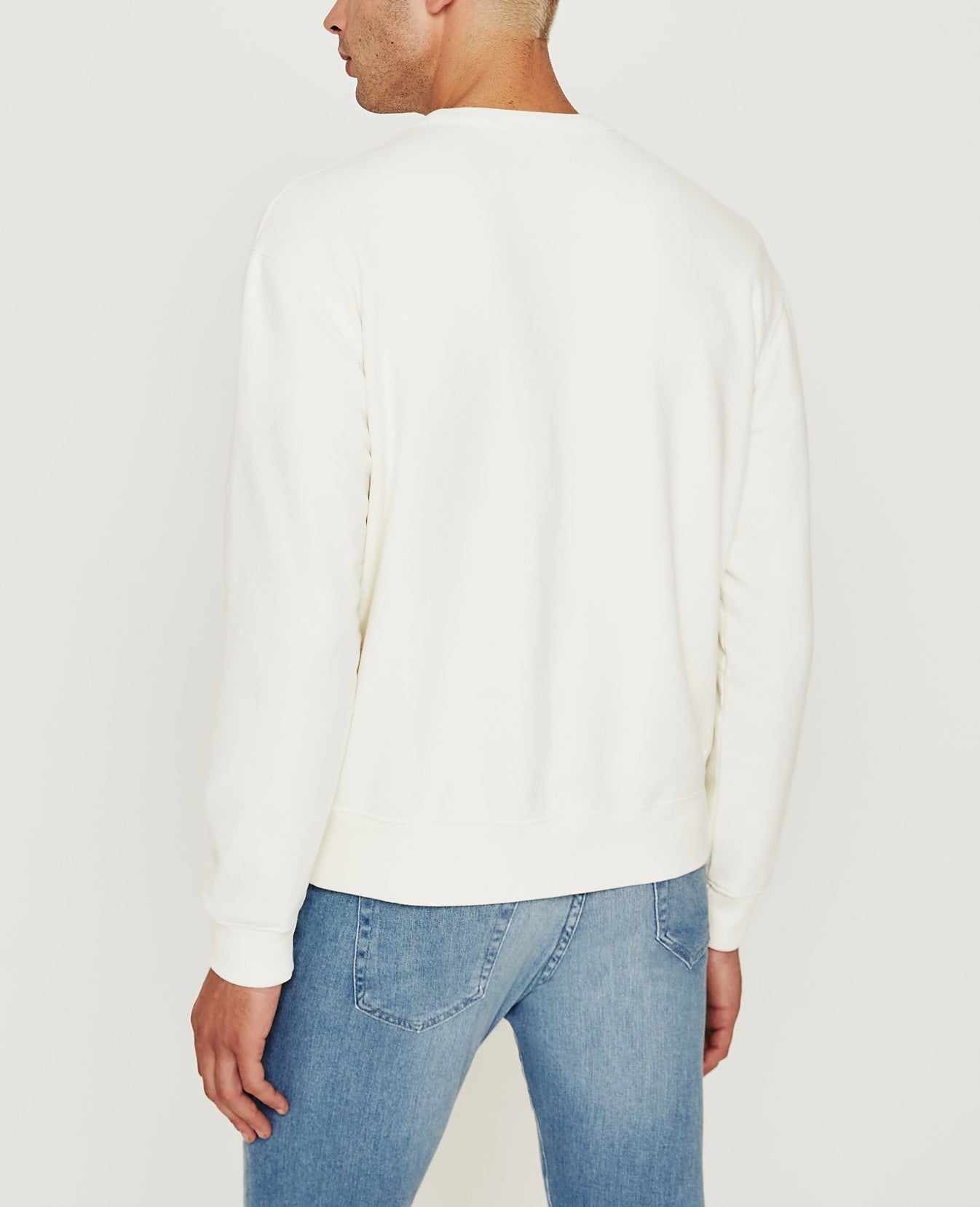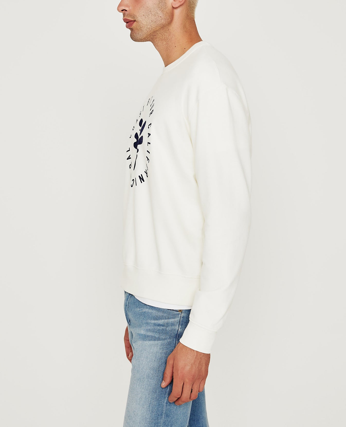 The Arc Crew for men is an ivory-hued crewneck sweatshirt with a vintage-inspired splash graphic print at the front. This men’s long sleeve top is designed in our exclusive Essential Luxe Terry, which is thoughtfully knitted from pima cotton to prevent torquing, shrinking, and color loss. Banded rib trim finishes the collar, waist, and sleeves.