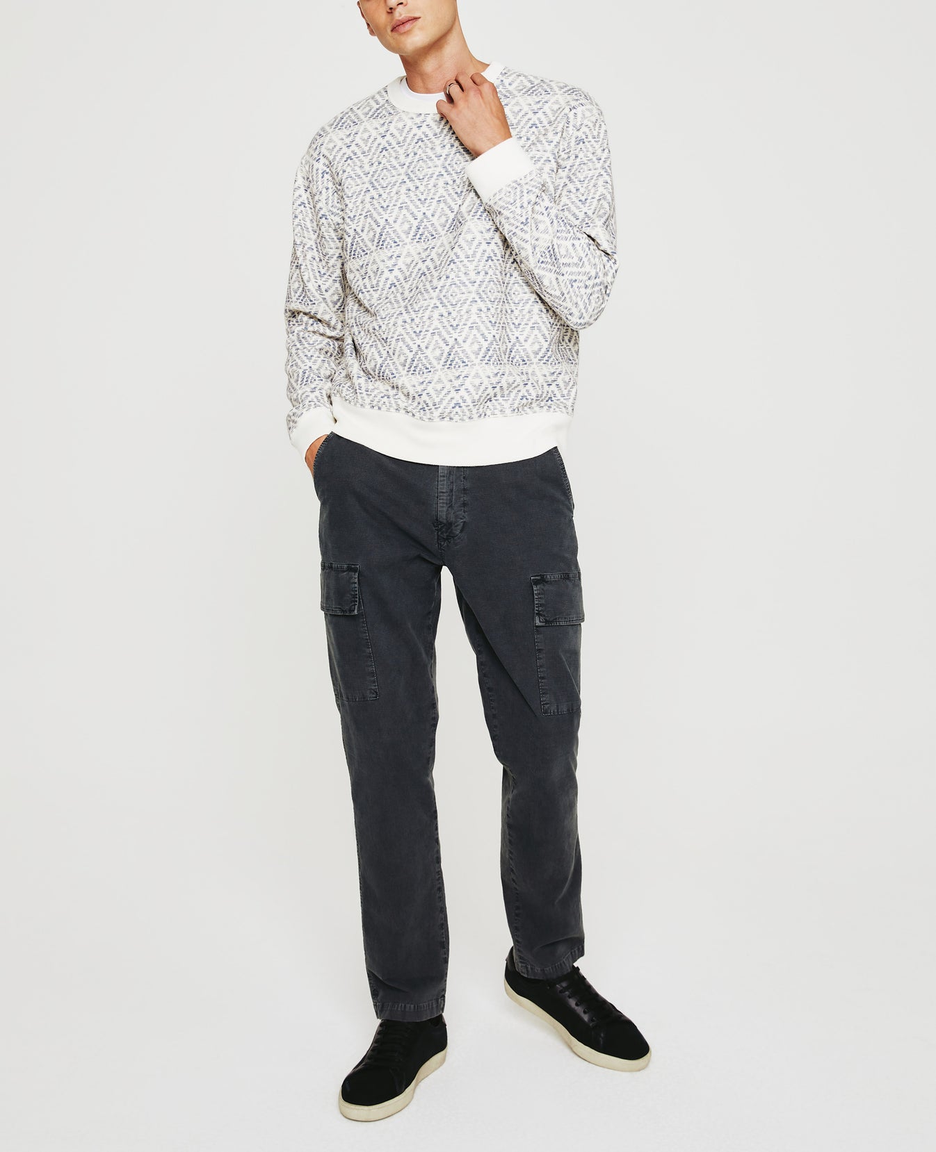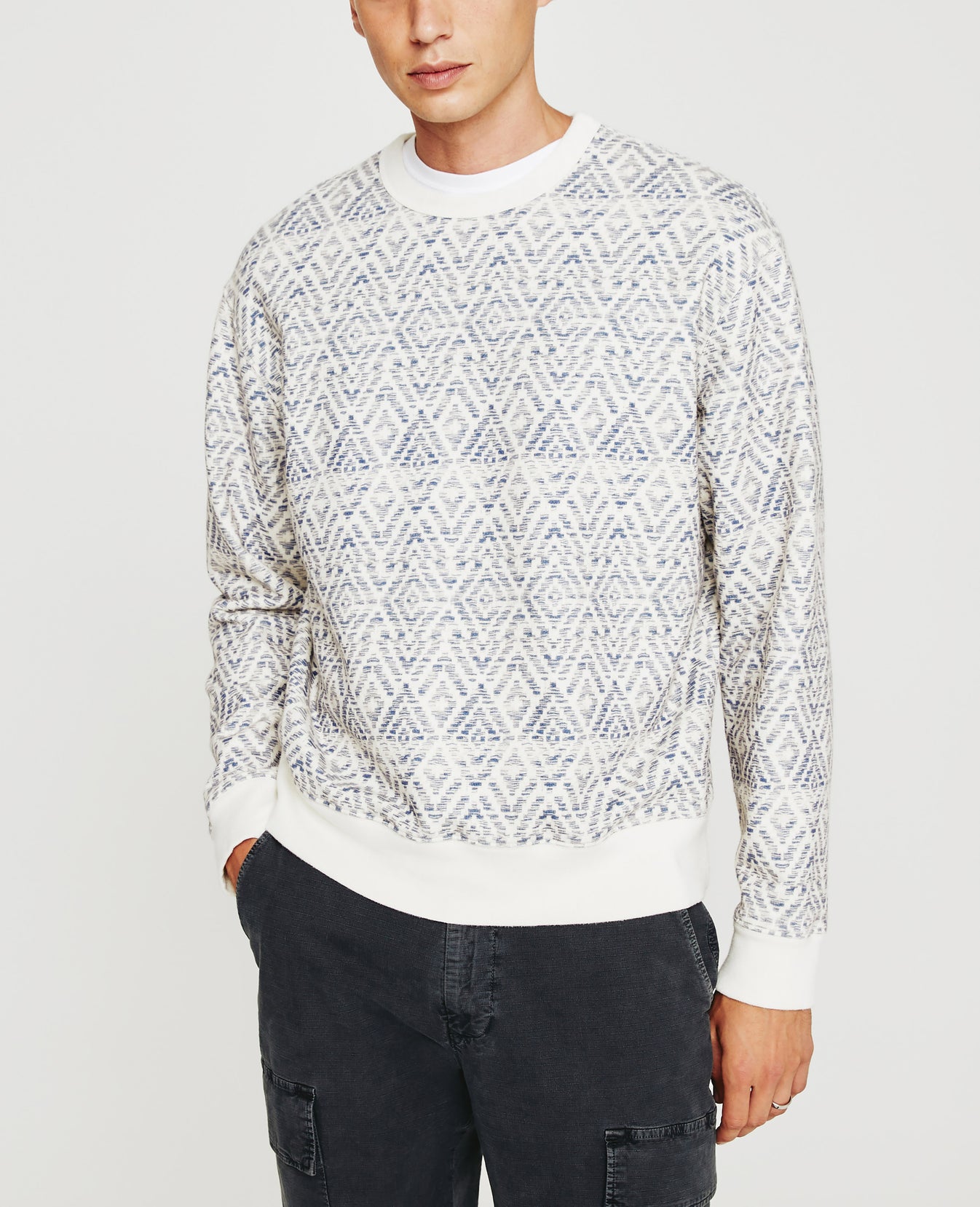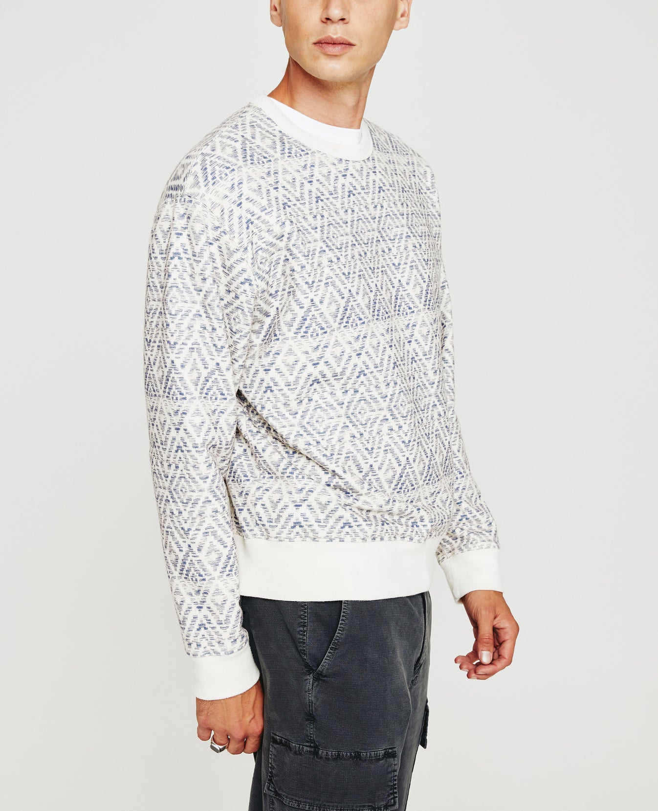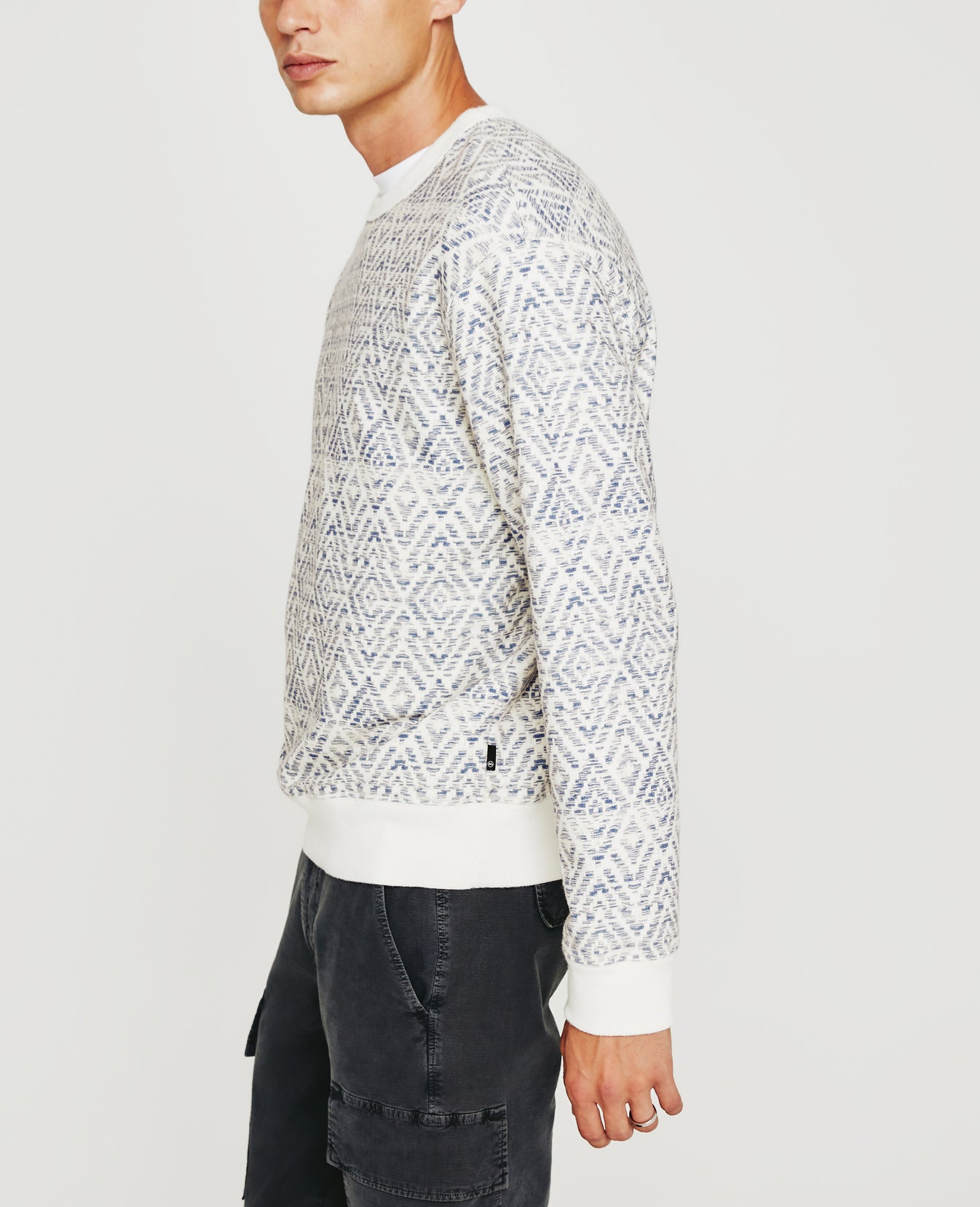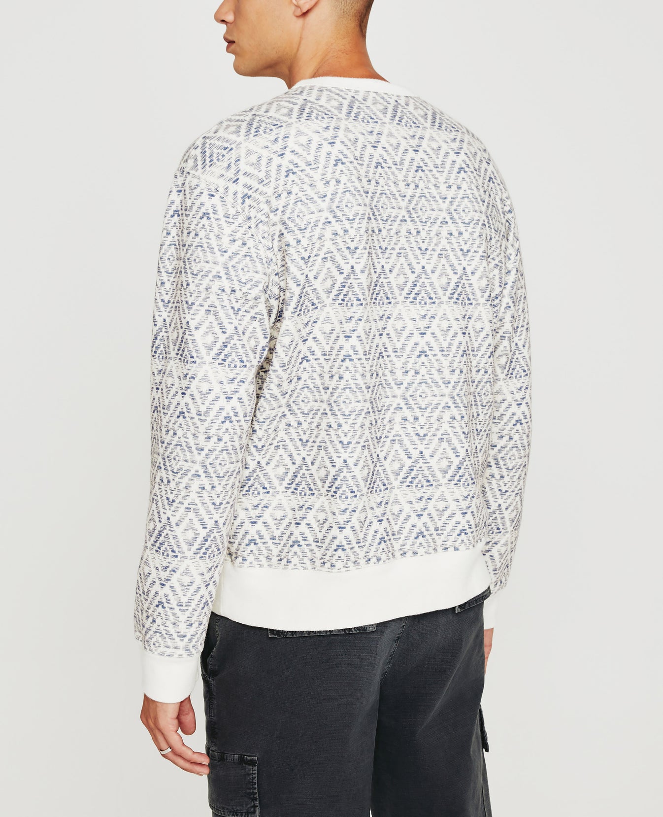 The Arc Crew for men is a crewneck sweatshirt in a digital chevron print that mimics the textured look of a heavy textile. This men’s long sleeve top is designed in an exclusive AG-made Essential Luxe Terry, a 100% cotton fabric that's been thoughtfully knitted with pima cotton to prevent torquing, shrinking, and color loss. Solid rib trim at the collar, waist, and sleeves adds a vintage finish.