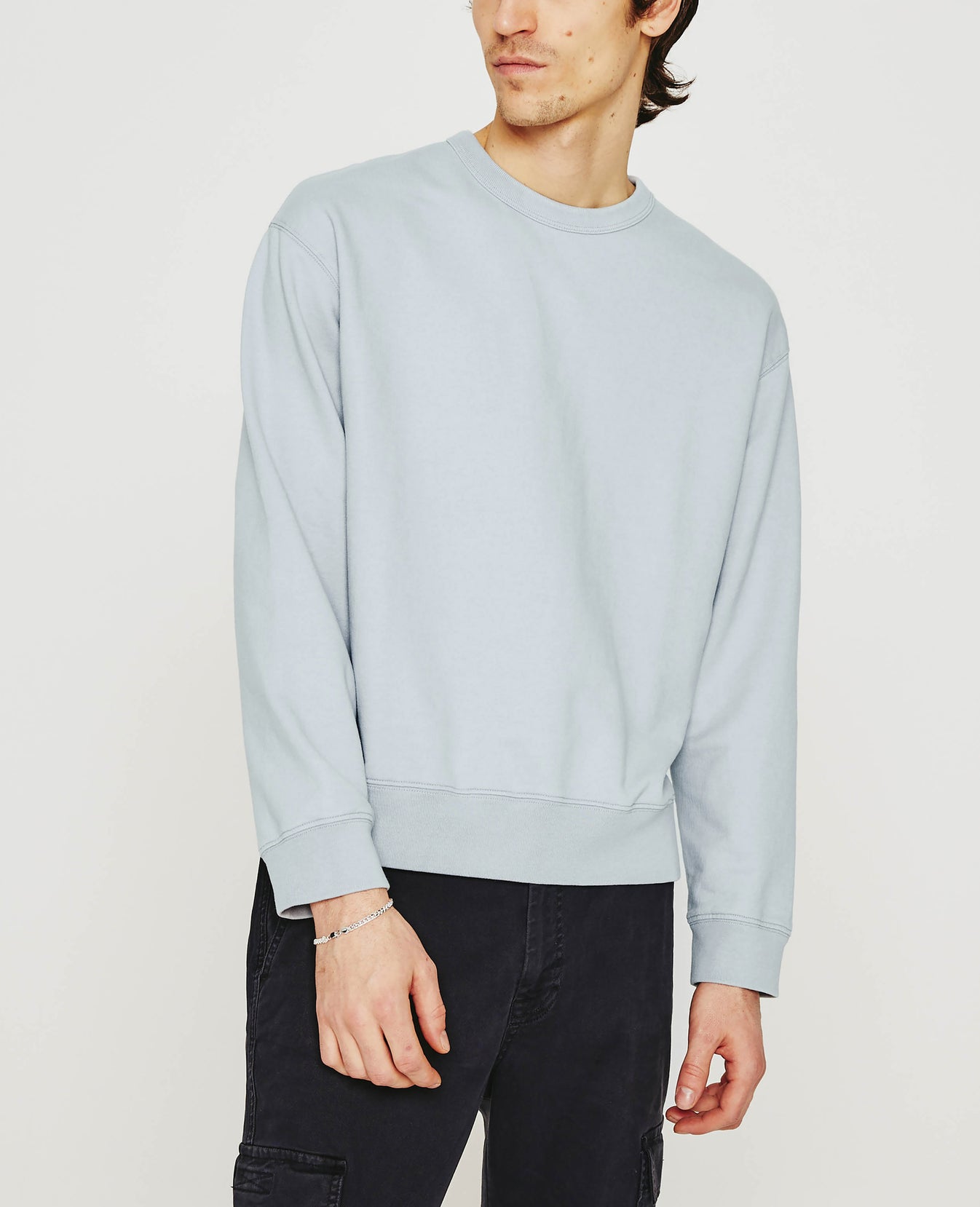 The Arc Crew is our classic crewneck sweatshirt in a relaxed fit. Featuring a grey shade, this men’s long-sleeve style has an extra-comfortable feel in AG's Essential Luxe Terry, which has been specially knitted with pima cotton to prevent torquing, shrinking, and color loss. Ribbed trim finishes the look.