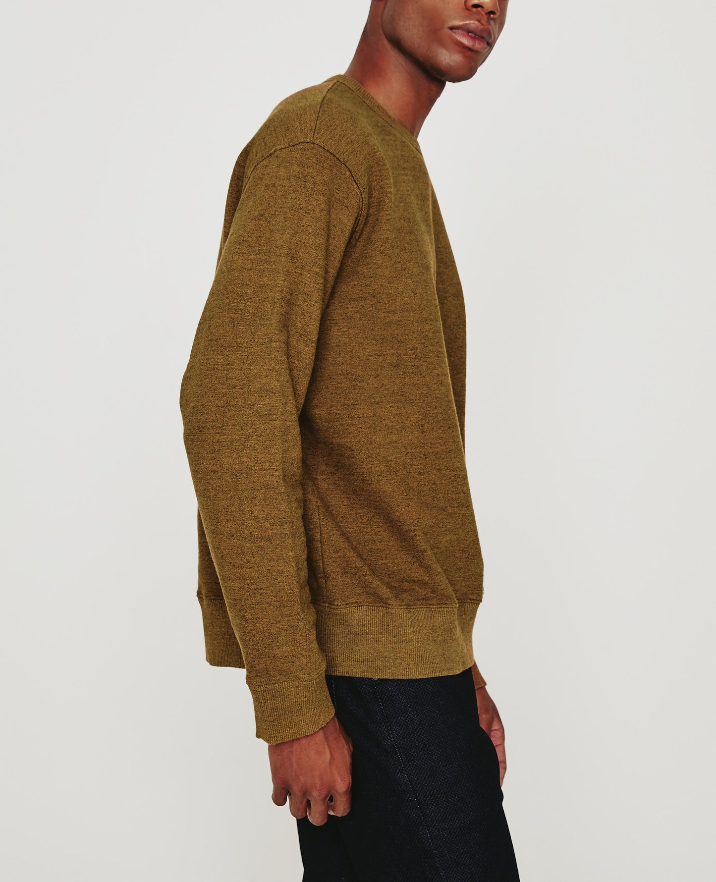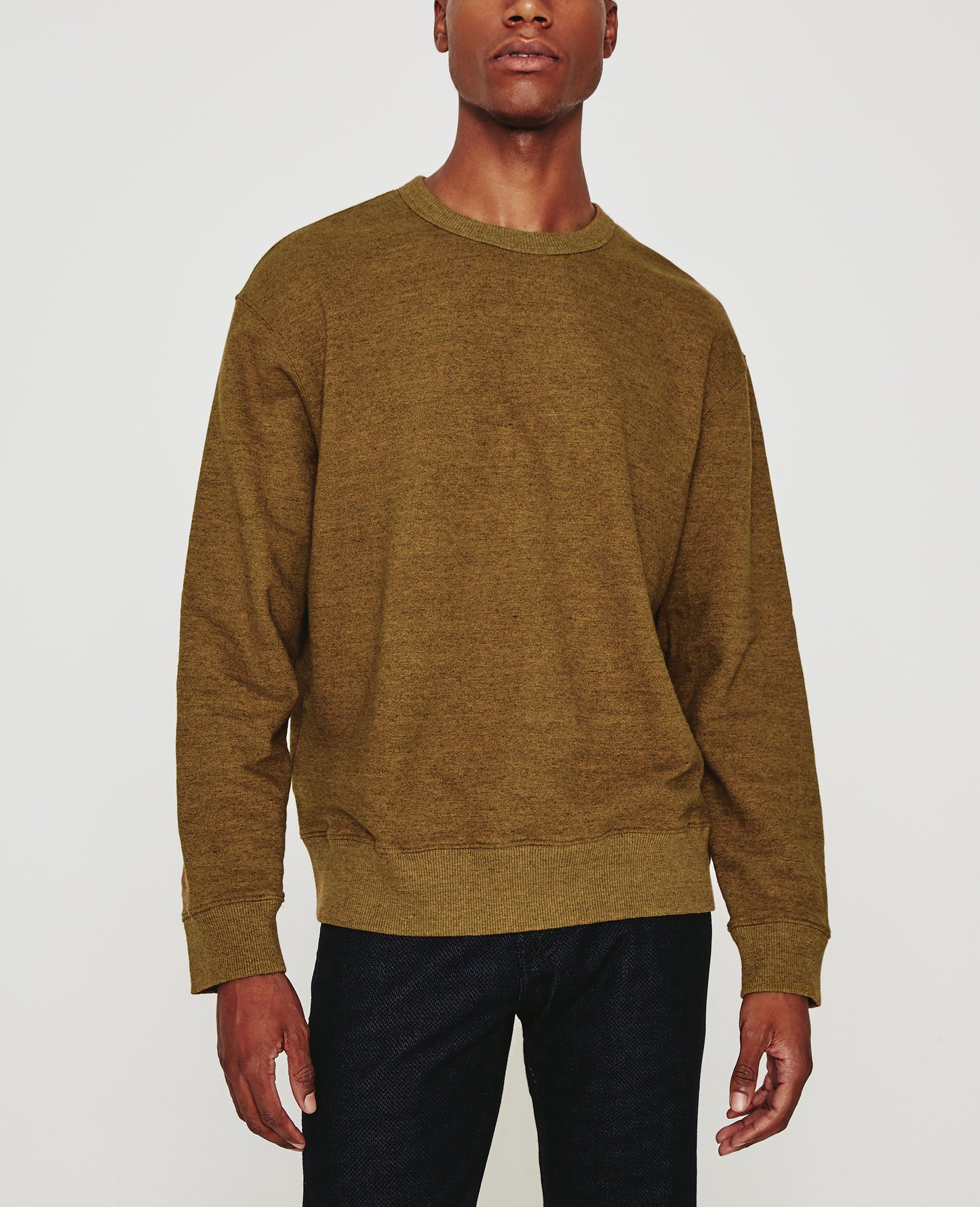 The Arc Crew for men features a brown hue and vintage-inspired ribbing at the collar, waist, and sleeves. This men’s long sleeve top is designed in an exclusive AG-made Soft Heather Terry, thoughtfully knitted with pima cotton to prevent torquing, shrinking, and color loss.