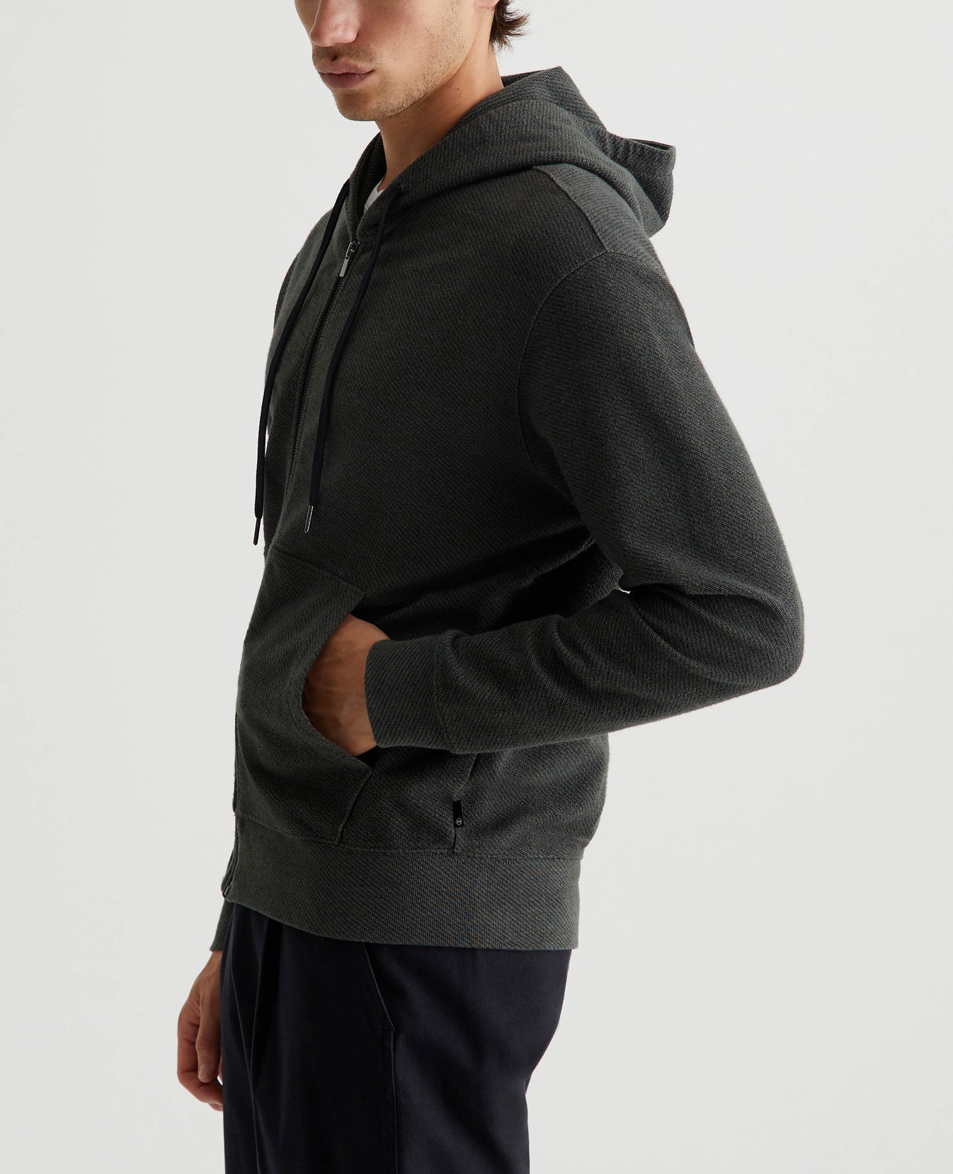 The Arc Zip Hoodie is your new go-to for casual days. It's relaxed and easy to wear in 100% cotton terry with the textured side facing out. Done here in dark green with a speckled appearance, this cozy layer features an adjustable drawstring hood, roomy pockets at the front, and soft banded trim.