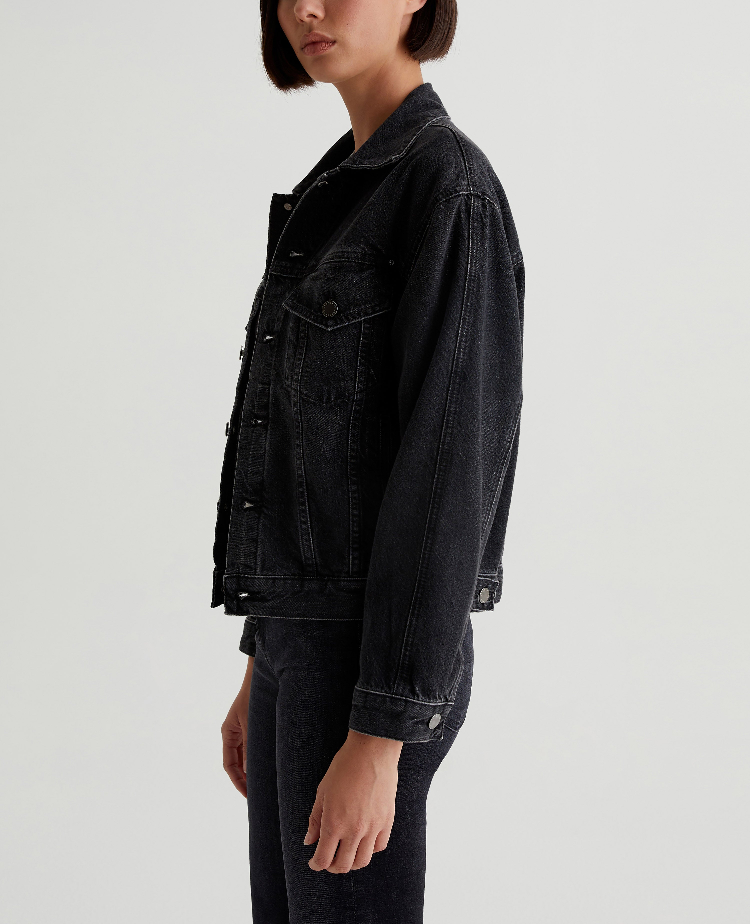 The Arllow Jacket is your essential trucker in a relaxed, boxy fit with a faded black wash and double-needle seam detailing down the sleeves. It's designed in 12.75 oz. Black Stone Denim made from 100% cotton with rigid non-stretch construction.