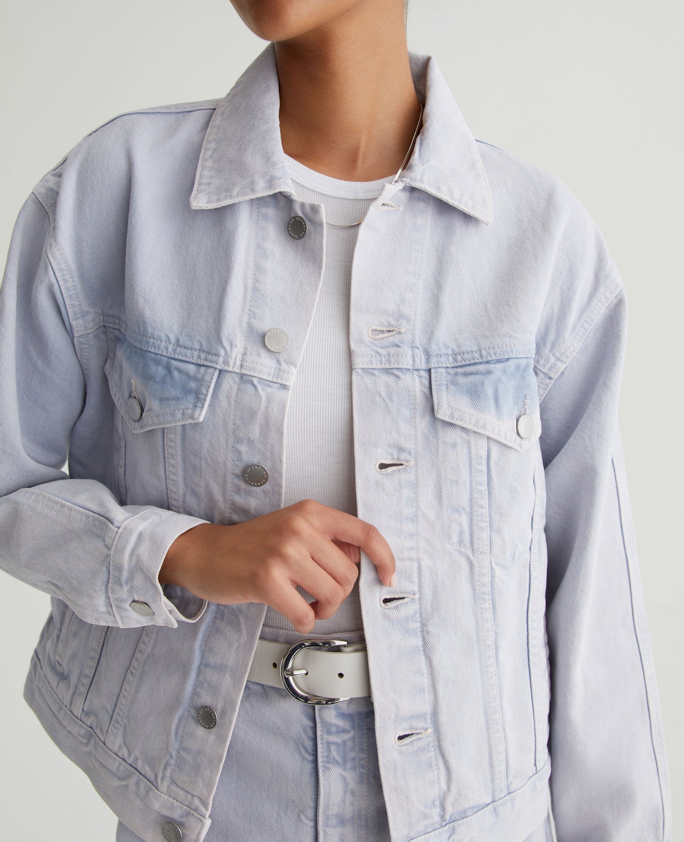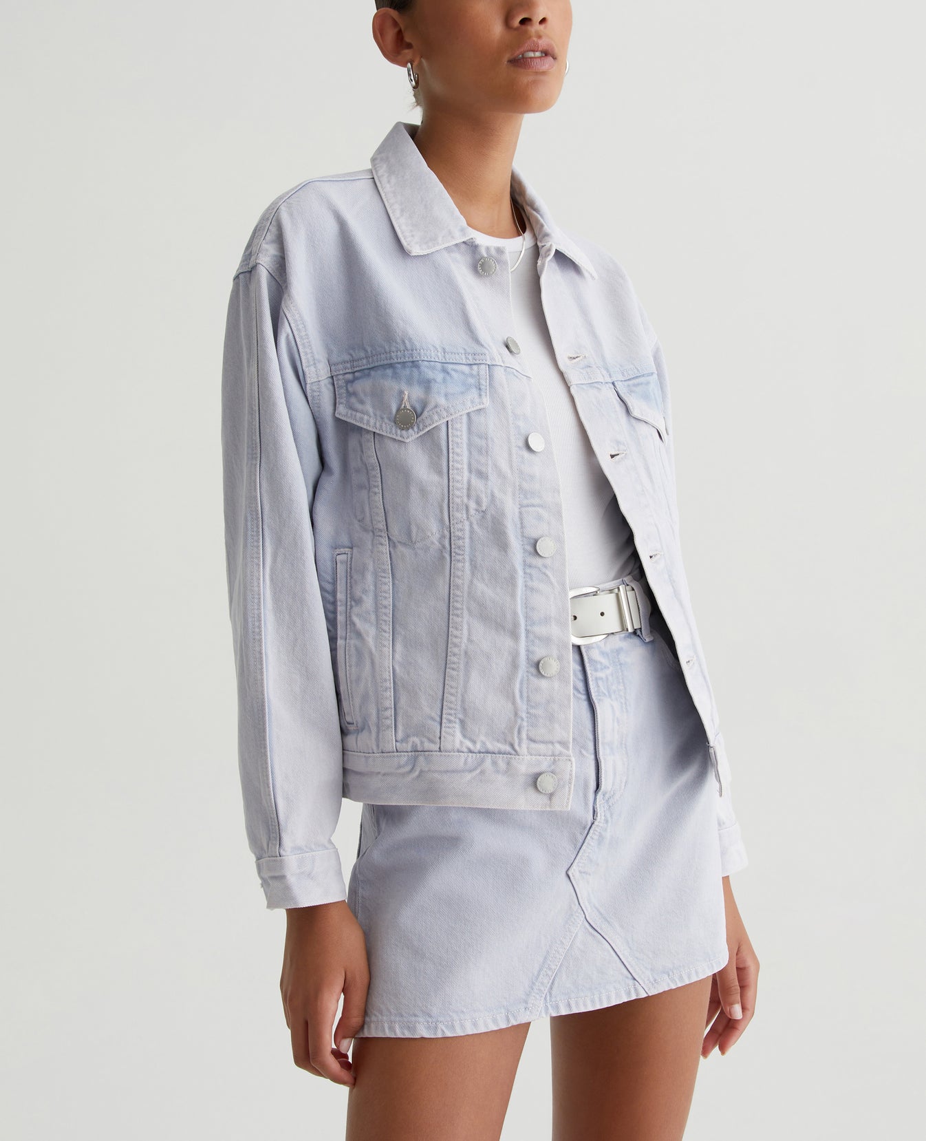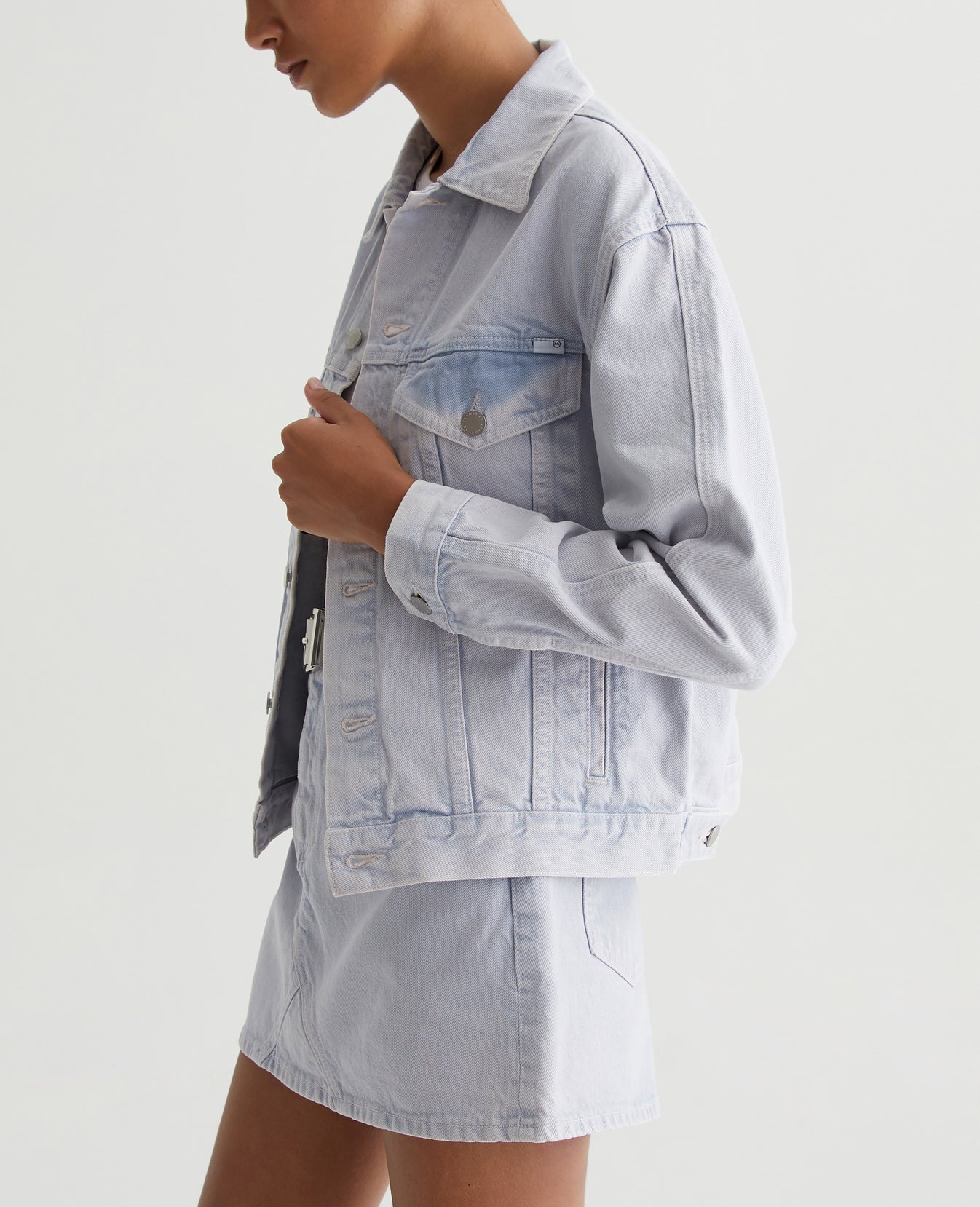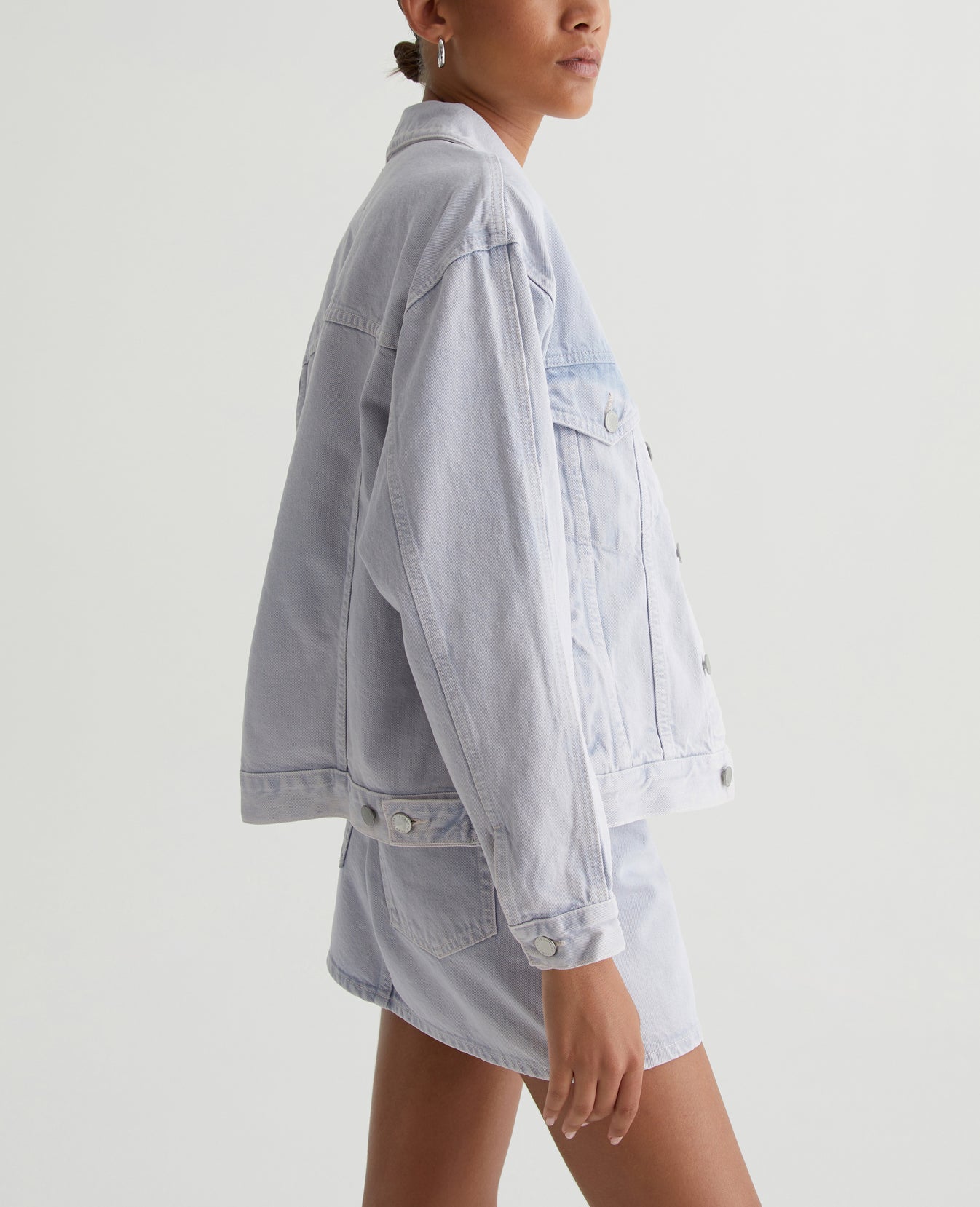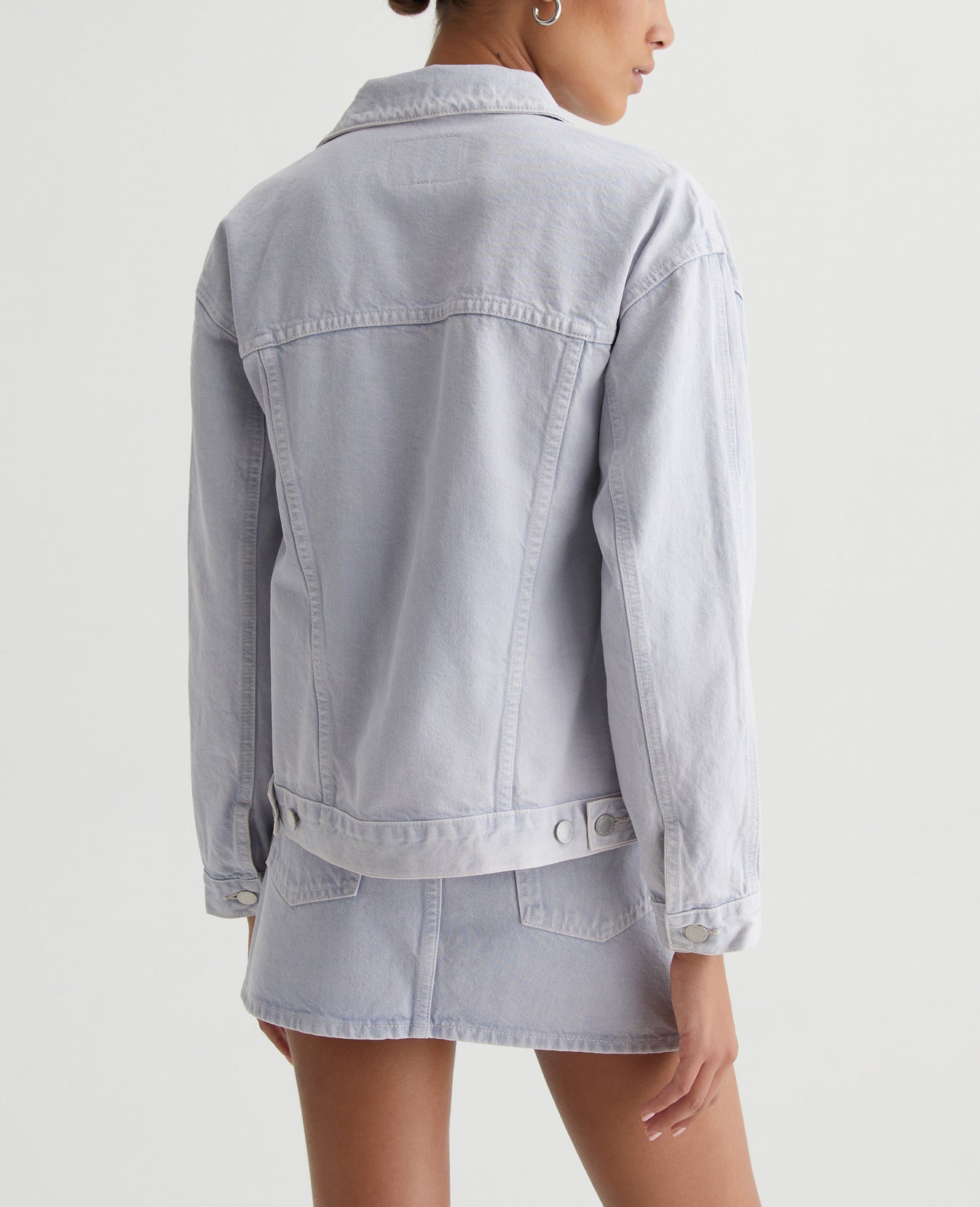 The Arllow Jacket is your essential trucker with a relaxed, boxy fit and double-needle seam detailing down the sleeves. It's made from 100% cotton Natural Bull Denim in a soft purple color and finished with AG's exclusive AG Vapor Wash™ process, creating a bleached-out effect with hints of darker color peeking out. Our AG Vapor Wash™ technology significantly reduces the use of water, chemicals, and energy to lessen environmental impact. Finished with a vegan and 100% biodegradable cellulose patch at the back waistband.