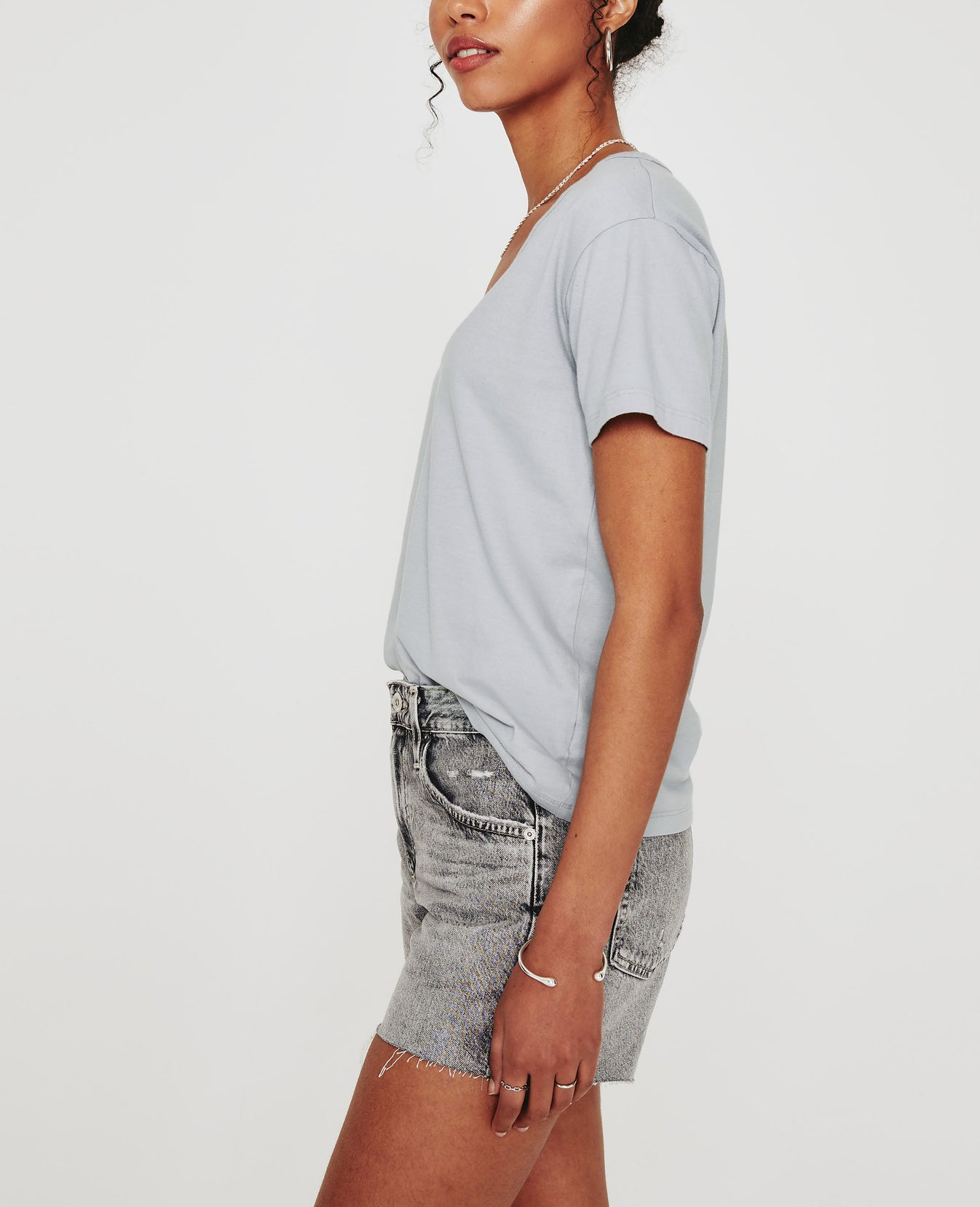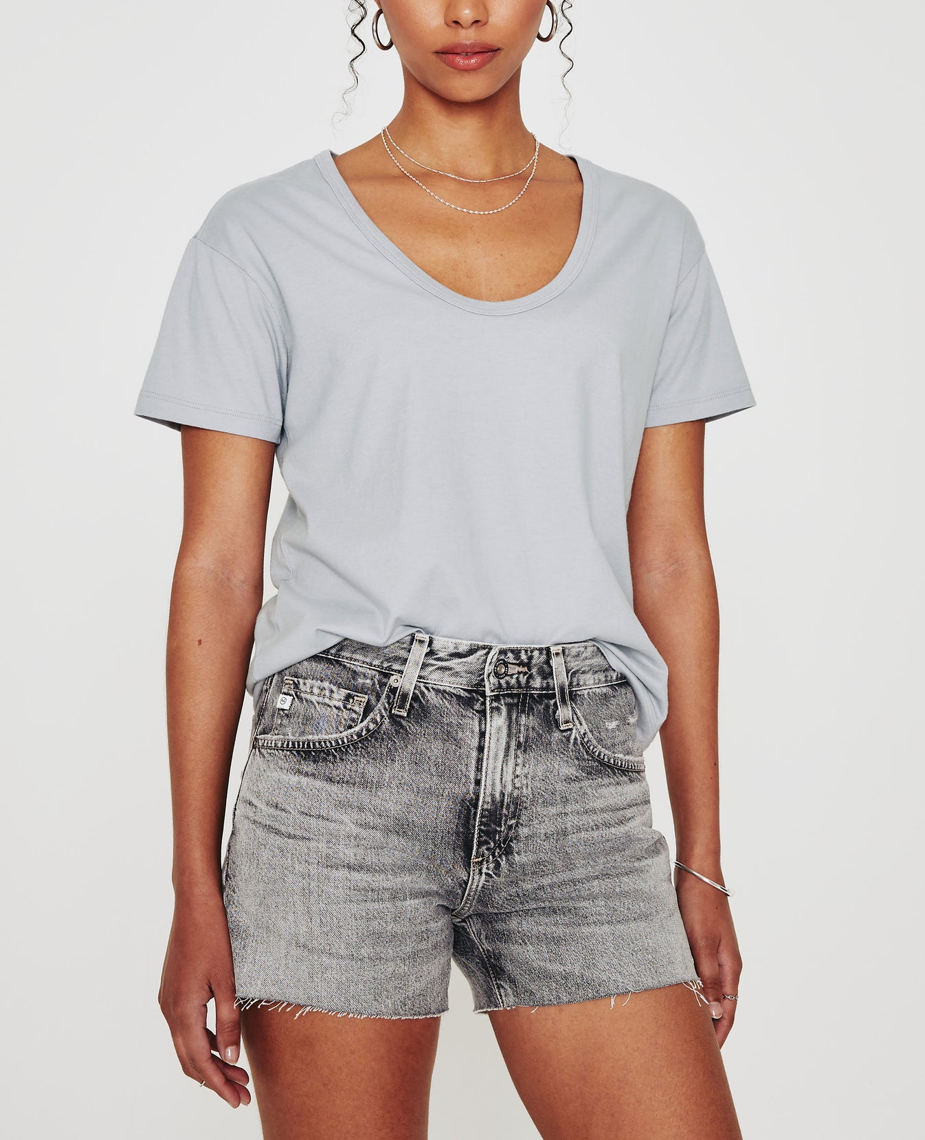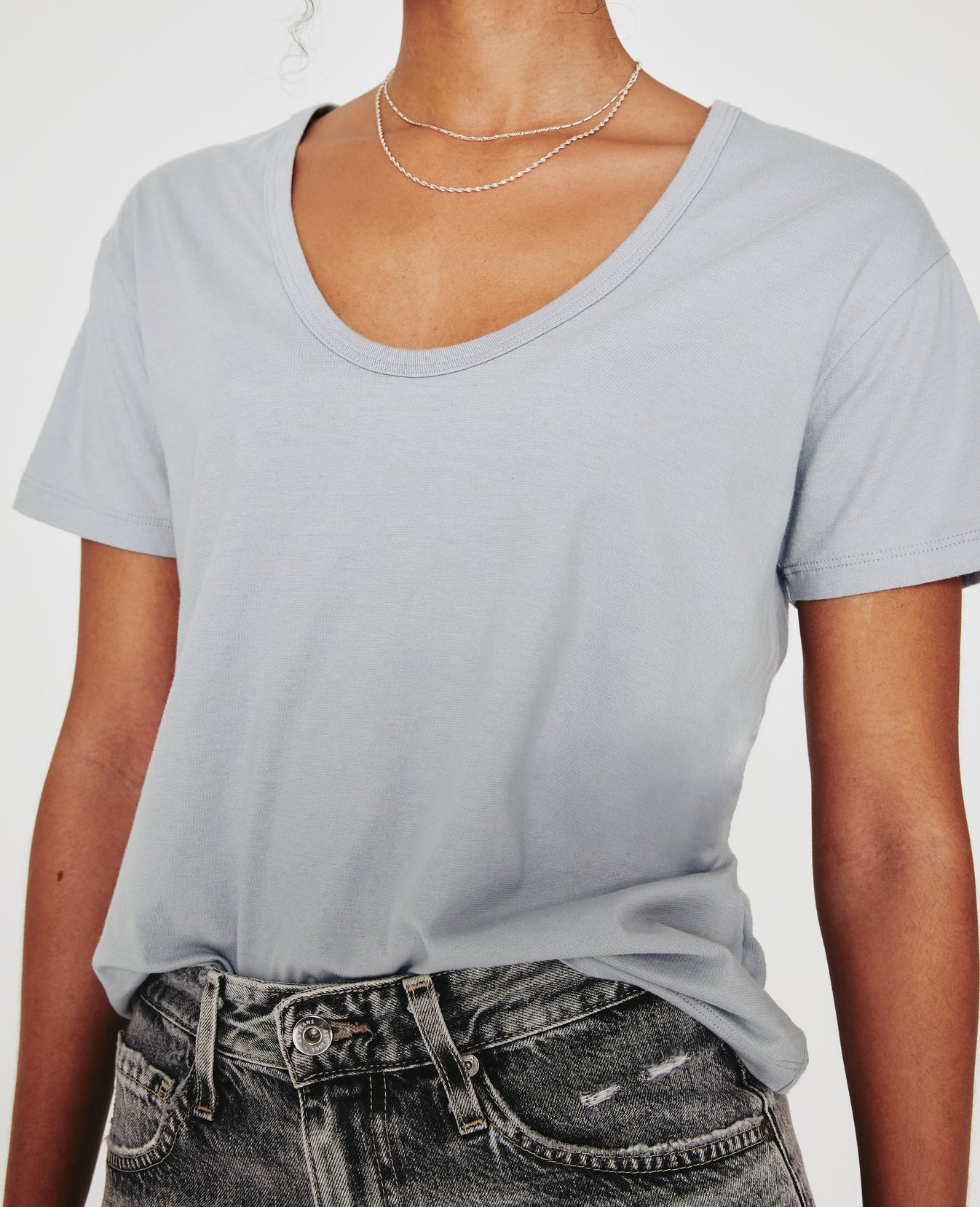 The Aspen tee has a relaxed short-sleeve silhouette defined by a flattering U-shaped neckline. Made from 100% cotton Essential Light Jersey in grey, it's a new go-to for your everyday uniform.