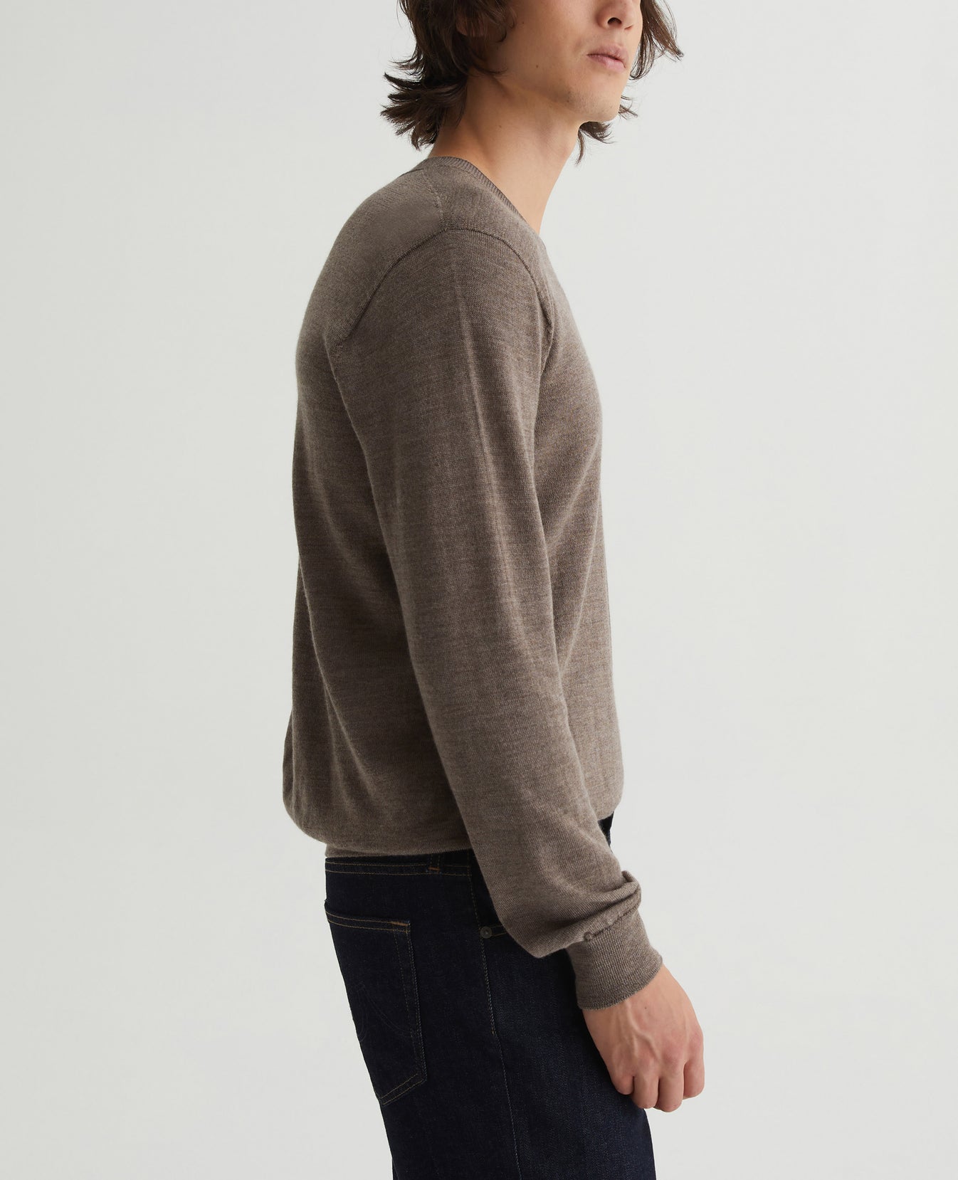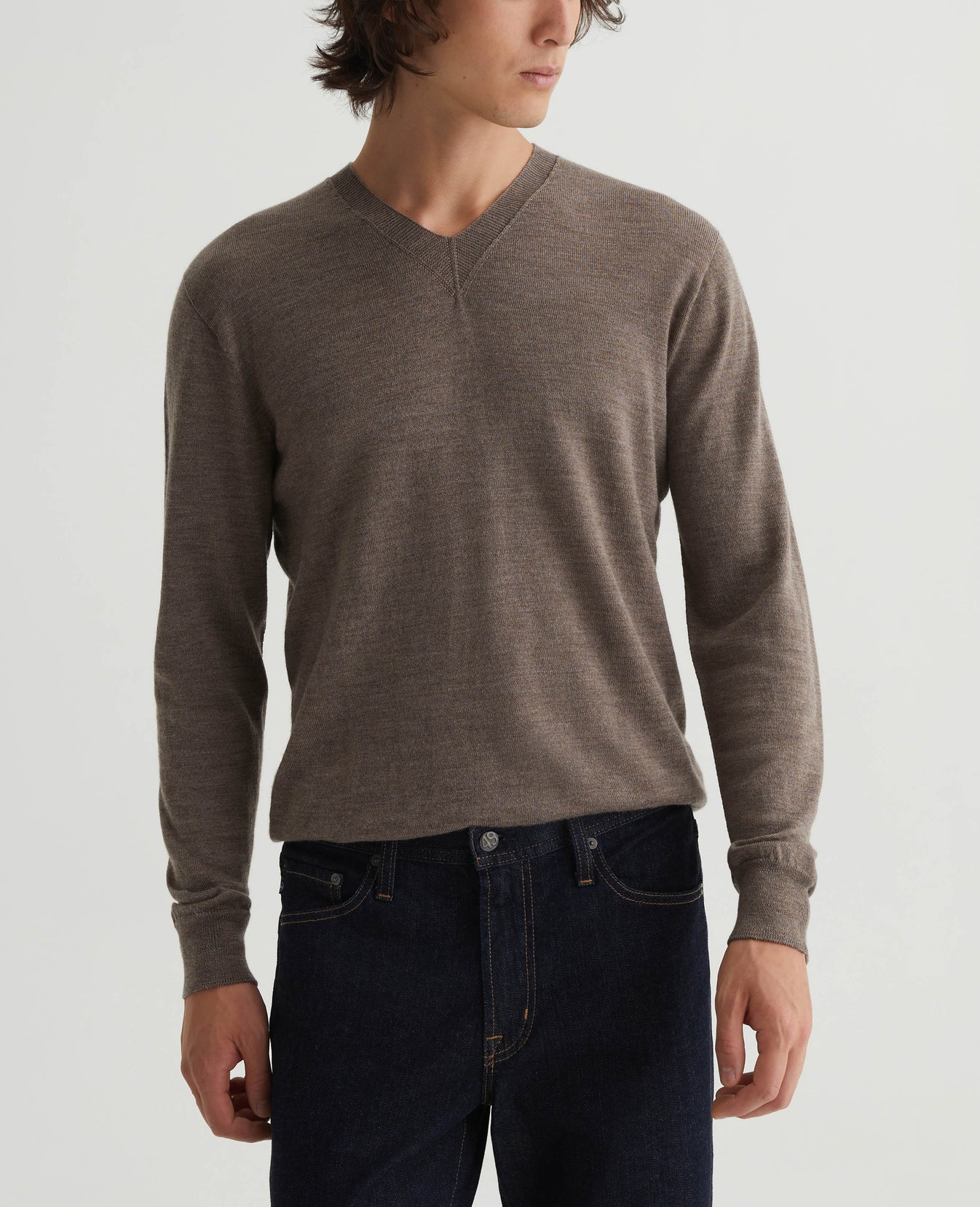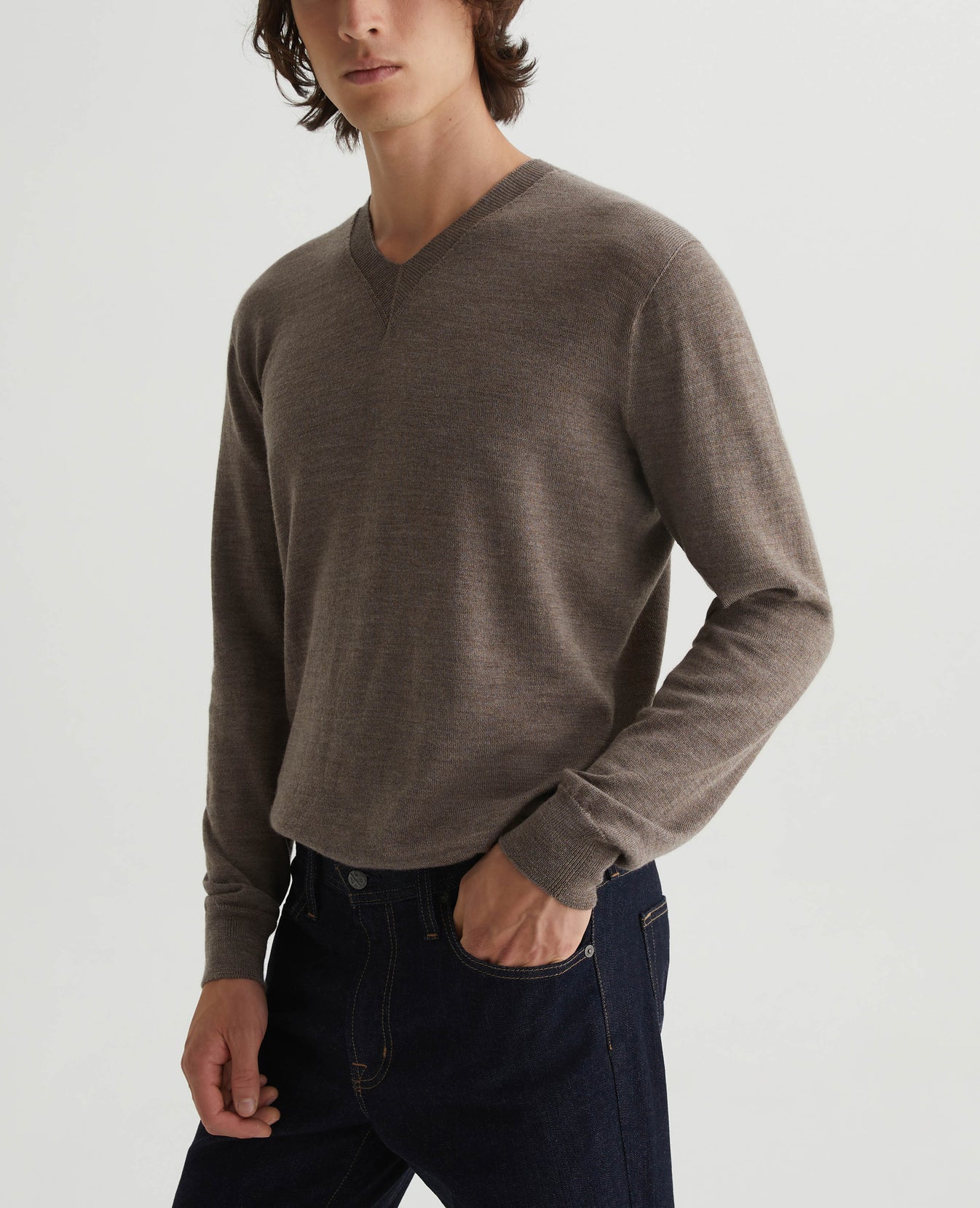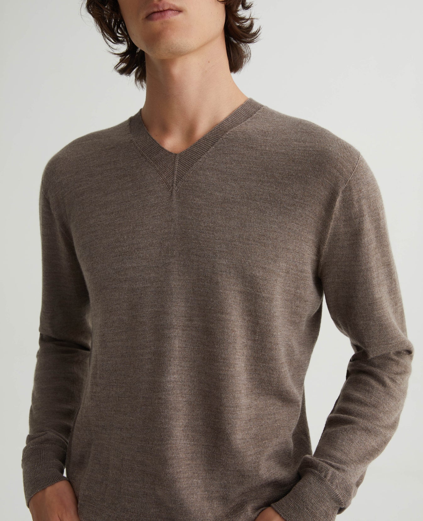 Simple yet luxe, the Beck Vee is a classic-fit sweater with a V-shaped neckline, long sleeves, and a versatile mélange taupe shade. It's knitted from Extra Fine Merino Wool that's lightweight and easy to layer under a jacket.