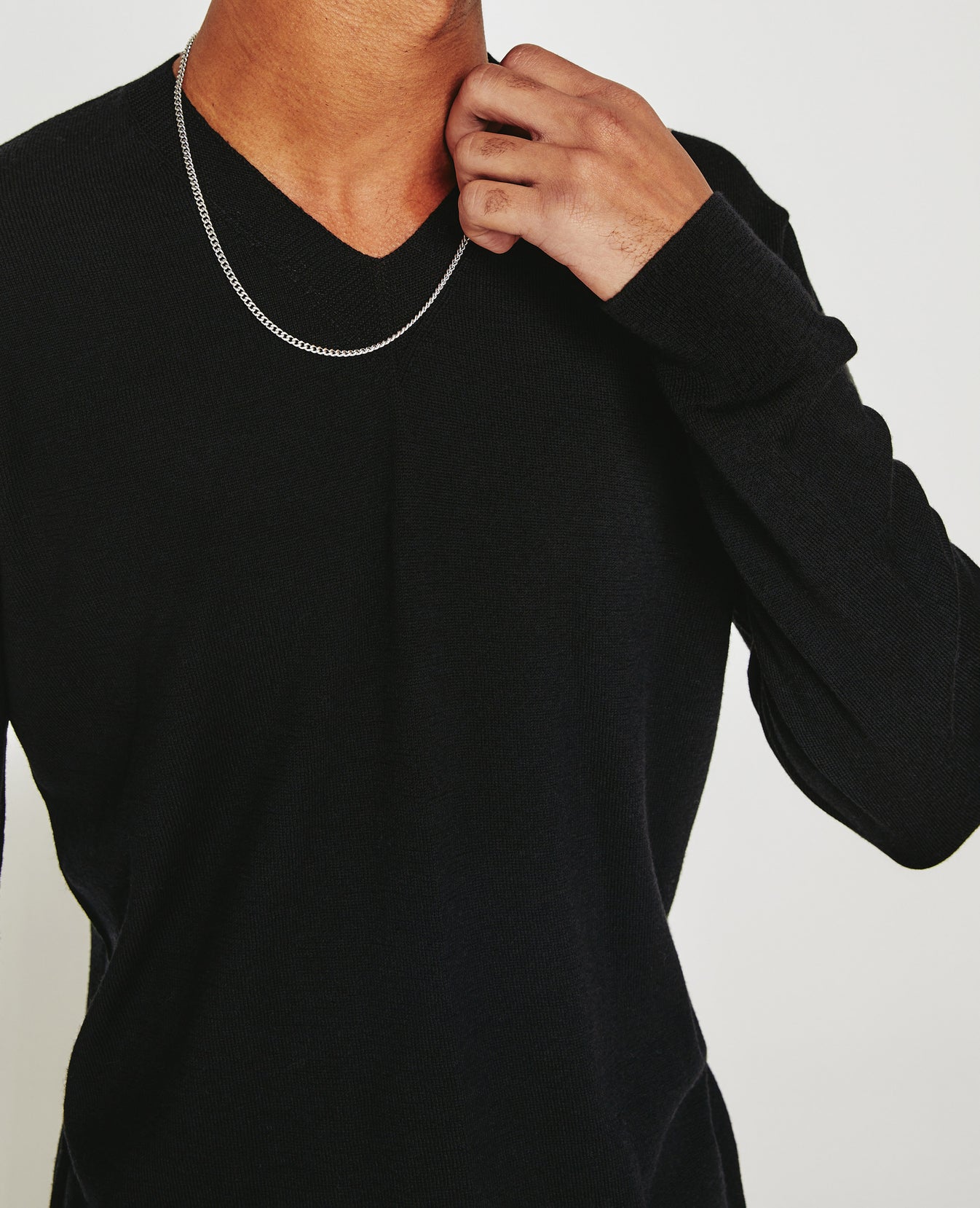 A timeless addition to your knitwear collection, the Beck Vee is a classic-fit sweater with a V-shaped neckline, long sleeves, and a versatile black shade. It's knitted from Extra Fine Merino Wool that's lightweight and easy to layer under a jacket.