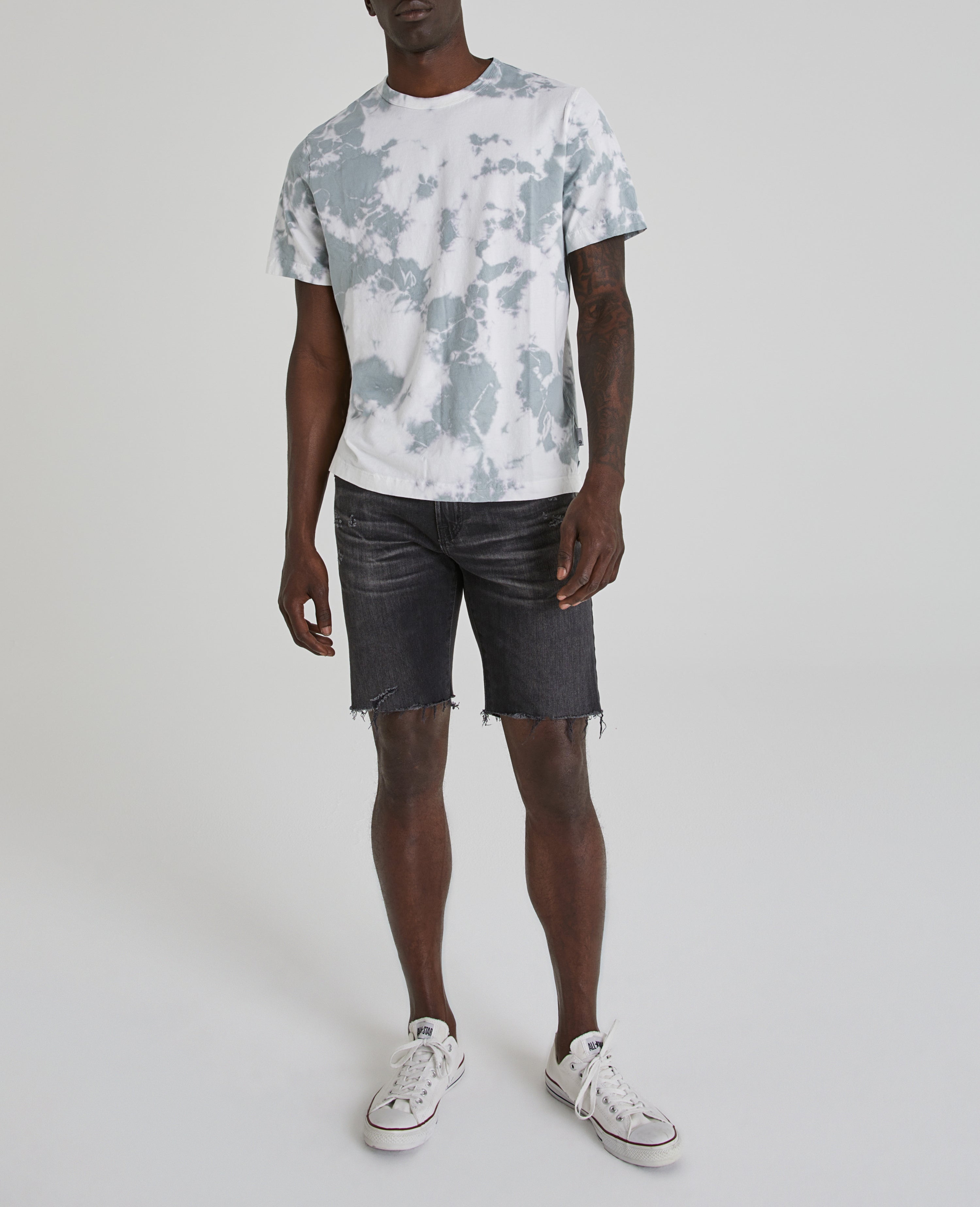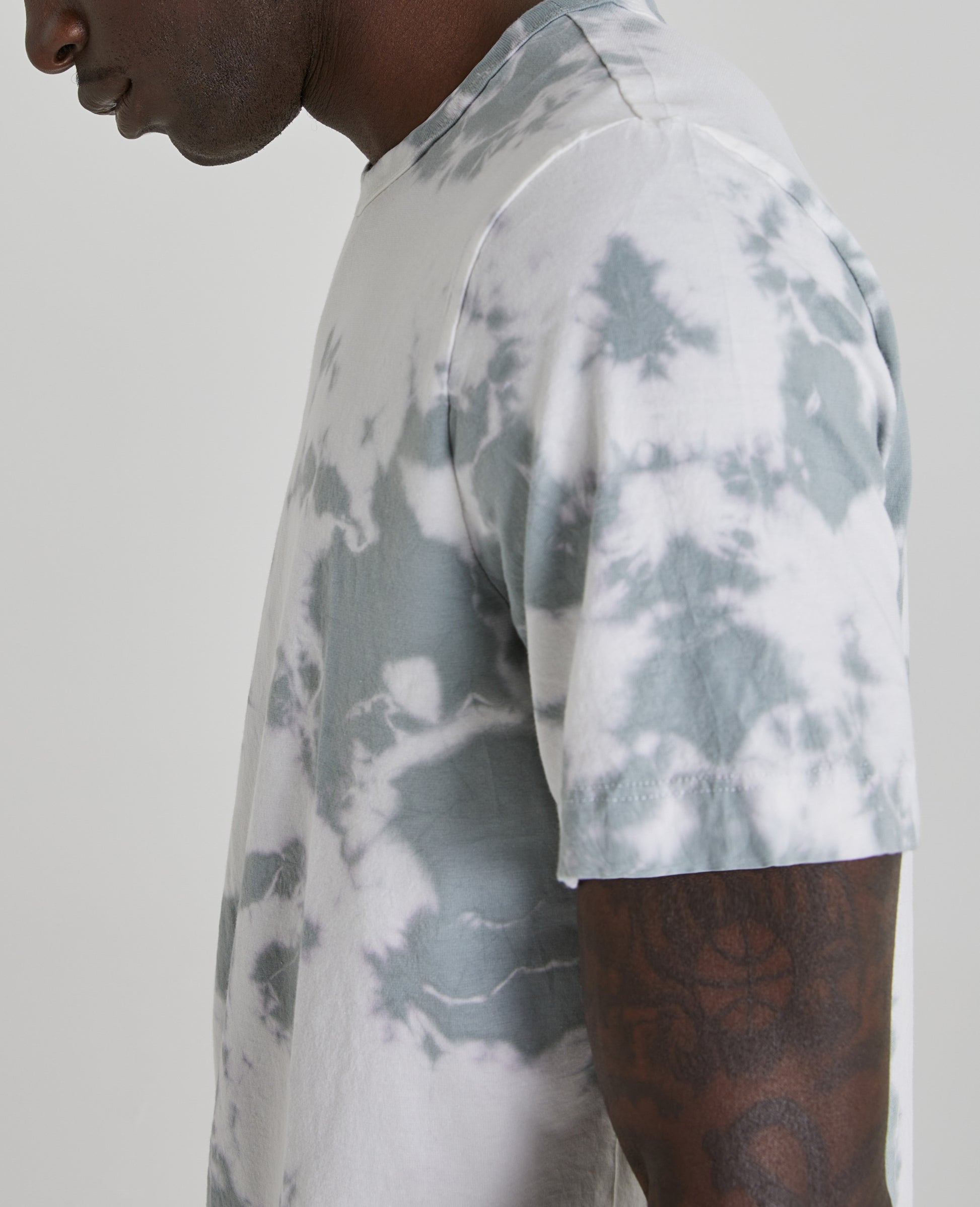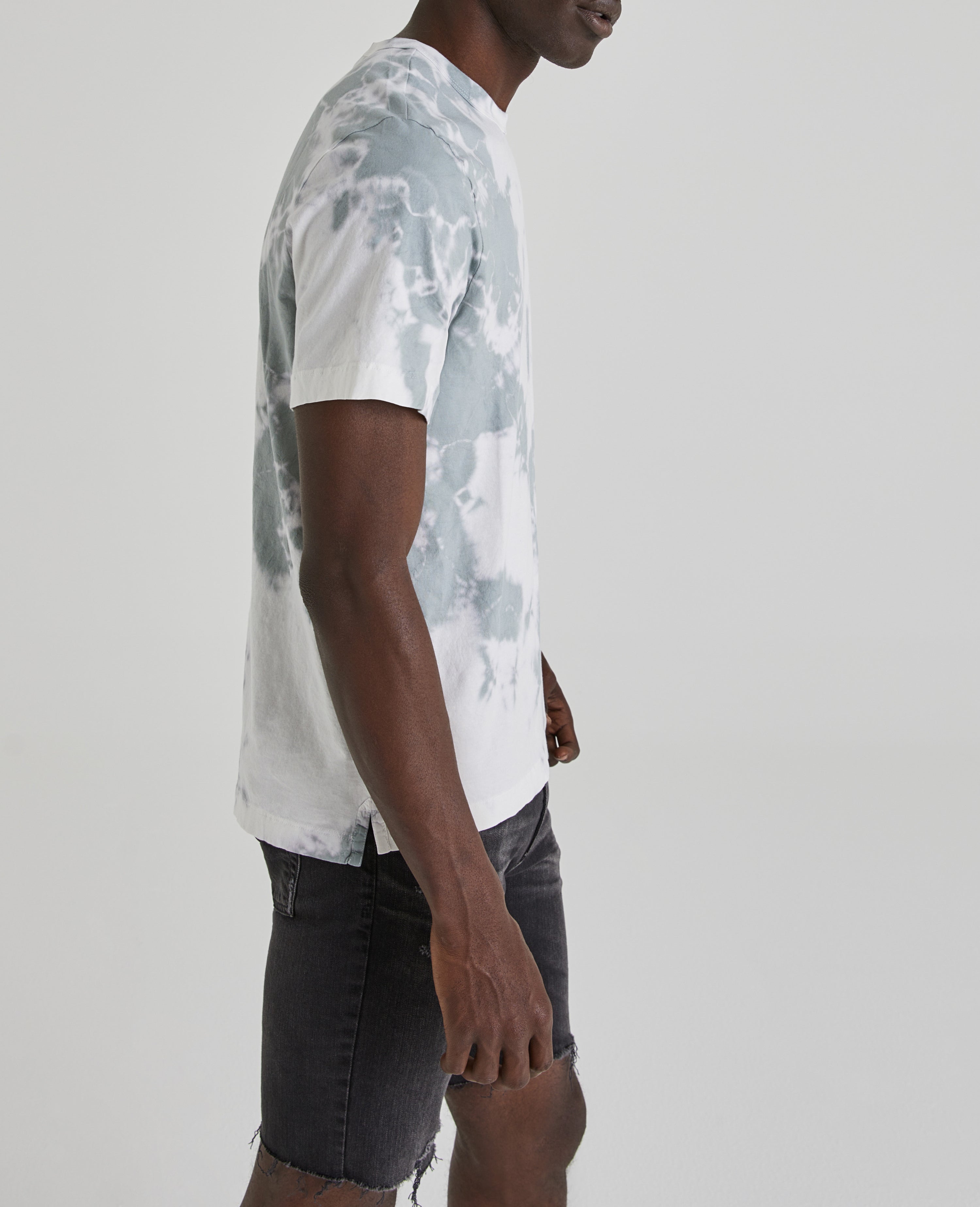 The Beckham Crew Tee for men features a sky blue hue with off-white grey bleaching for contemporary warm-weather styling.The Beckham is cut with a boxier silhouette and drop shoulders for a contemporary fit. A high-low split seam with self binding creates an unexpected but subtle dimension for an everyday basic. This men's t-shirt is designed in a lightweight, luxury jersey fabric made with pima cotton exclusively spun for extra color last, well-worn vintage feel, and an easy, slightly oversized fit.
