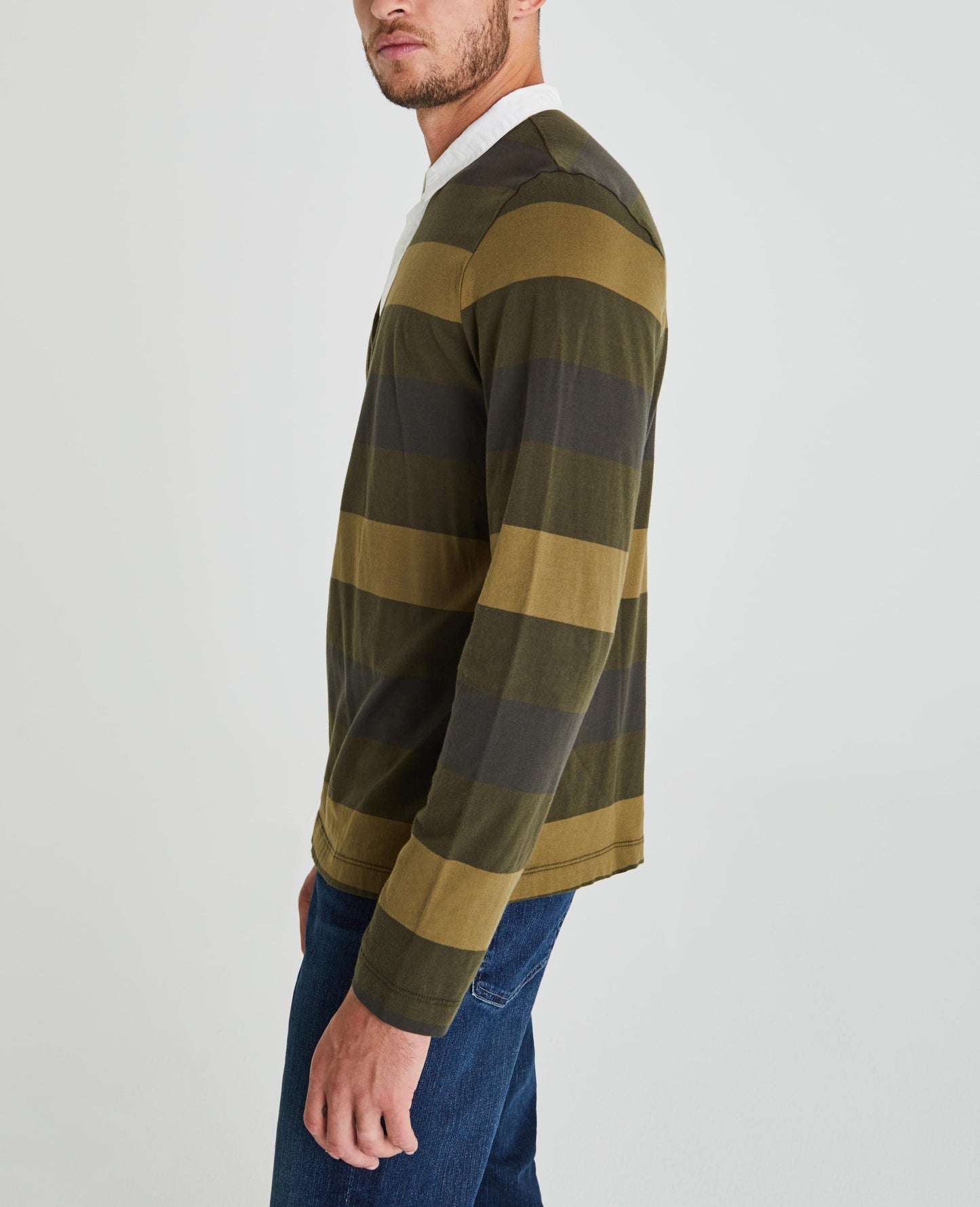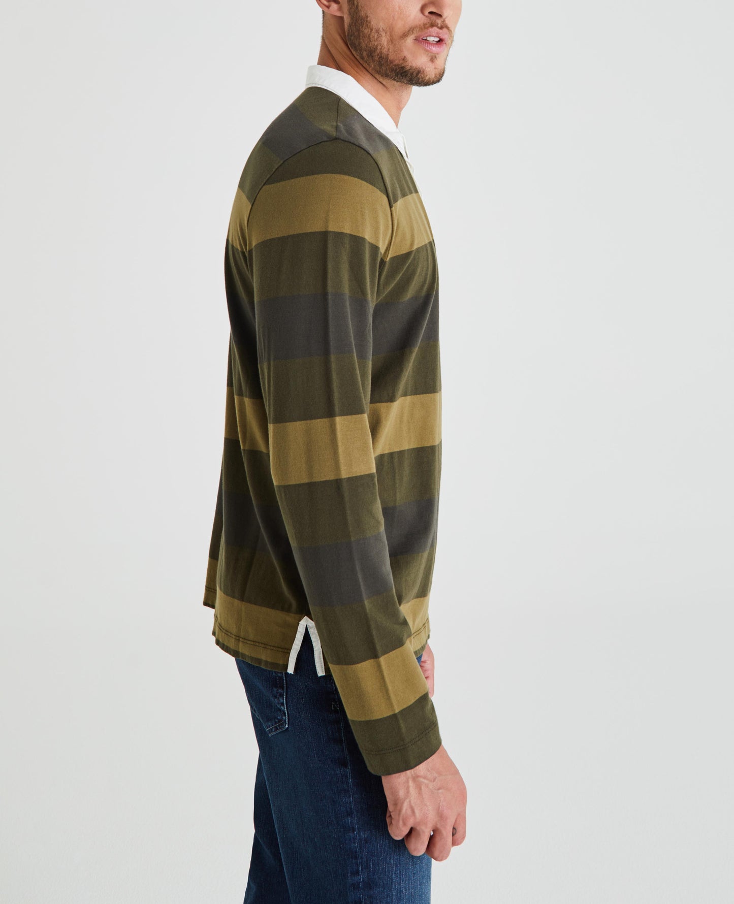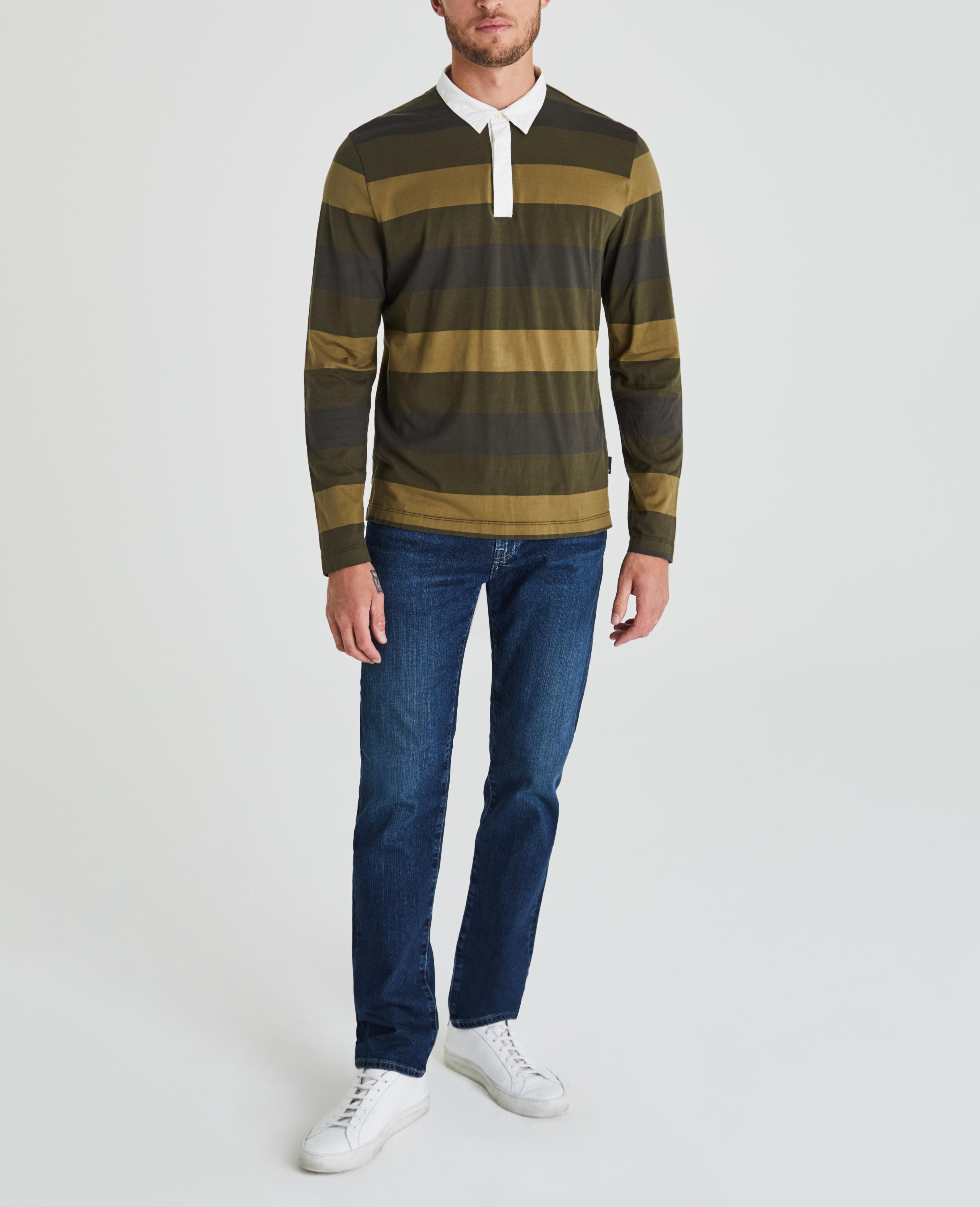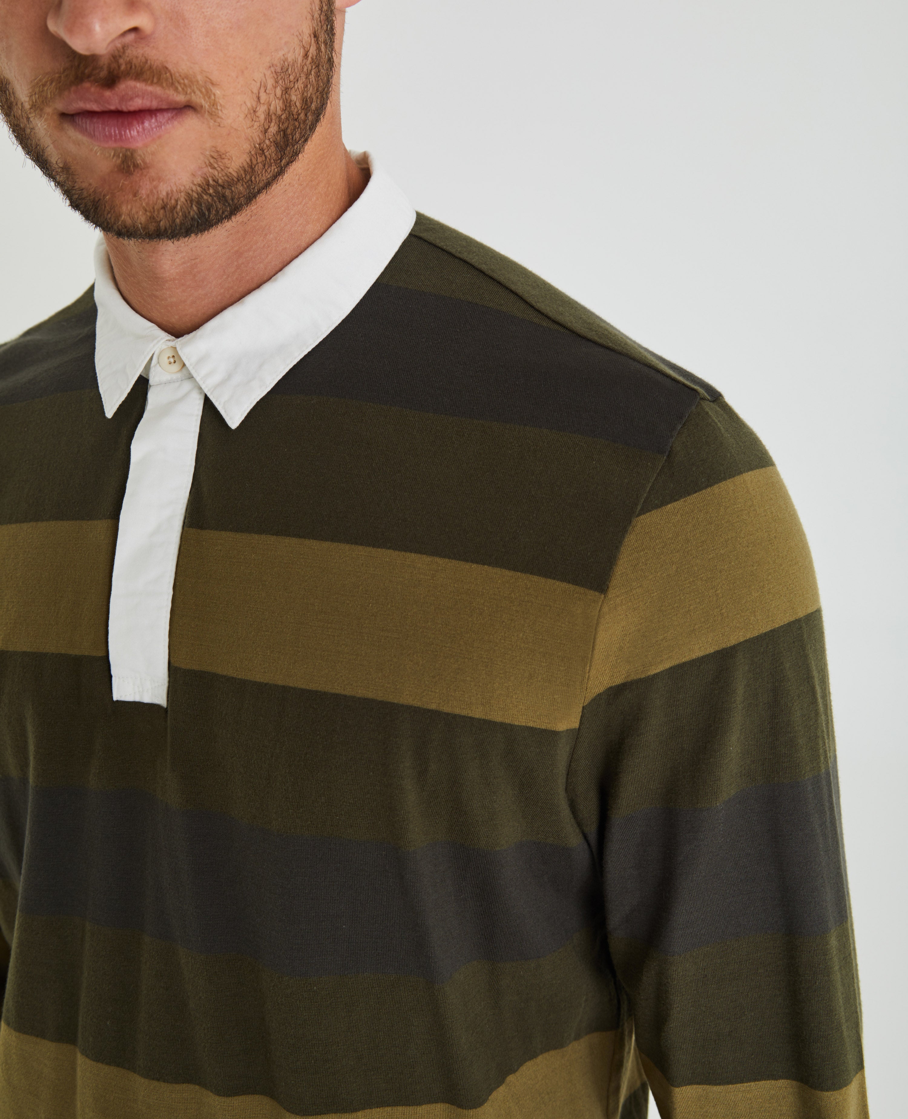 The Beckham Rugby Polo Shirt for men features a retro sport stripe in earthy olive tones, complete with contrast poplin detailing at the collar. This men’s long sleeve is designed in a breathable and lightweight fabric made from 100% cotton for a true vintage feel.