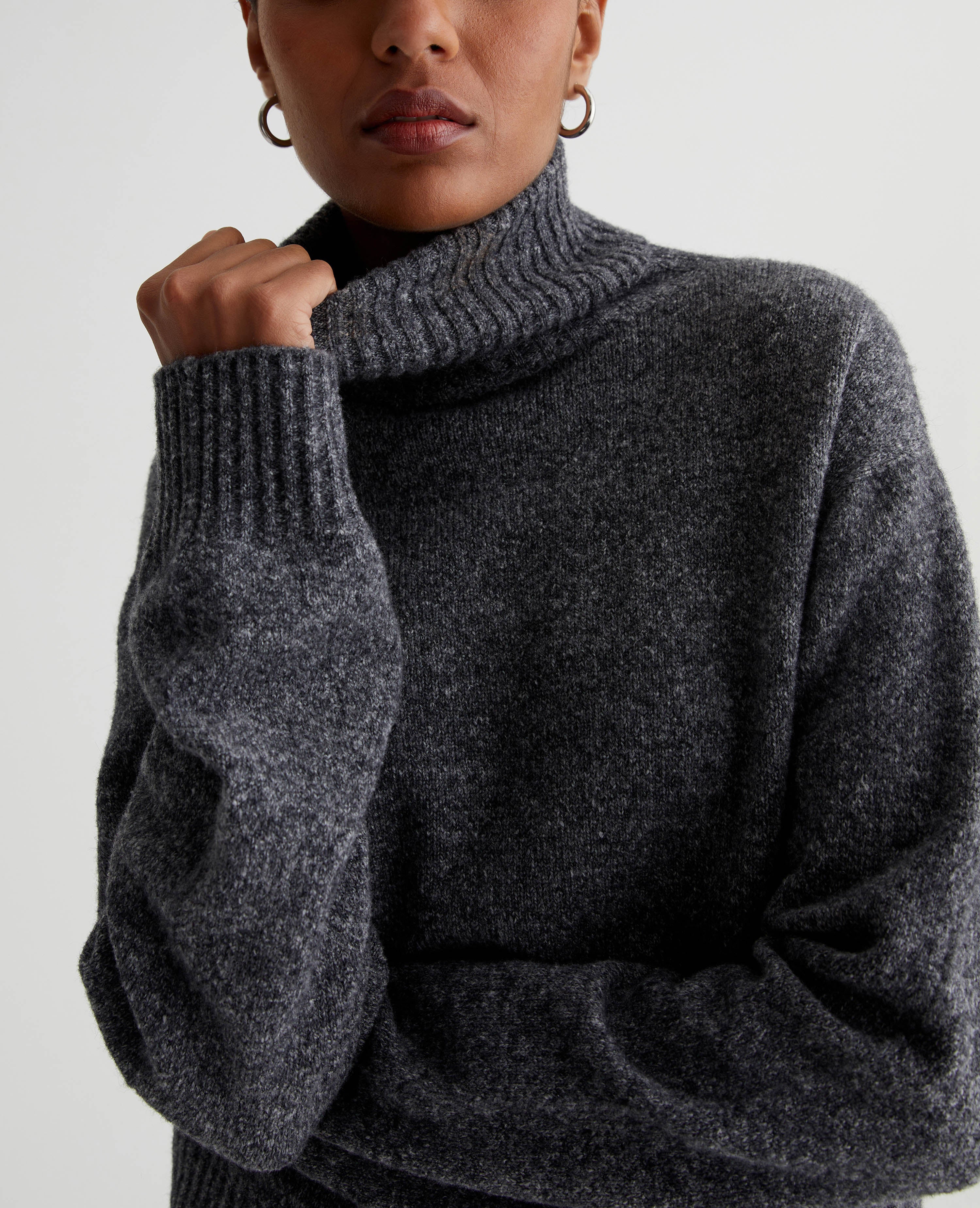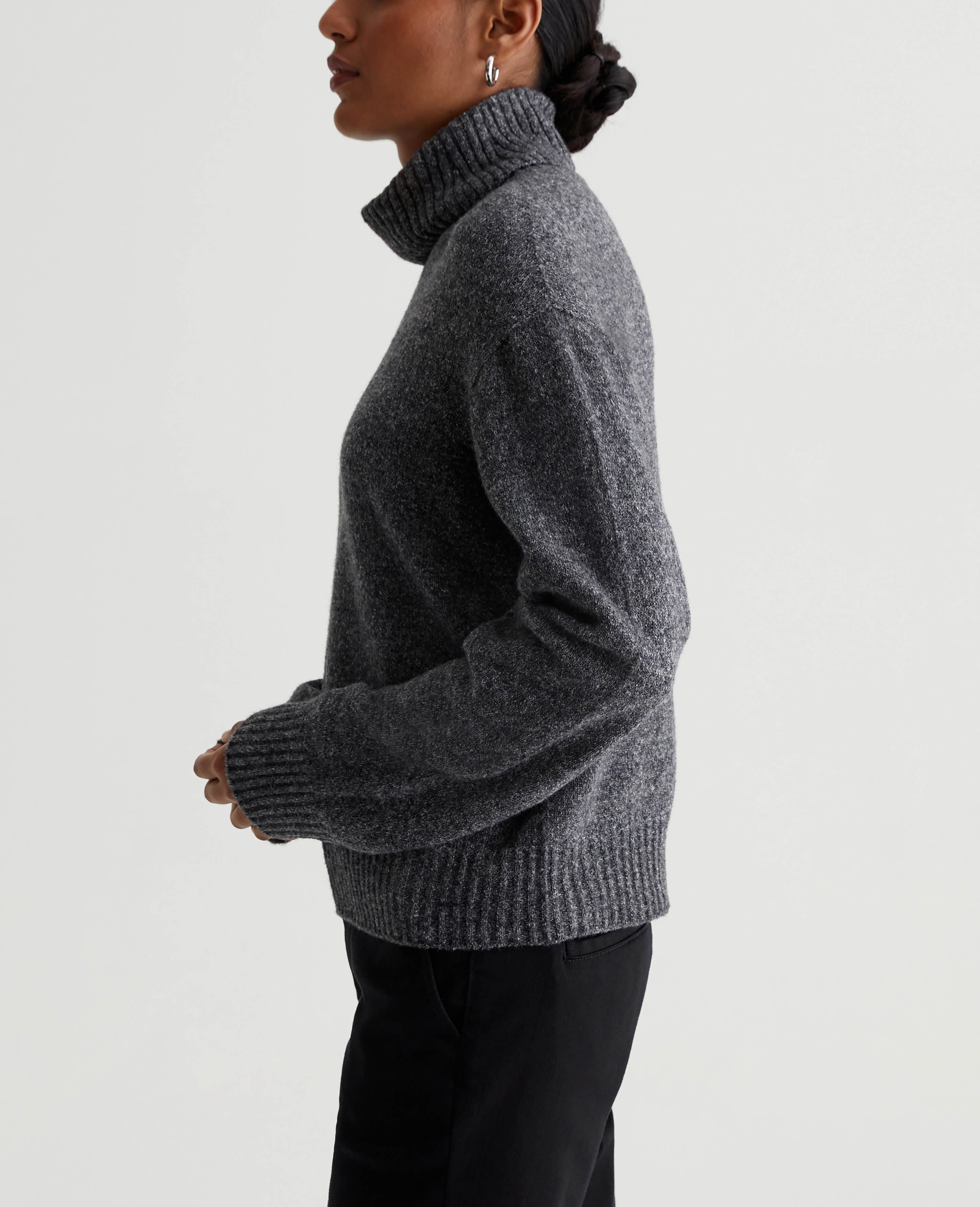 A warm and cozy addition to your knitwear collection, the Bellona is a relaxed turtleneck sweater in a slightly boxy shape. Done here in heathered charcoal, it’s blended with Merino wool and alpaca for a soft, plush feel.