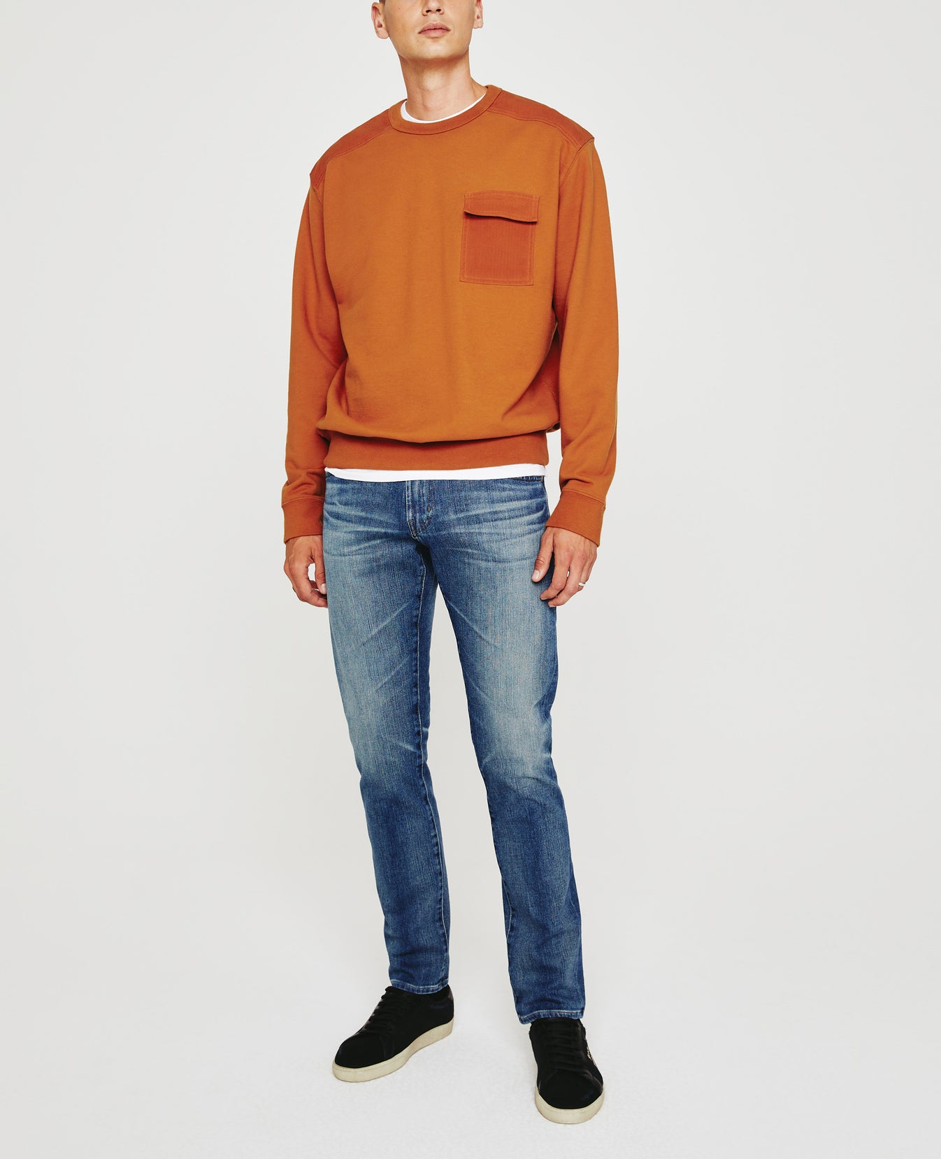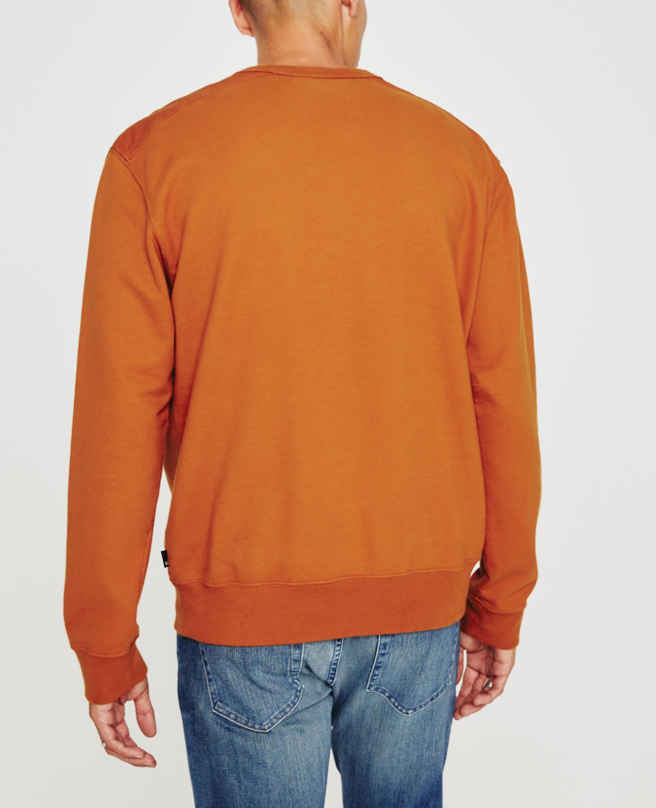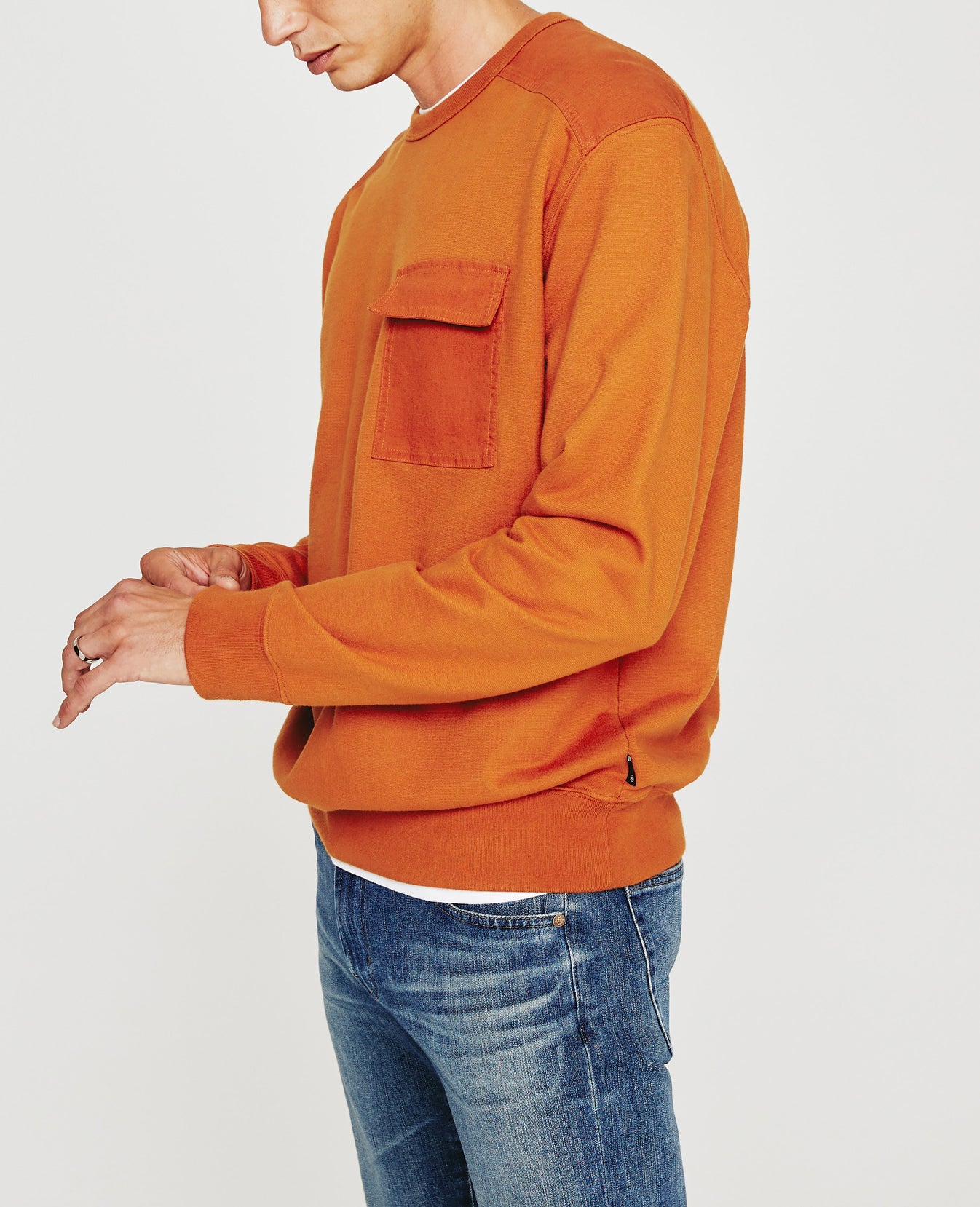 The Brendan Sweatshirt is a relaxed-fit crewneck featuring an autumnal orange color, this men's long sleeve top has a soft, elevated feel in our 100% cotton Essential Luxe Terry. Woven shoulder paneling and a flap pocket at the chest complete the look.
