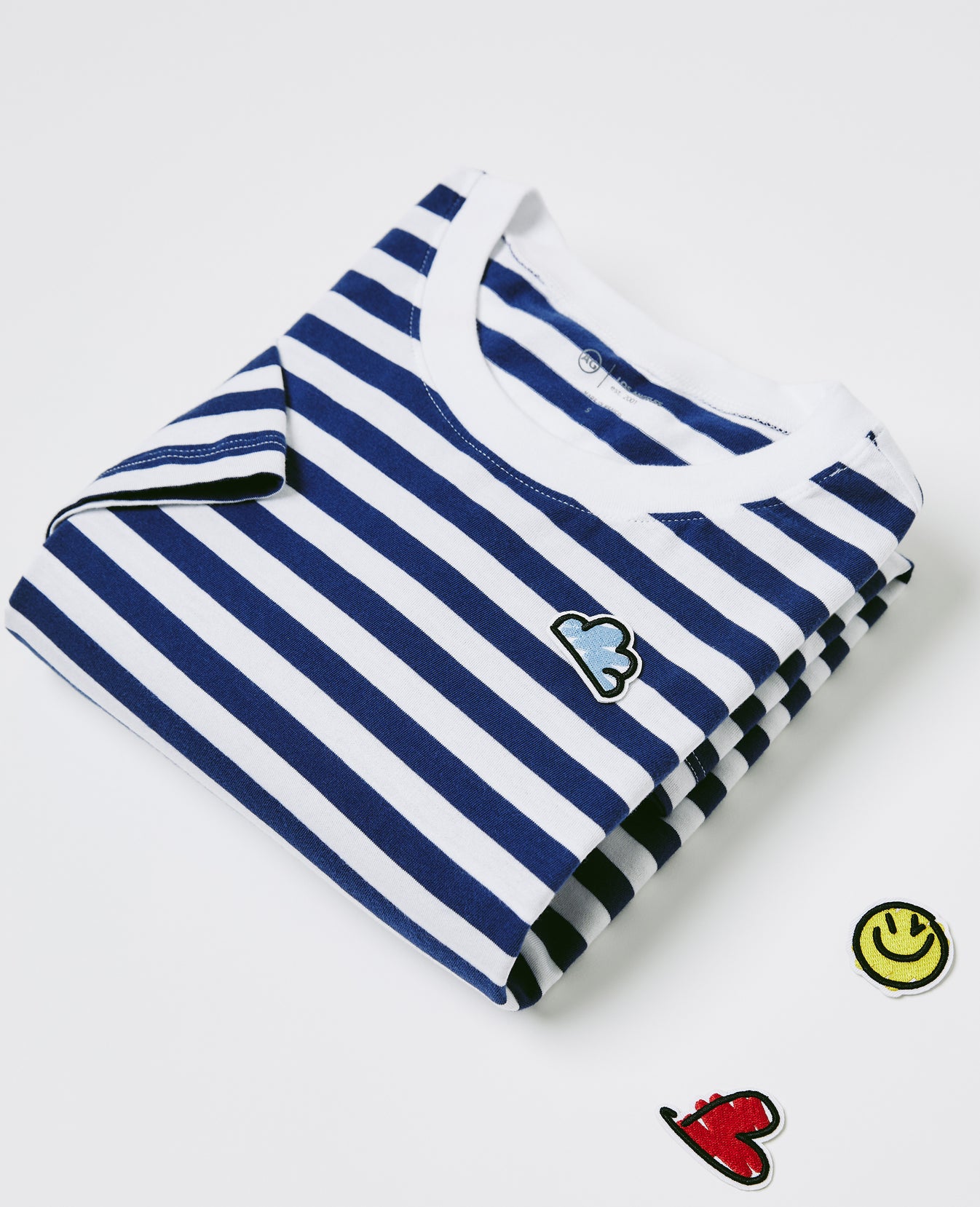 Part of our ALL THE FEELS collection, the Bryce Crew is a striped crewneck tee that comes with a set of three iron-on patches so you can add your own personal twist. It's cut from 100% cotton jersey in a classic fit and features solid 1x1 baby rib at the neckline.