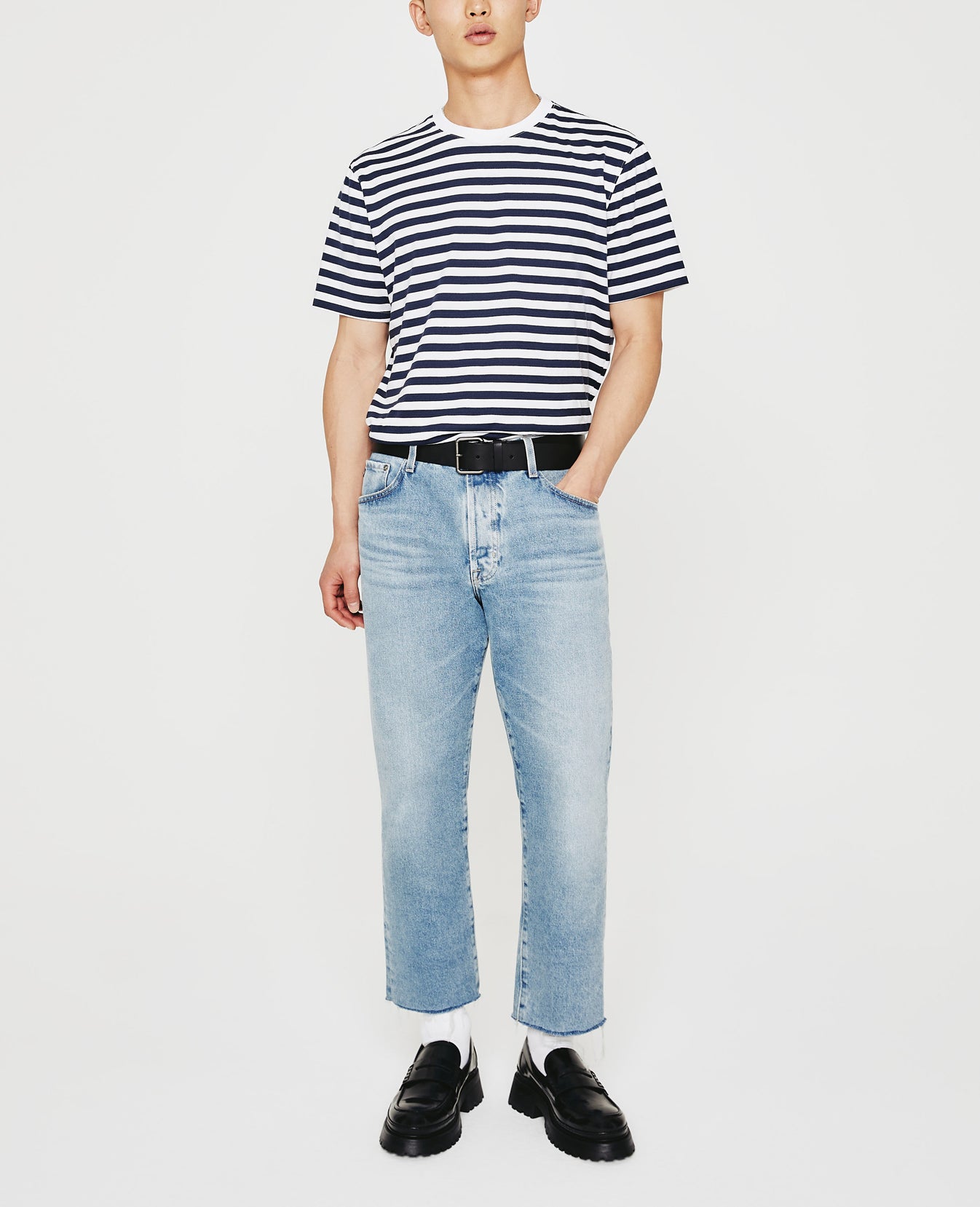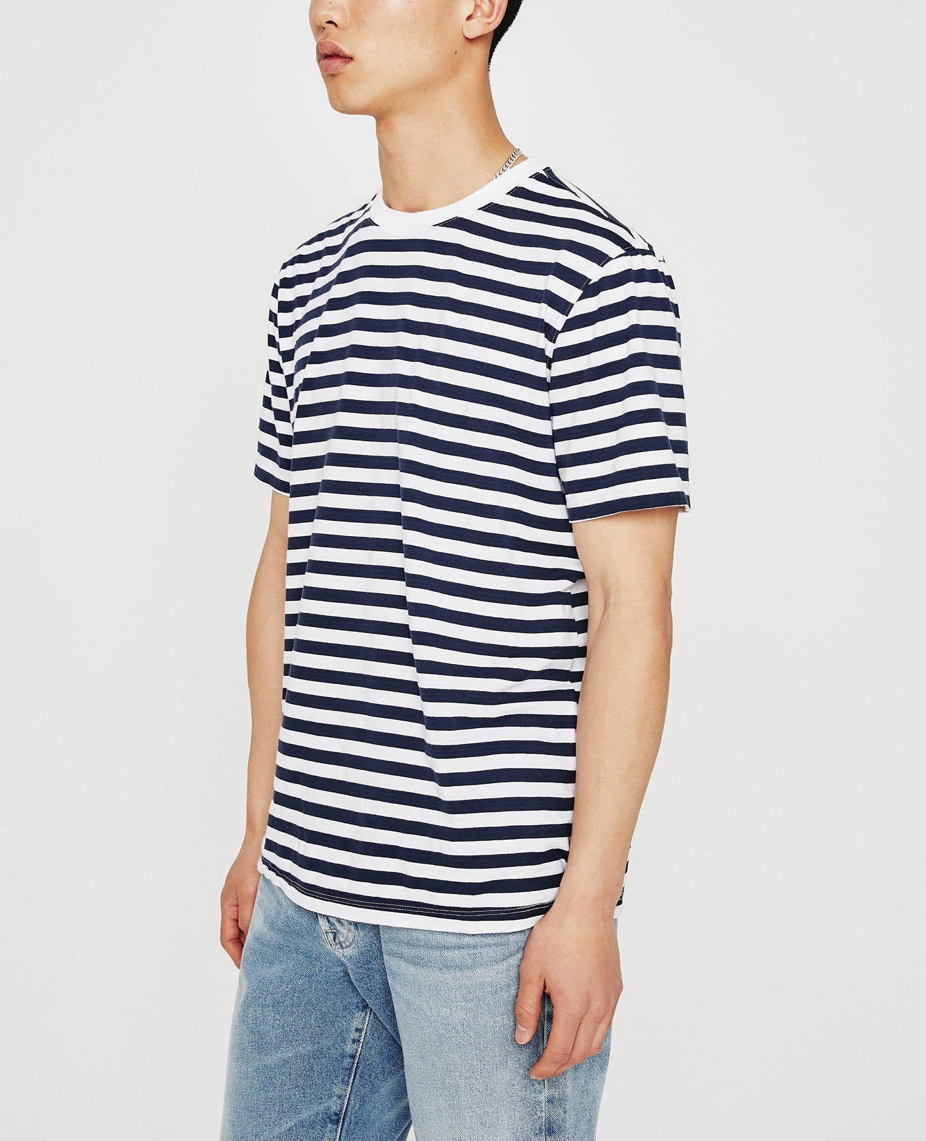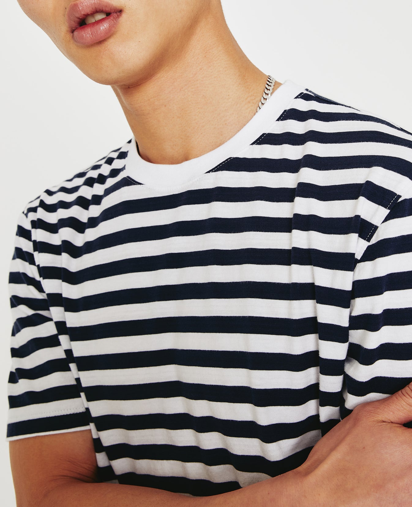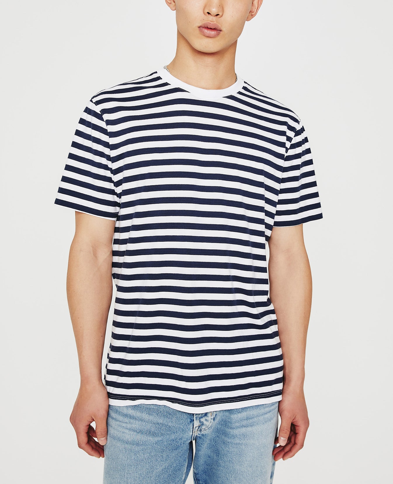 Done here in a timeless stripe pattern, the Bryce Crew is a classic-fit men's tee with a crew neck and short sleeves. Designed in 100% cotton jersey with solid 1X1 baby rib at the neckline, it's a year-round staple.