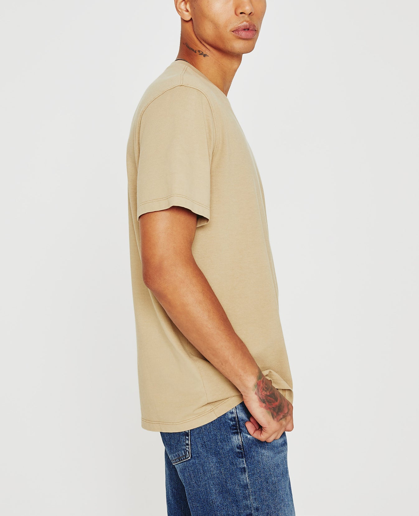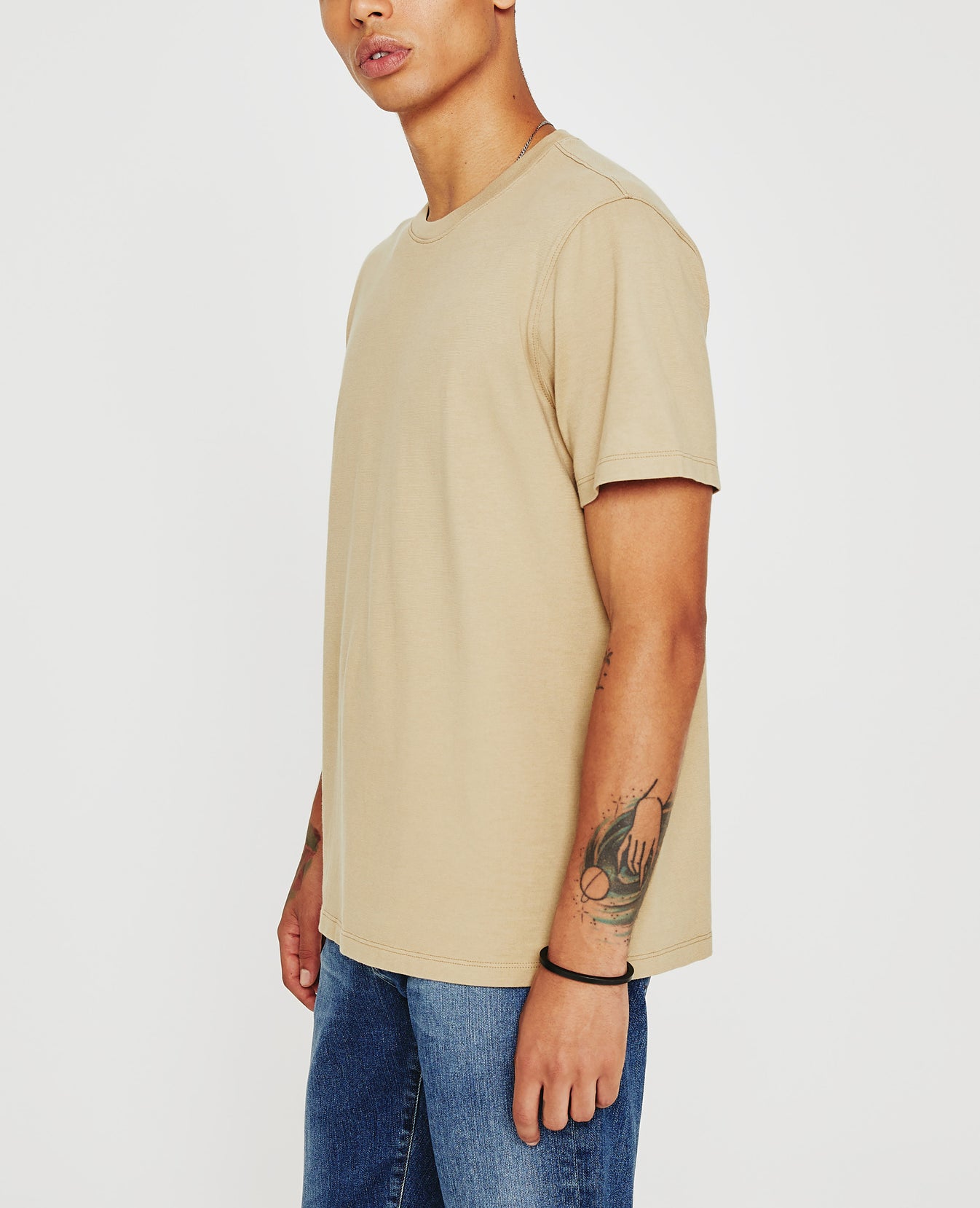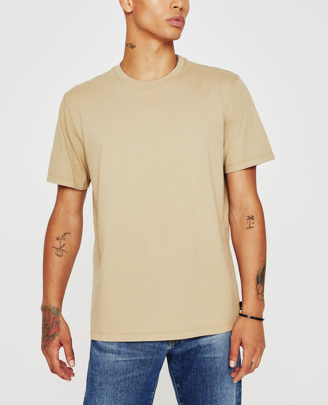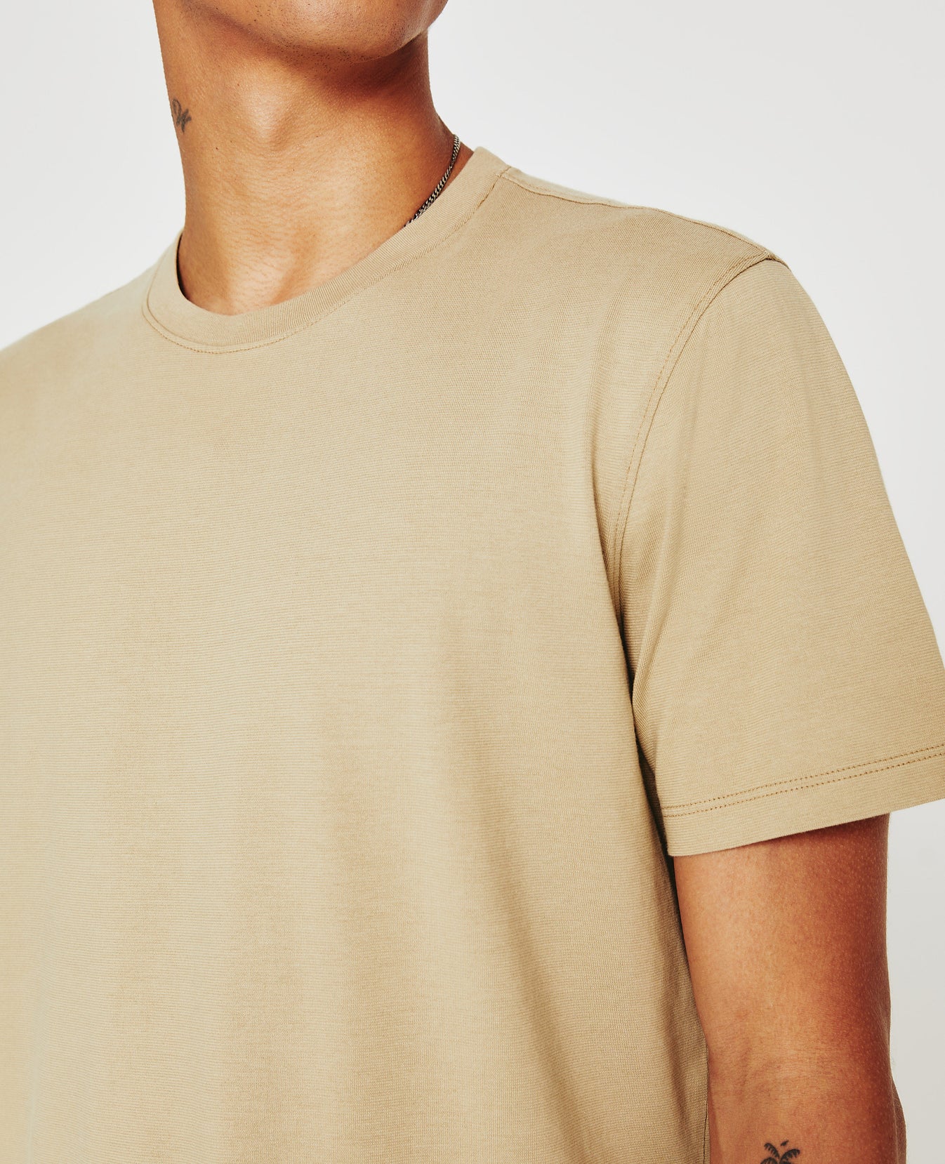 The Bryce Crew is a classic-fit men's tee with a crew neck, short sleeves, and a neutral beige color. Designed in 100% cotton with 1X1 baby rib at the neckline, it's a year-round essential. Our Light Cotton Jersey offers a luxurious comfort that is unrivaled—knitted with both S-twist and Z-twist yarn to sustain longevity and stability, preventing twisting and torquing. The result is a softer, more durable fabric.