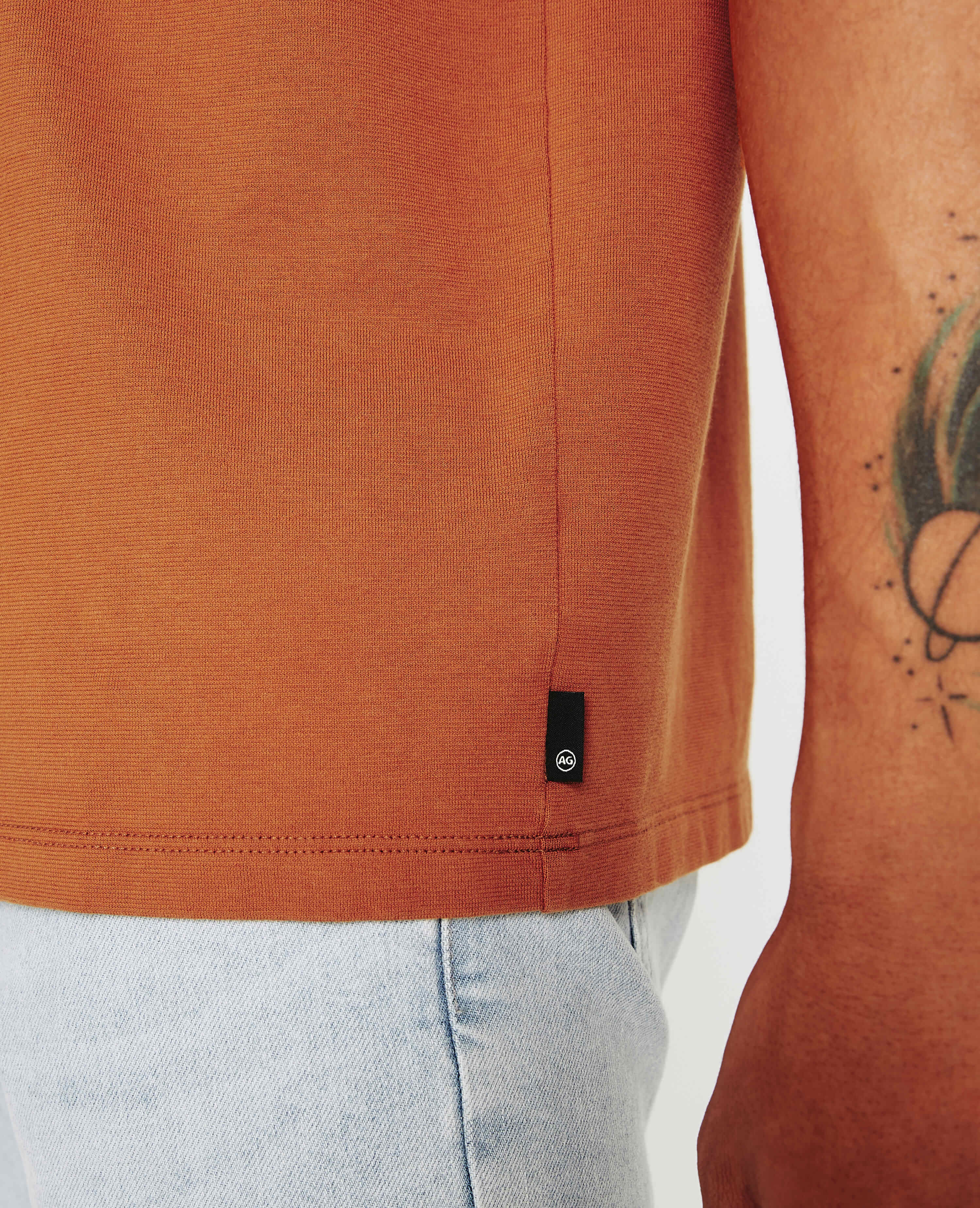 The Bryce Crew is a classic-fit men's tee with a crew neck and short sleeves. Designed in 100% cotton with 1X1 baby rib at the neckline, it's updated in a punchy orange color. Our Light Cotton Jersey offers a luxurious comfort that is unrivaled, knitted with both S-twist and Z-twist yarn to sustain longevity and stability, preventing twisting and torquing. The result is a softer, more durable fabric.