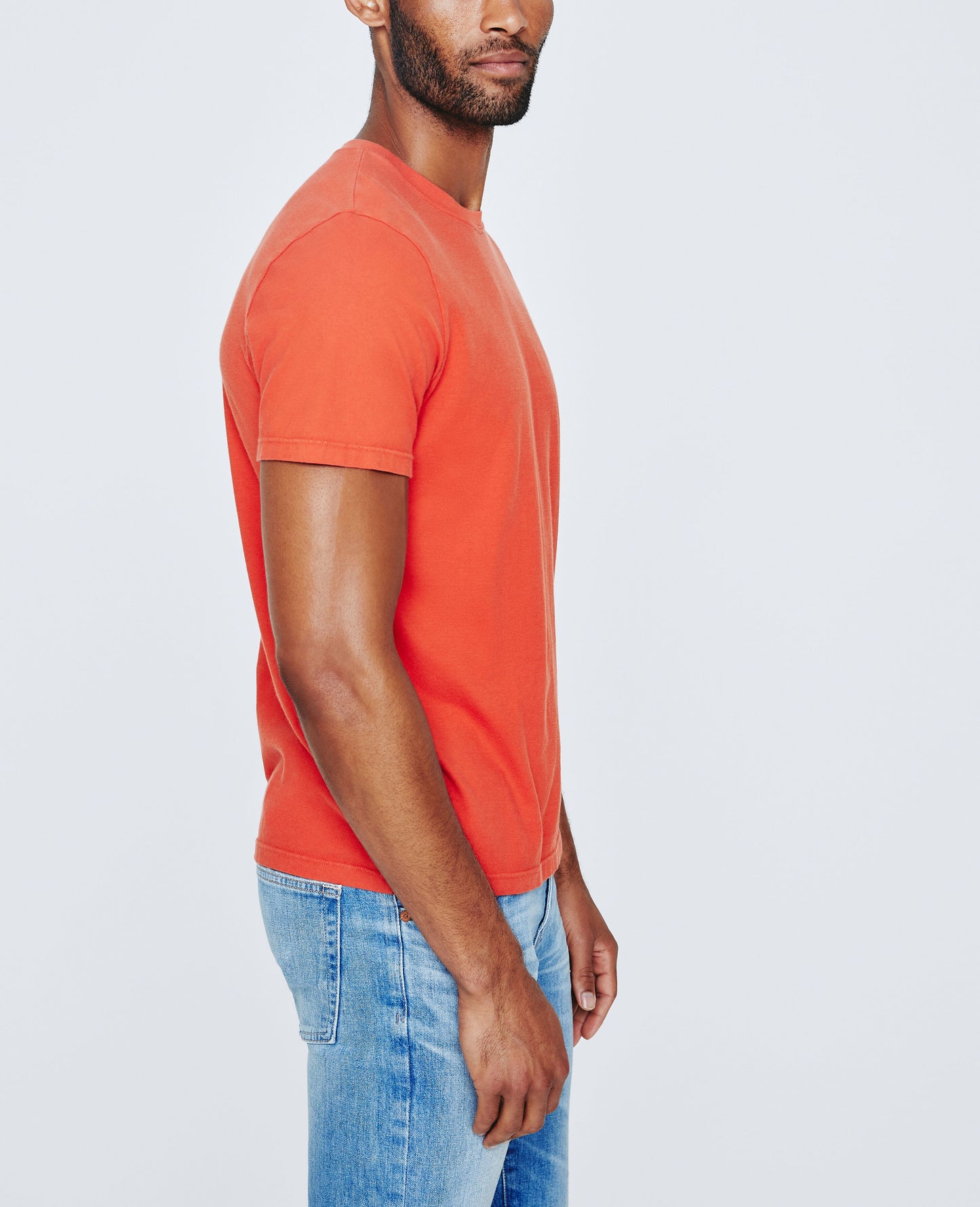 Our Bryce Crew is an essential, everyday tee for men featuring an orange-red hue and classic crew neckline. This men’s t-shirt is designed in a thoughtfully knitted Lofty Cotton Jersey fabrication that resists the temptations of torquing and twisting. Our jersey fabrication is knitted with both S-twist and Z-twist yarns, producing a garment that wears longevity well.