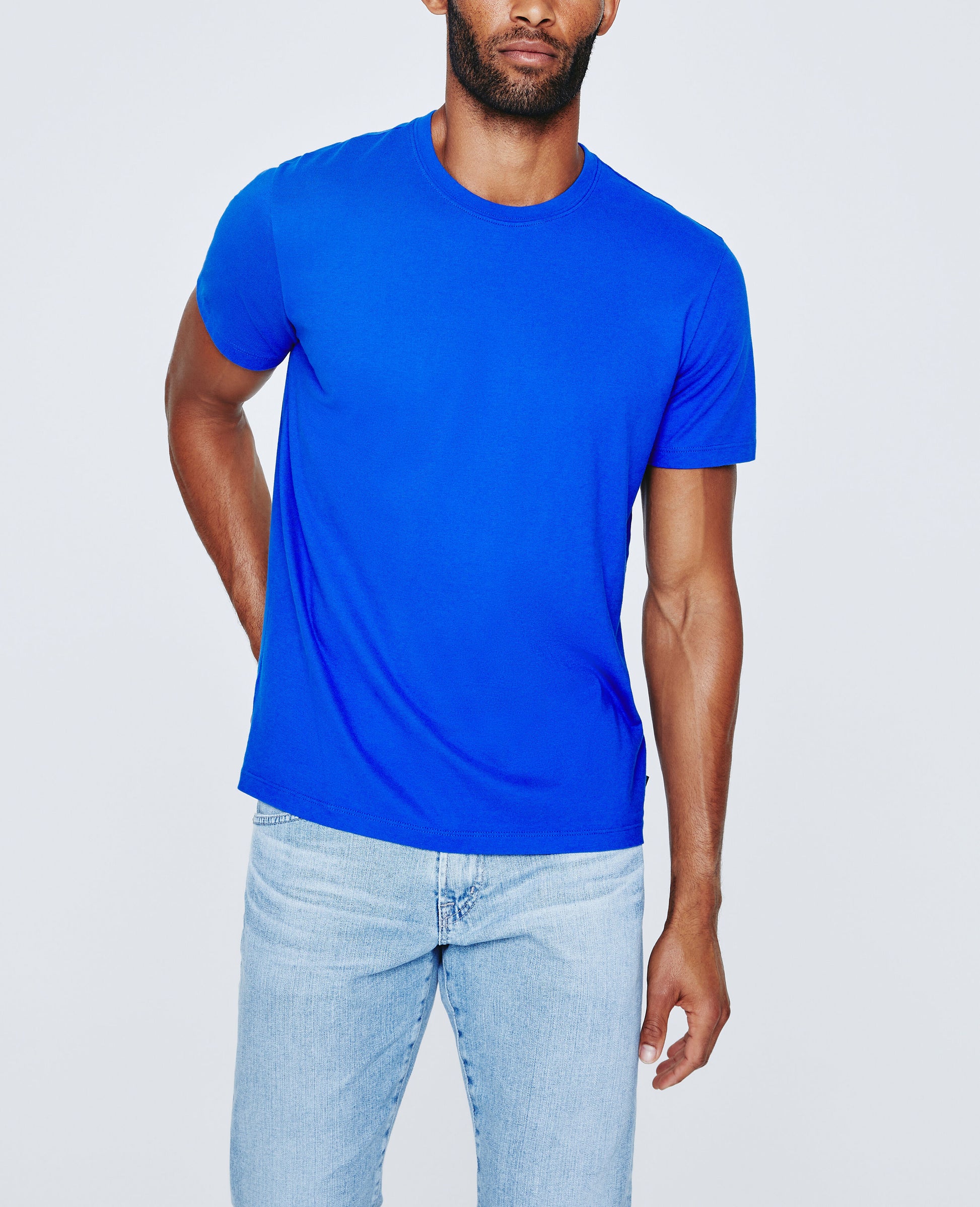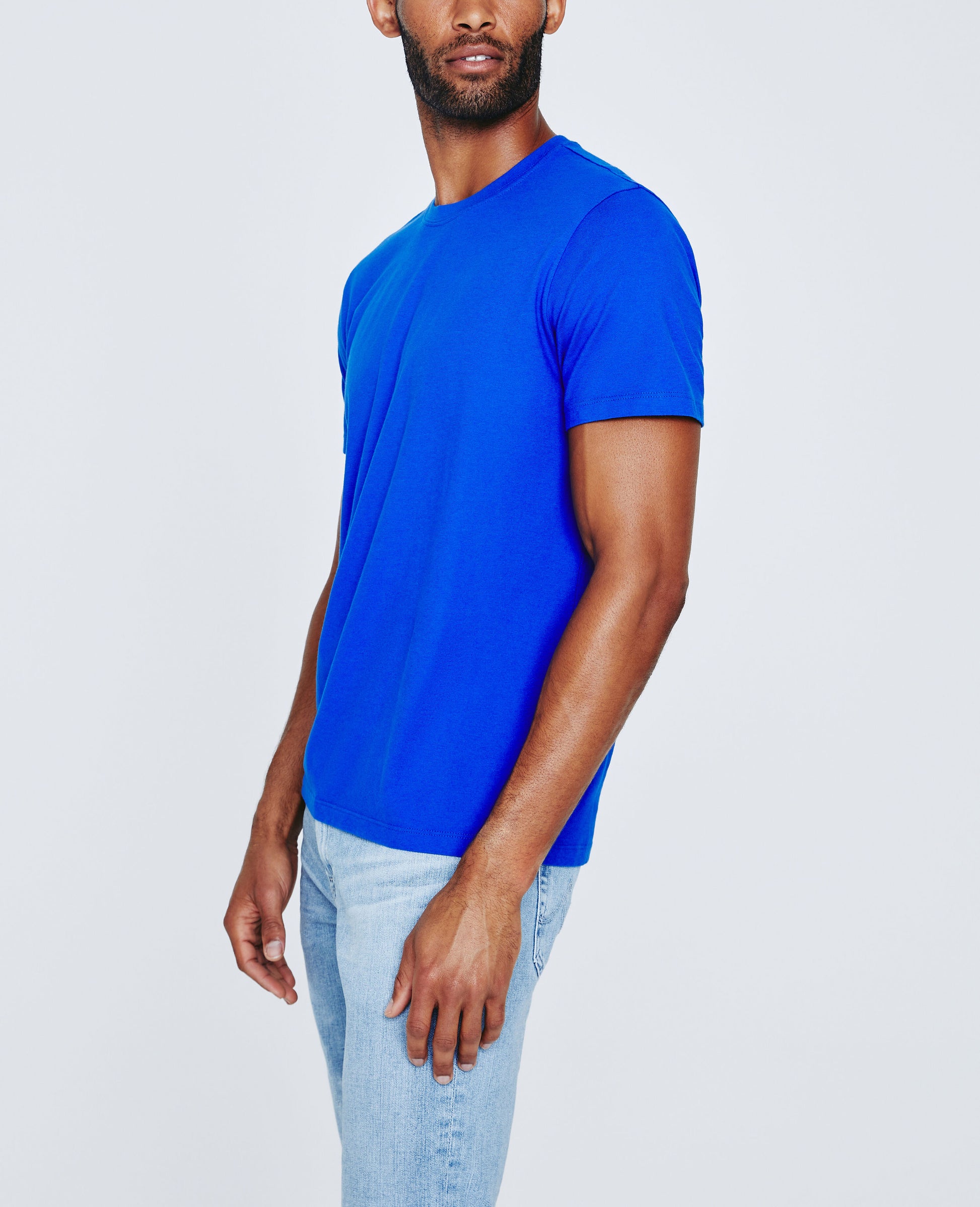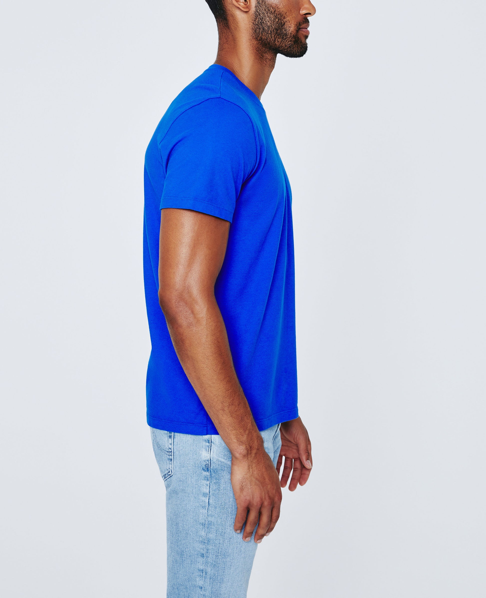 Our Bryce Crew is an essential, everyday tee for men featuring a striking blue hue and classic crew neckline. This men’s t-shirt is designed in a thoughtfully knitted Lofty Cotton Jersey fabrication that resists the temptations of torquing and twisting. Our jersey fabrication is knitted with both S-twist and Z-twist yarns, producing a garment that wears longevity well.