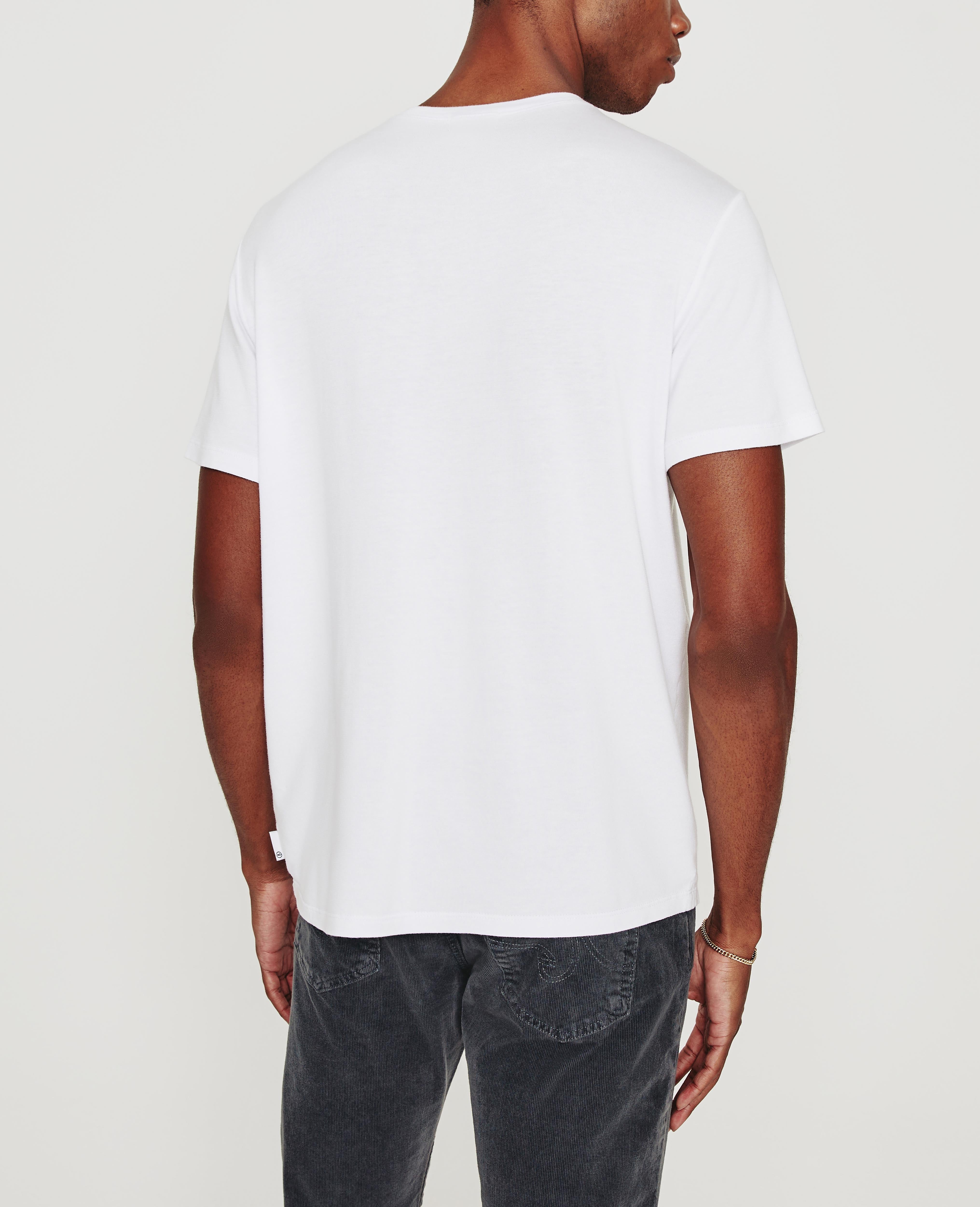 The Bryce Crew Tee for men features a white hue and a classic crew neck line. This men’s t-shirt is designed in a lightweight, wrinkle-resistant cotton lyocell knit made with pima cotton, a smooth hand feel, and an easy, relaxed fit.