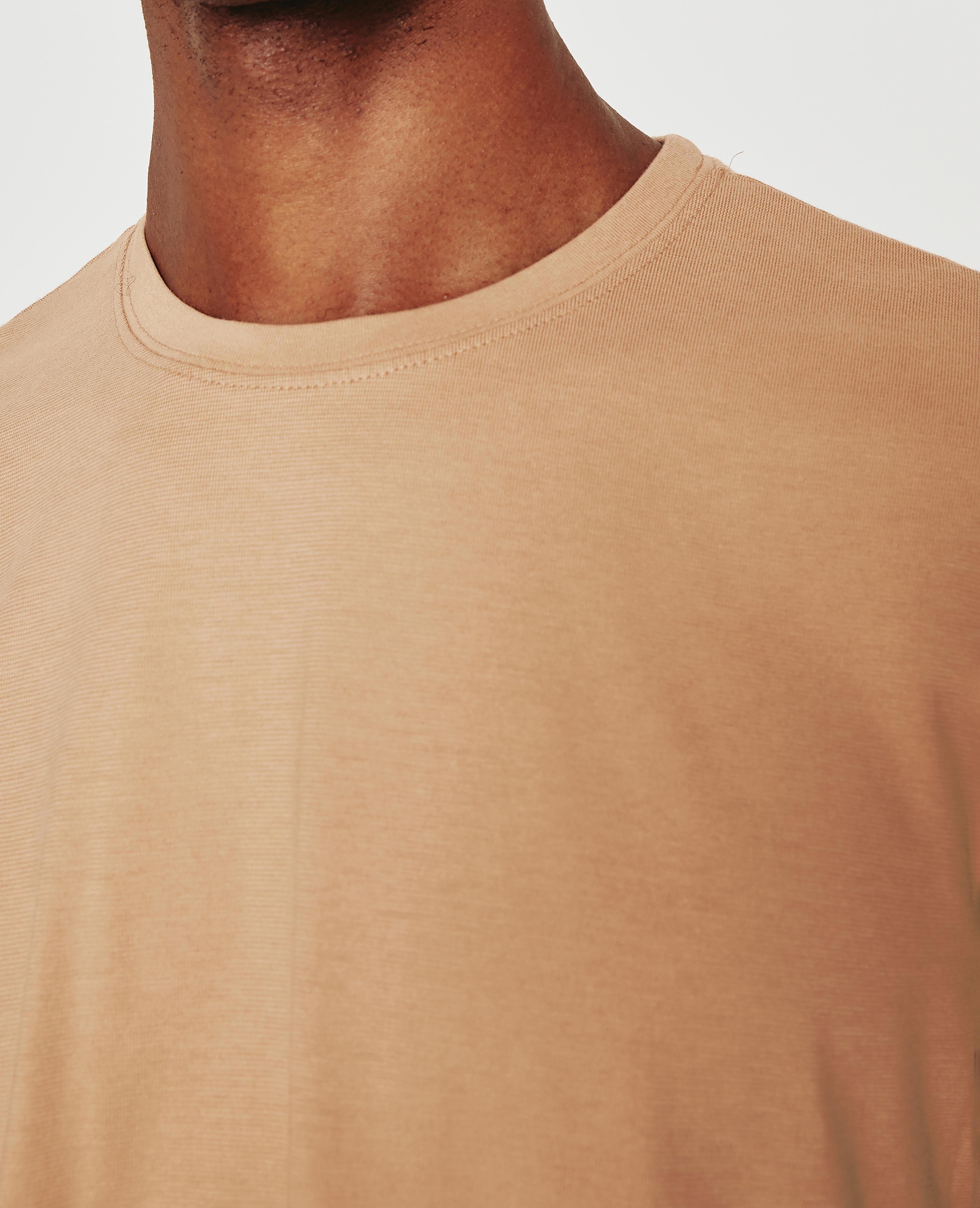 The Bryce Crew Tee for men features a soft beige hue and a classic crew neckline. This men’s t-shirt is designed in a lightweight fabric made from 100% cotton fibers that are thoughtfully knitted to prevent torquing. This AG exclusive fabric offers a durable 20/1 knit that withstands everyday wear through the seasons.