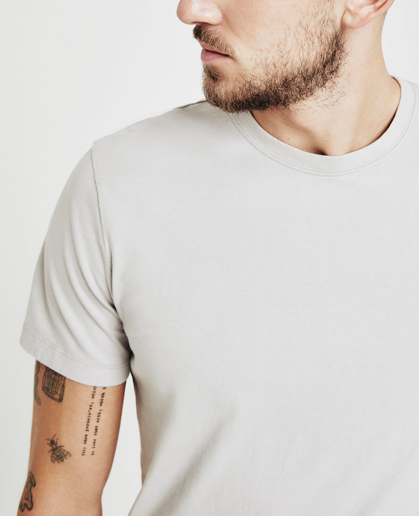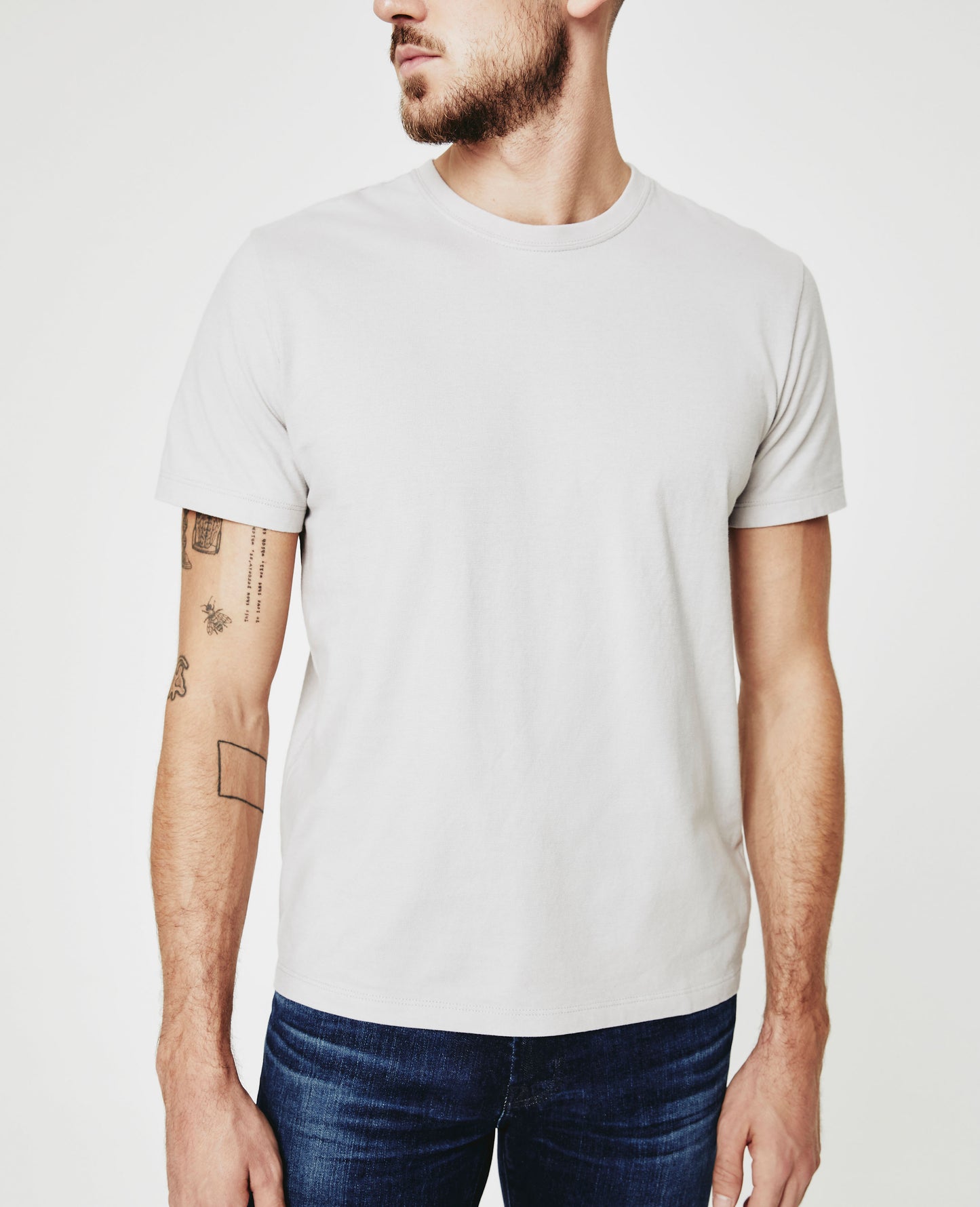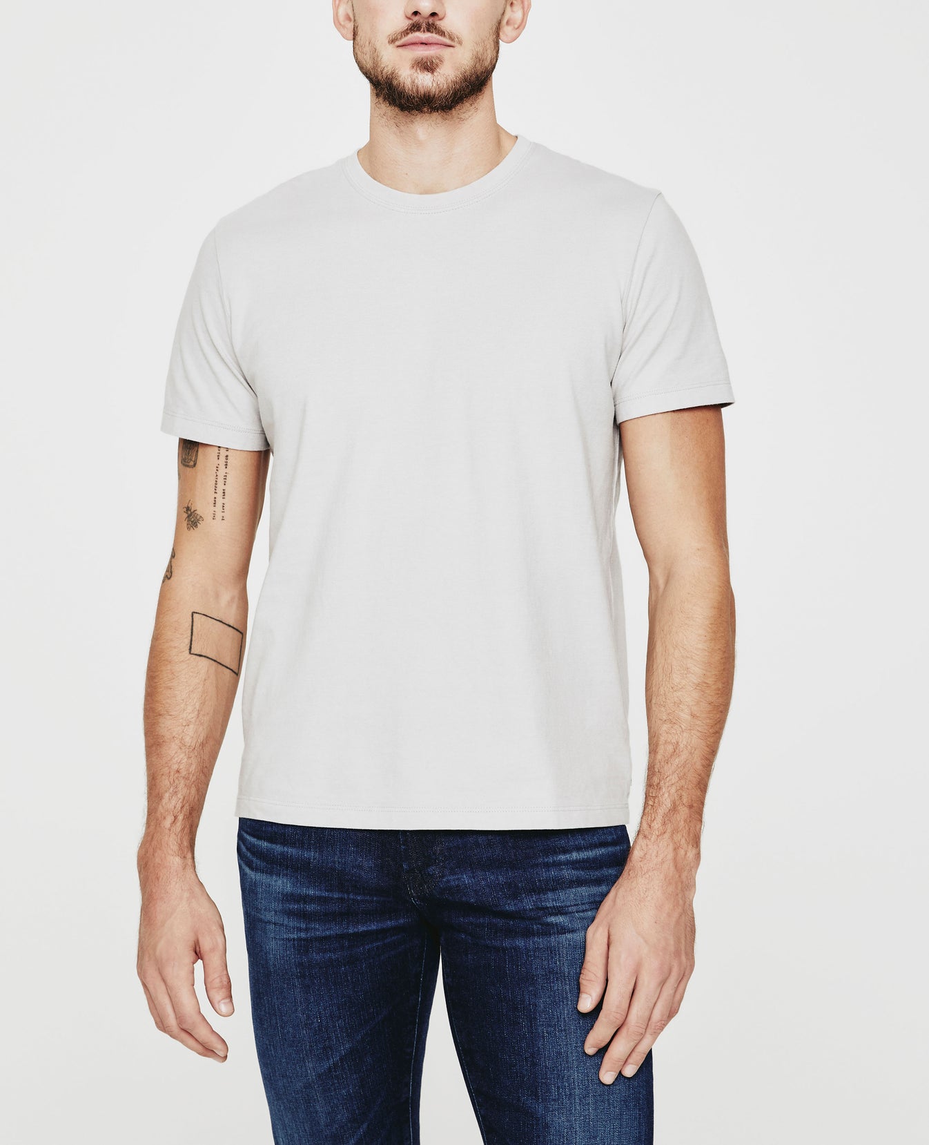 The Bryce Crew Tee for men features a soft gray hue and a classic crew neck line. This men’s t-shirt is designed in a lightweight fabrication made from 100% Lofty Cotton Jersey.