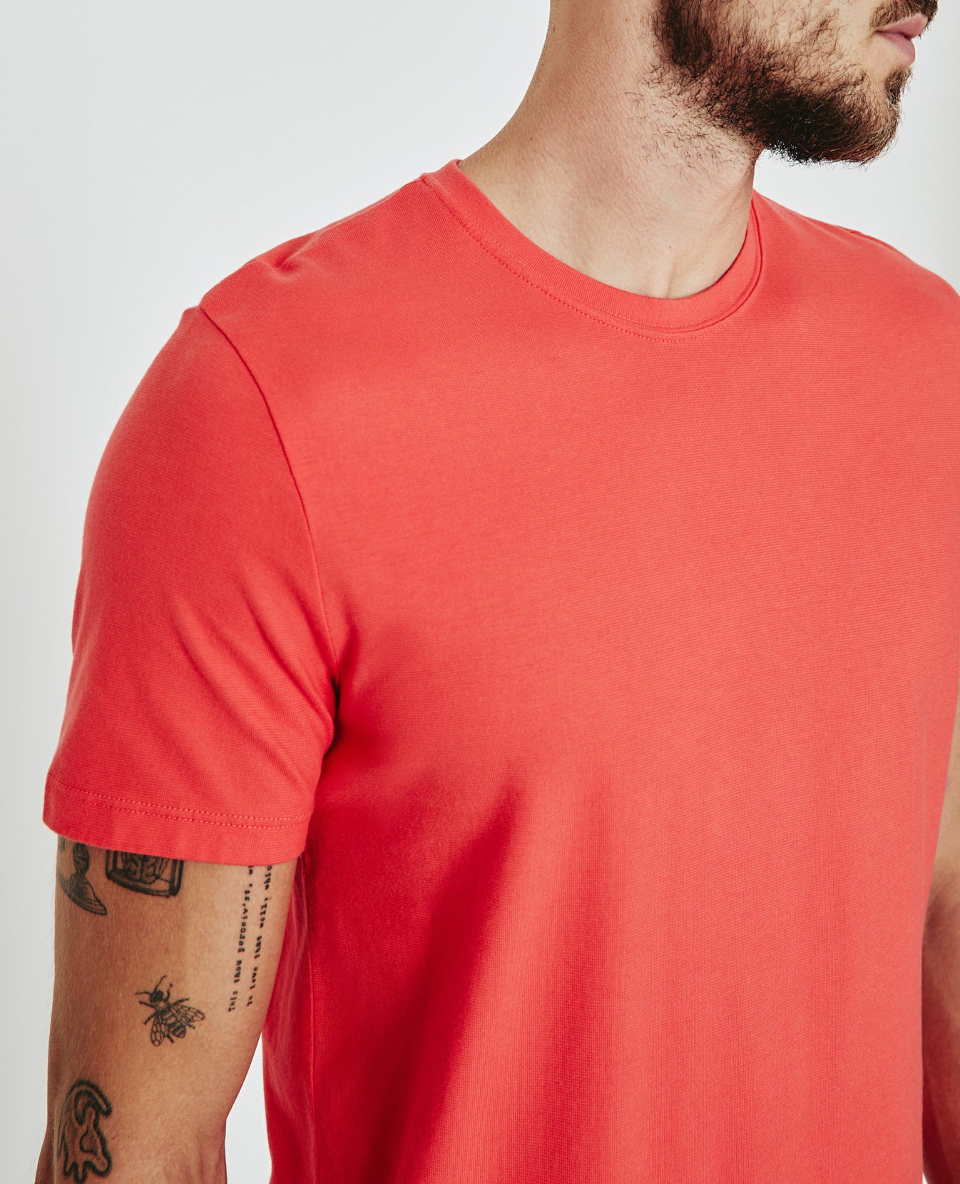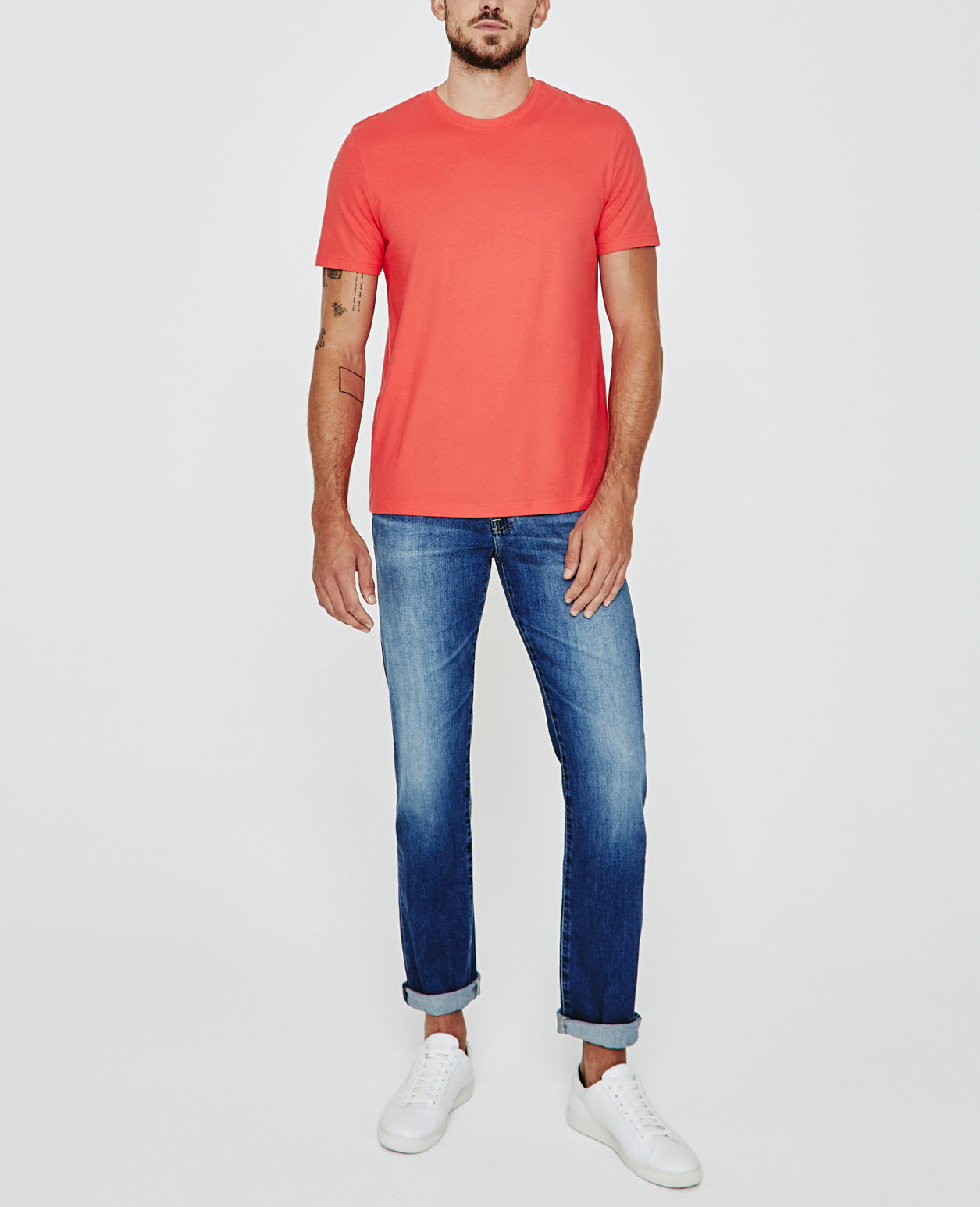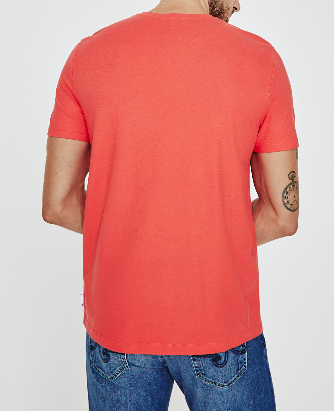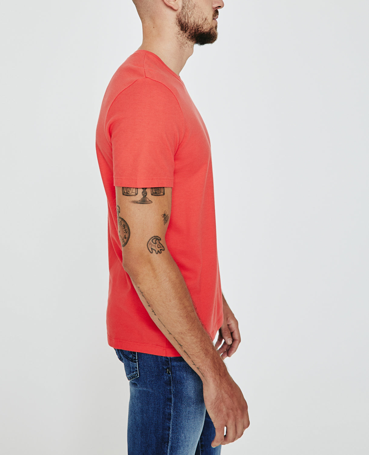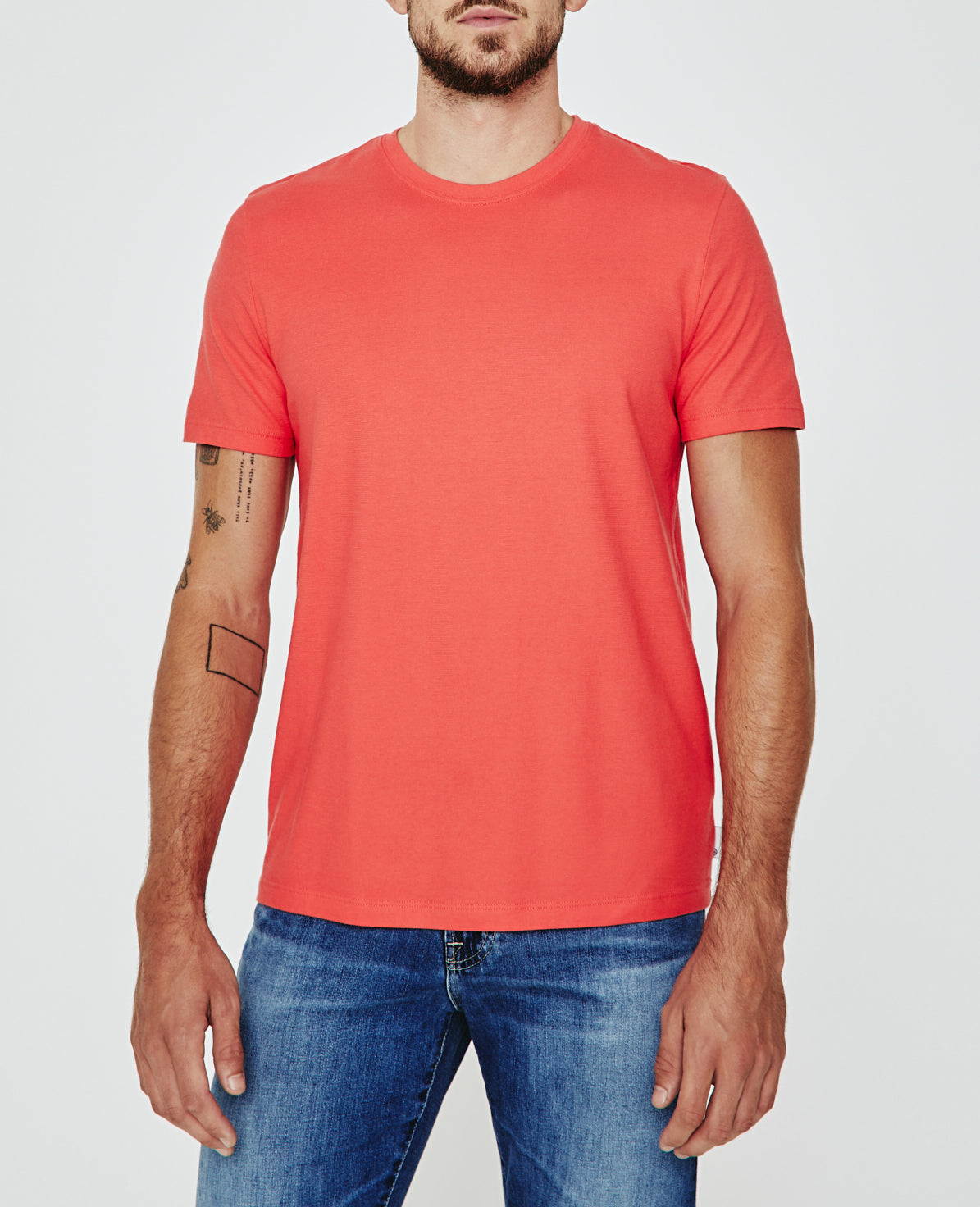 The Bryce Crew Tee for men features a watermelon red hue and a classic crew neckline. This men’s t-shirt is designed in a lightweight fabric made from 100% cotton fibers that are thoughtfully knitted to prevent torquing. This AG exclusive fabric offers a durable 20/1 knit that withstands everyday wear through the seasons.