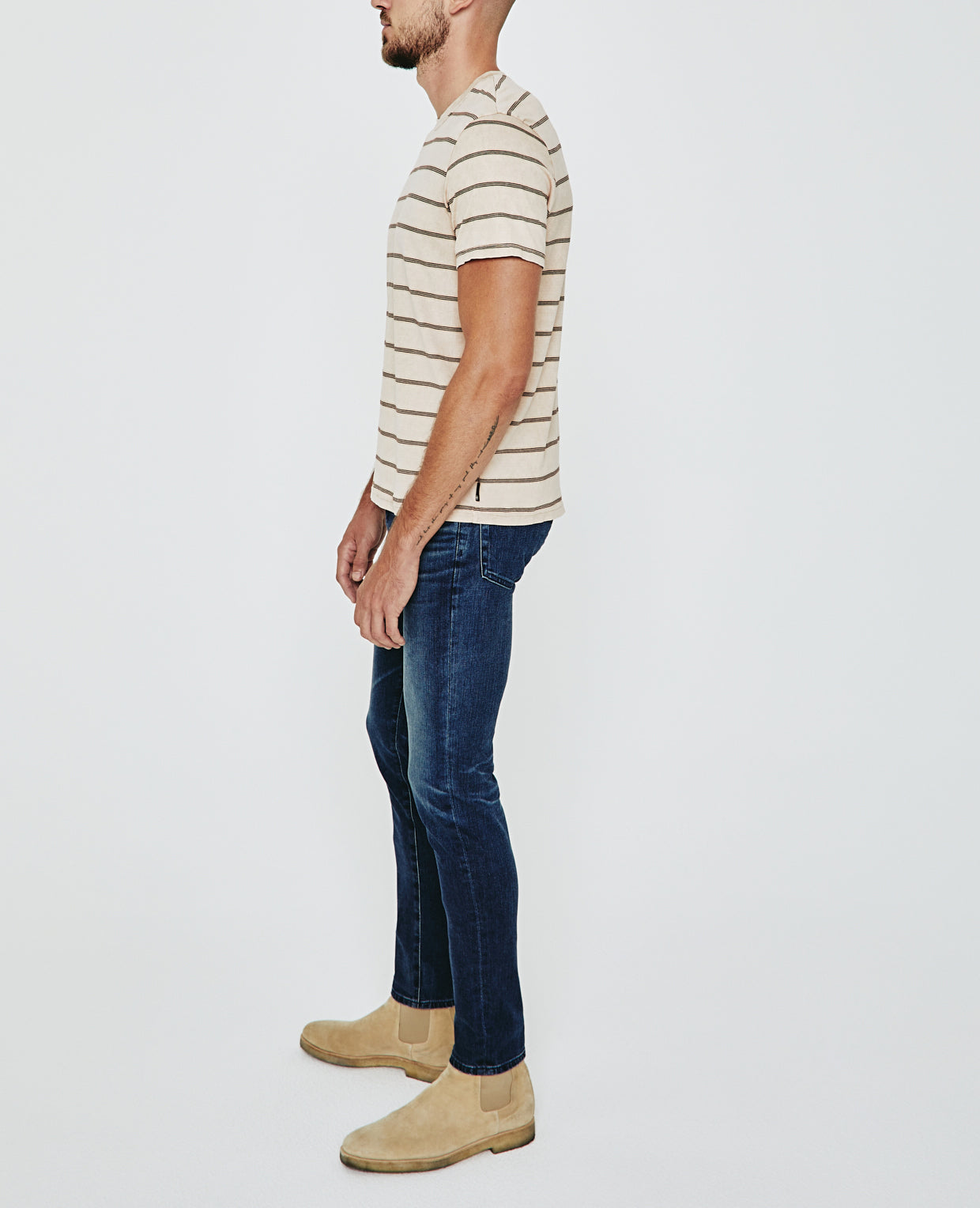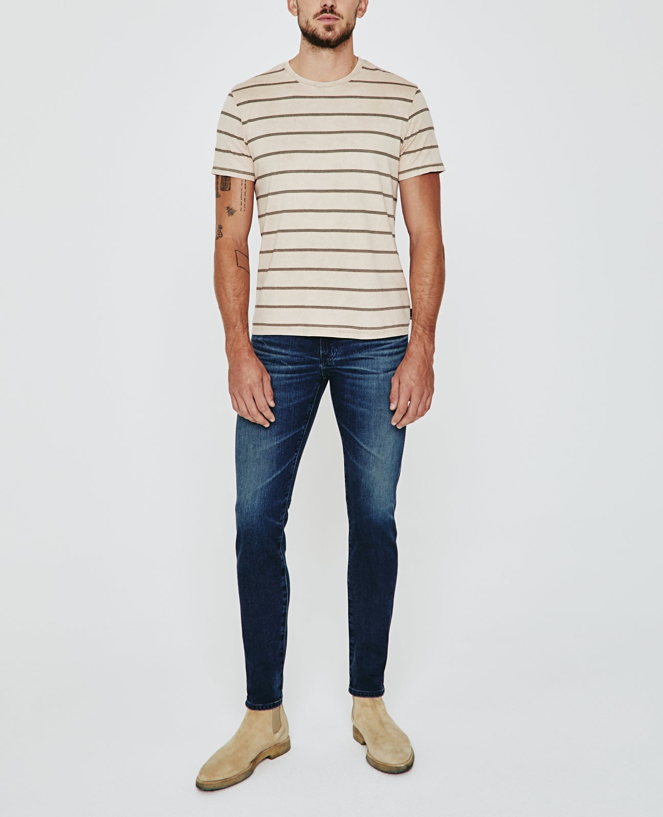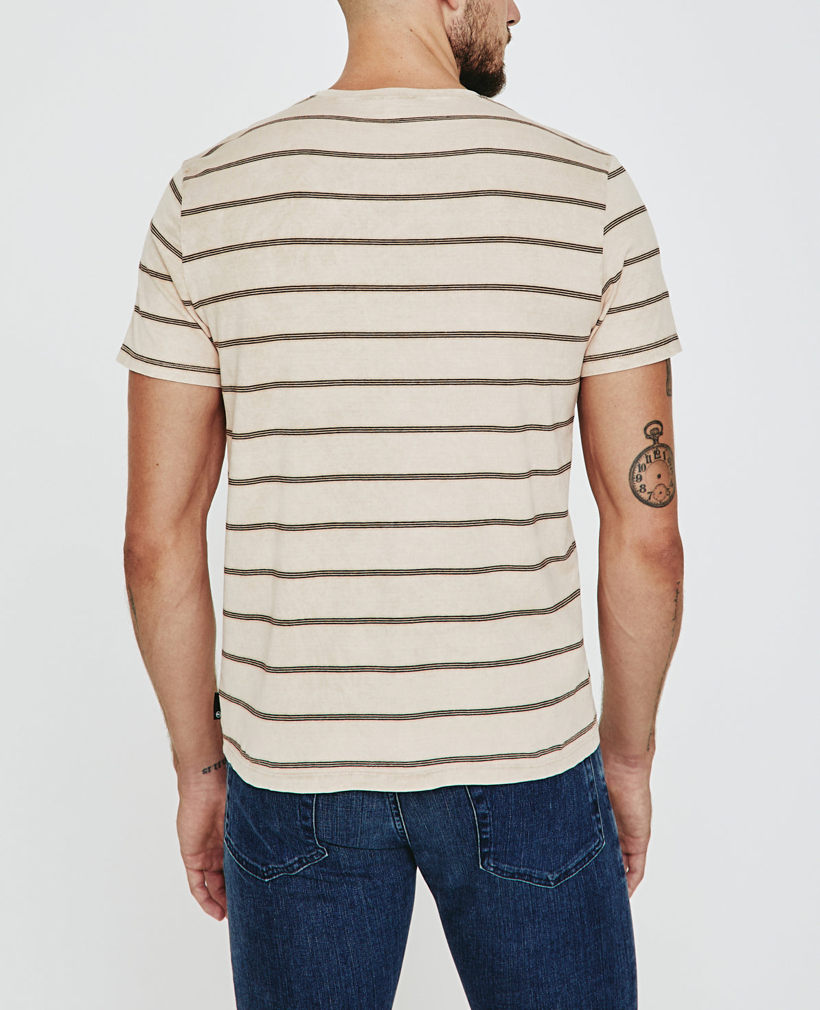 The Bryce Crew Tee is a crewneck t-shirt for men featuring a contrast stripe pattern on light oat beige dye finished with a luxury stonewash treatment for subtle acid wash characteristics.The Bryce offers a classic crew neckline, short sleeves, and a comfortable fit. This men's t-shirt is designed in a lightweight fabric distinctly made for ultra soft, comfortably breathable wear.