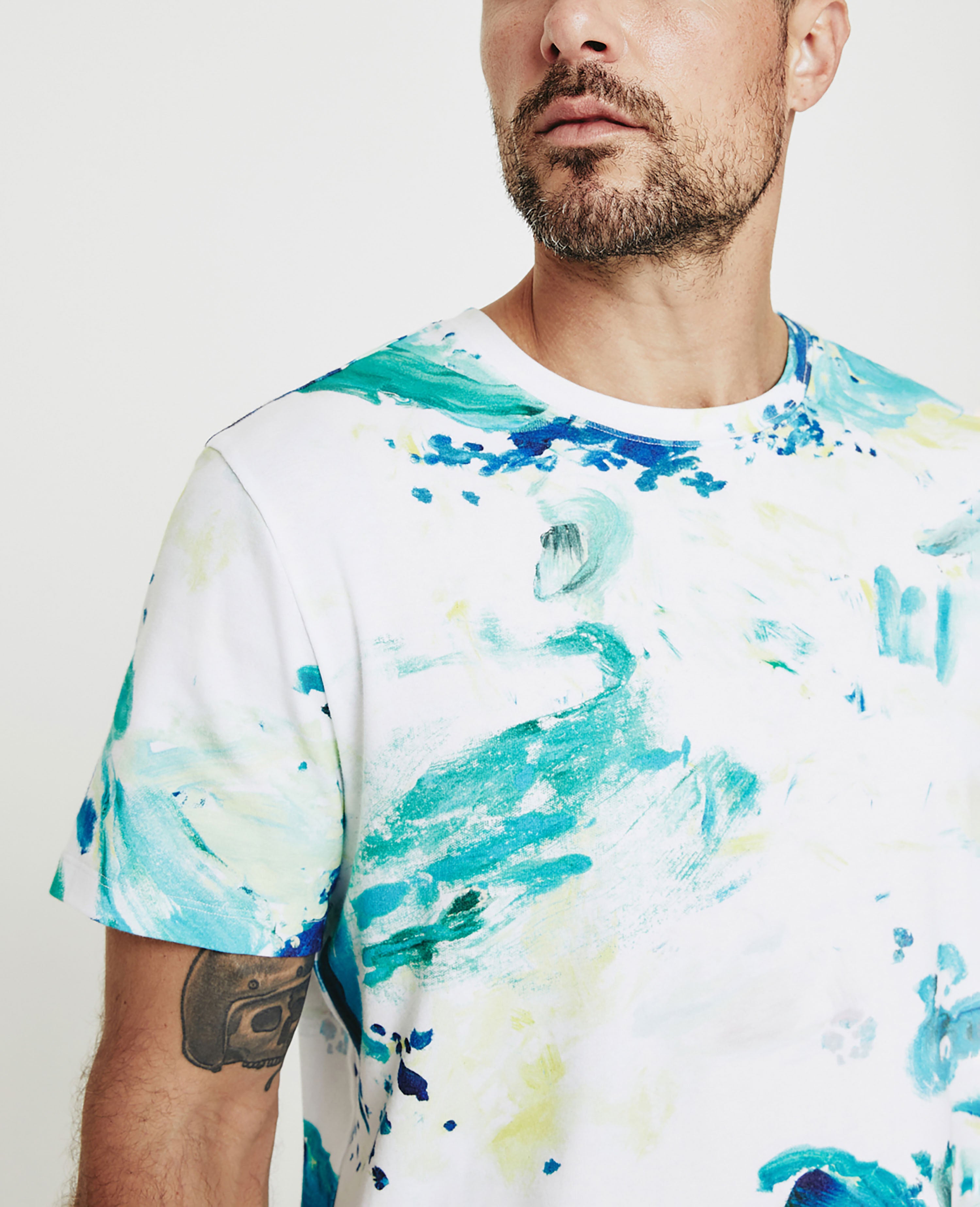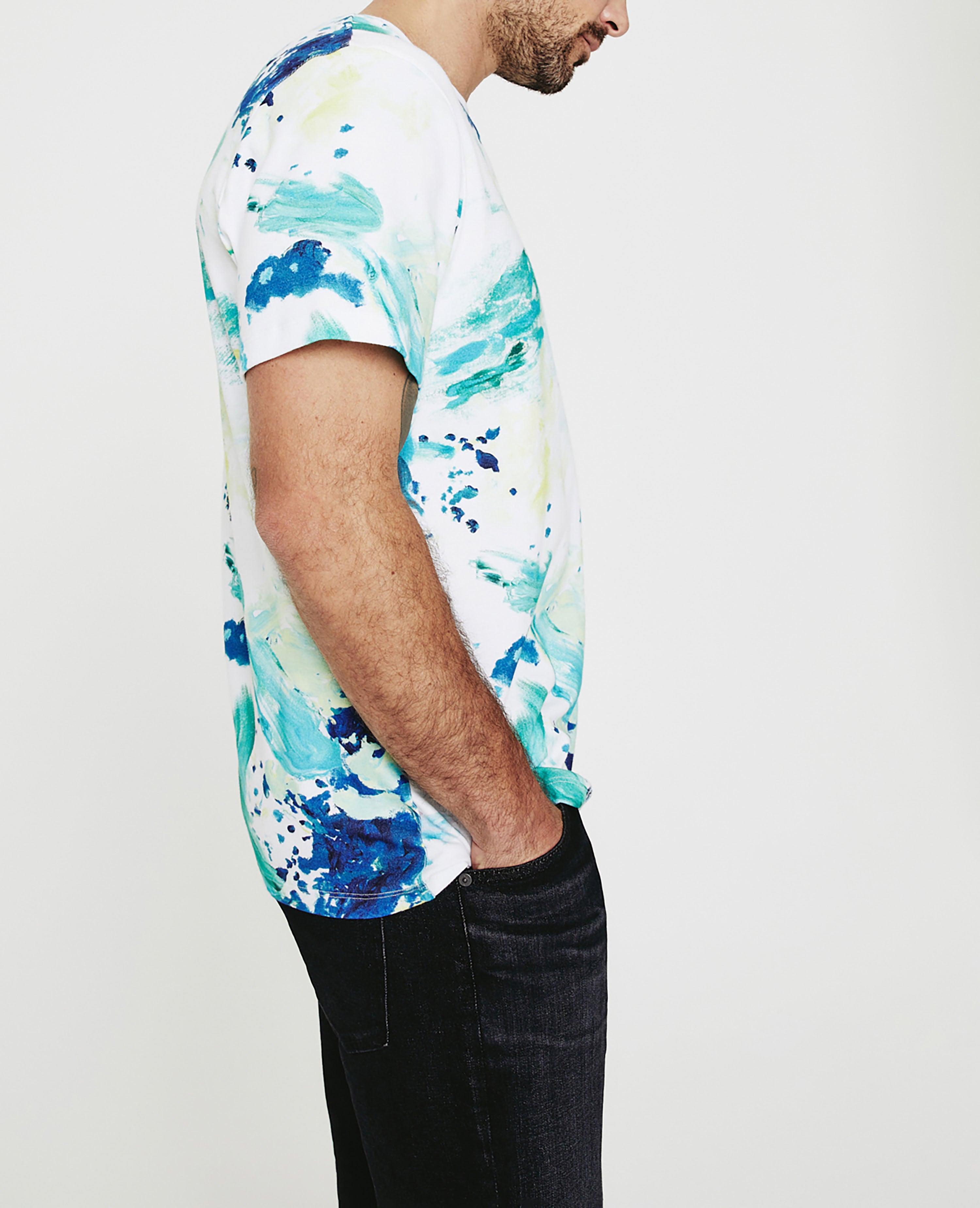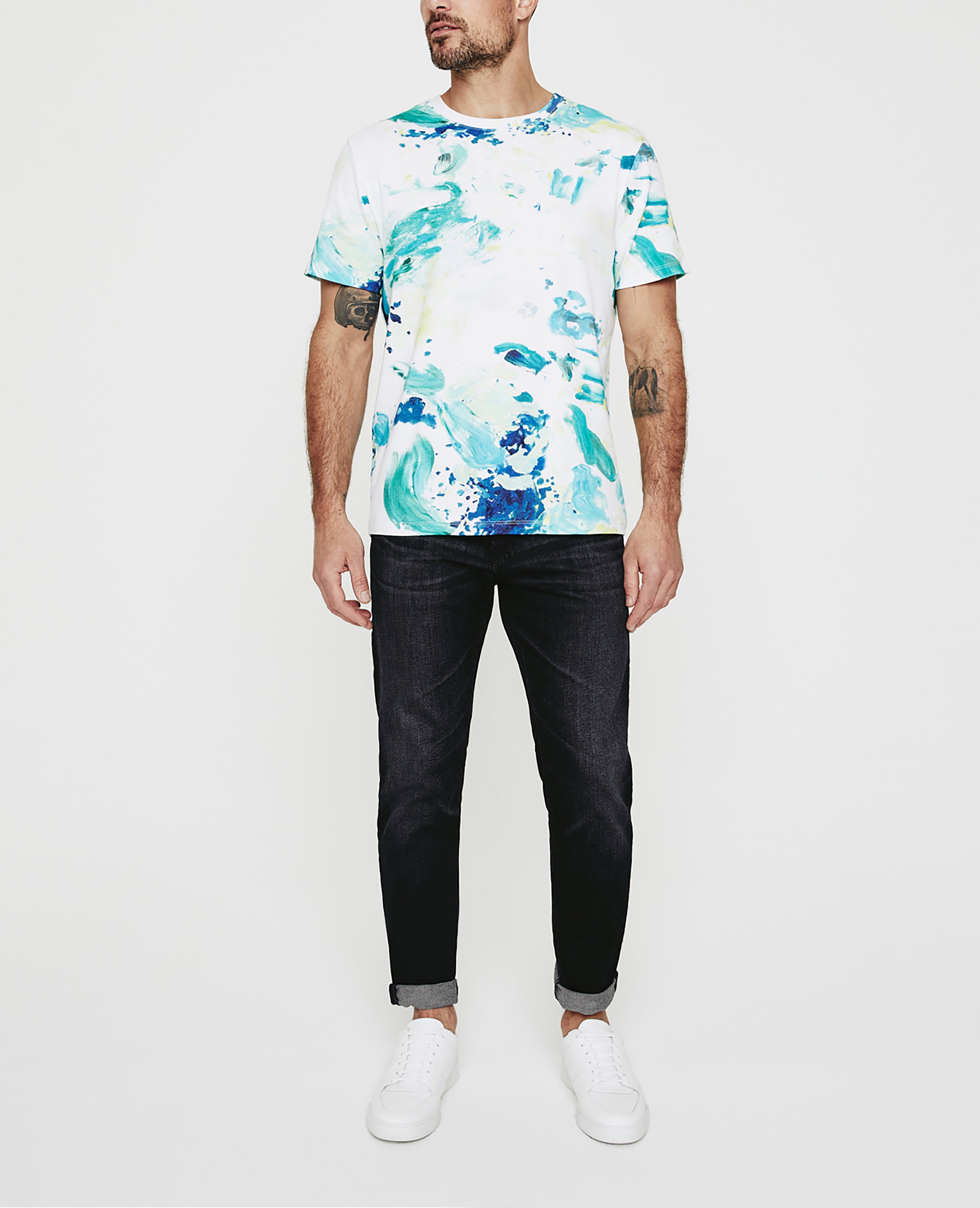 The Bryce Crew Tee for men features an AG exclusive watercolor print with soft blues and muted yellow hues. This men’s t-shirt features a classic crew neckline and is designed in a lightweight fabrication made from Luxe Comfort Jersey.