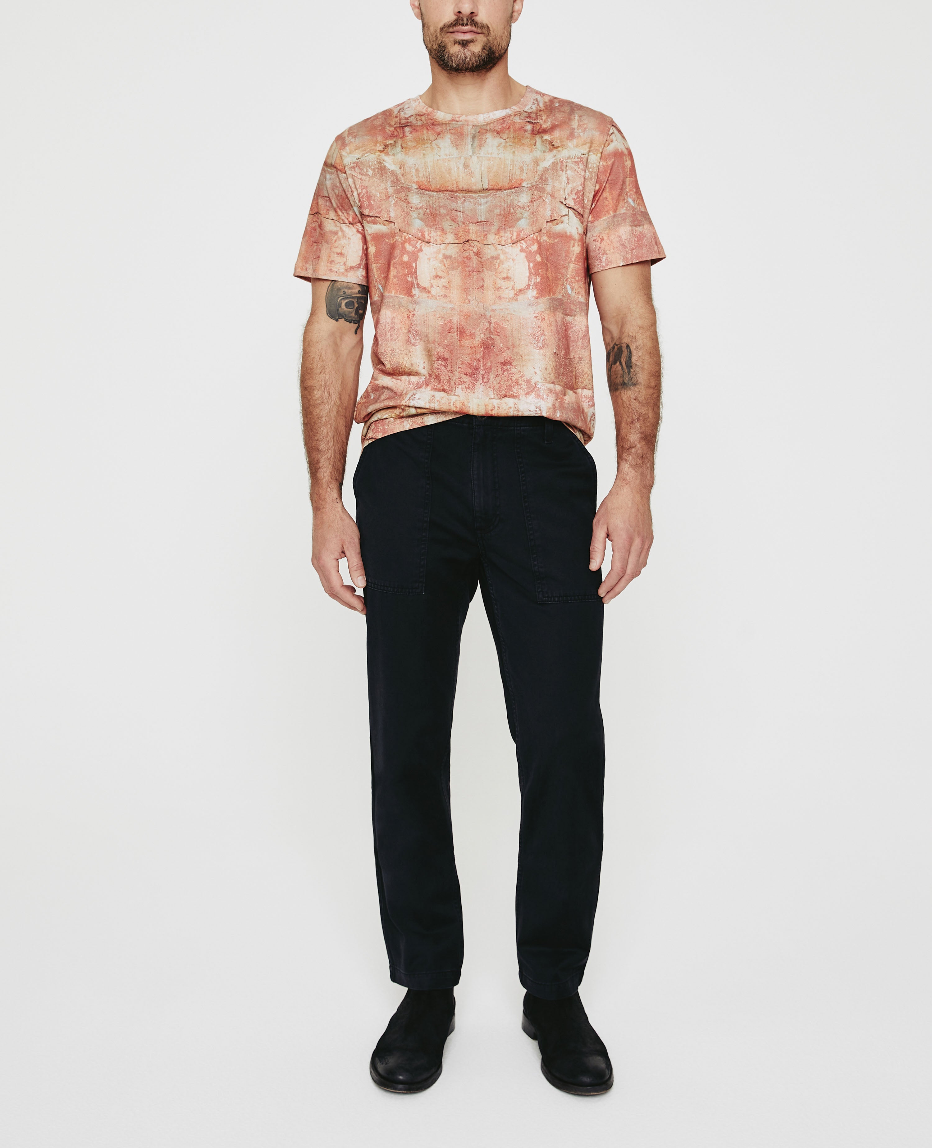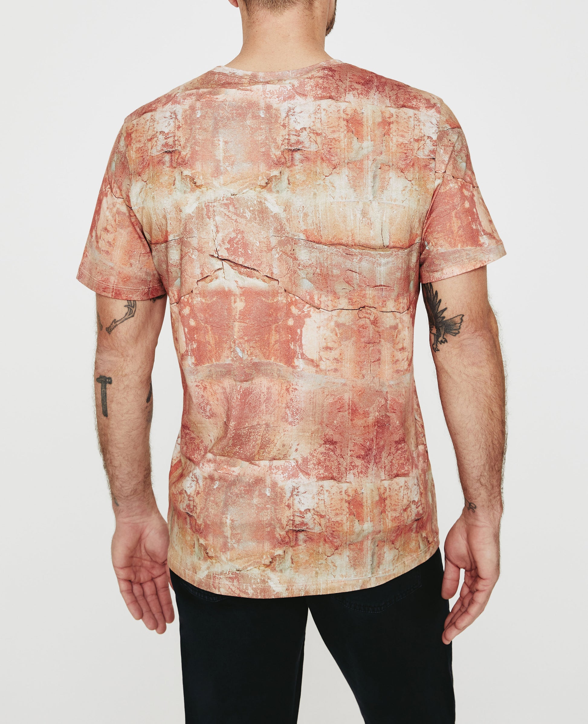 The Bryce Crew Tee for men features an AG-exclusive sandstone print inspired by the incongruous textures of stunning desert rock formations. This classic crew is designed in a sumptuous Luxe Comfort Jersey fabrication, combining cotton and spandex for a luxurious finish.
