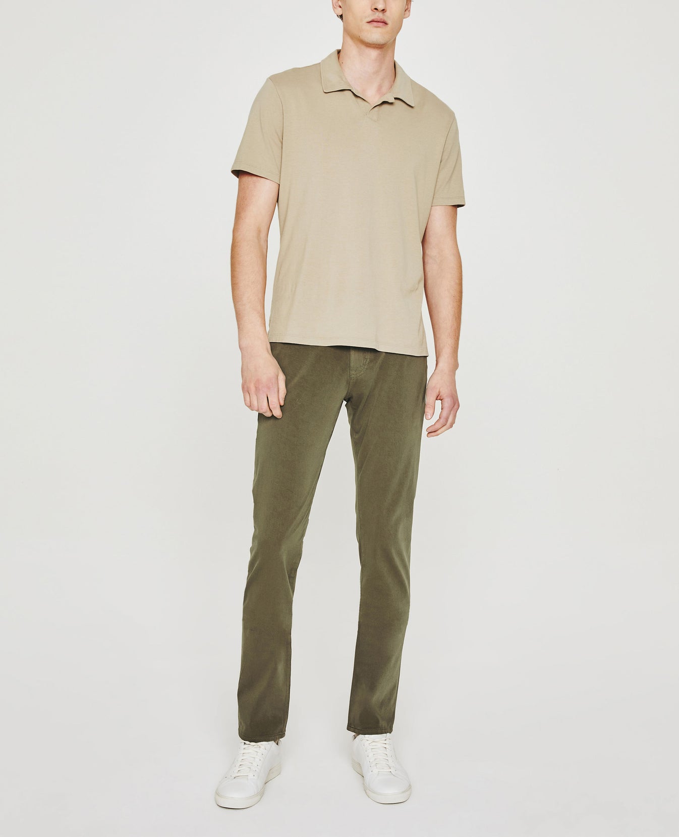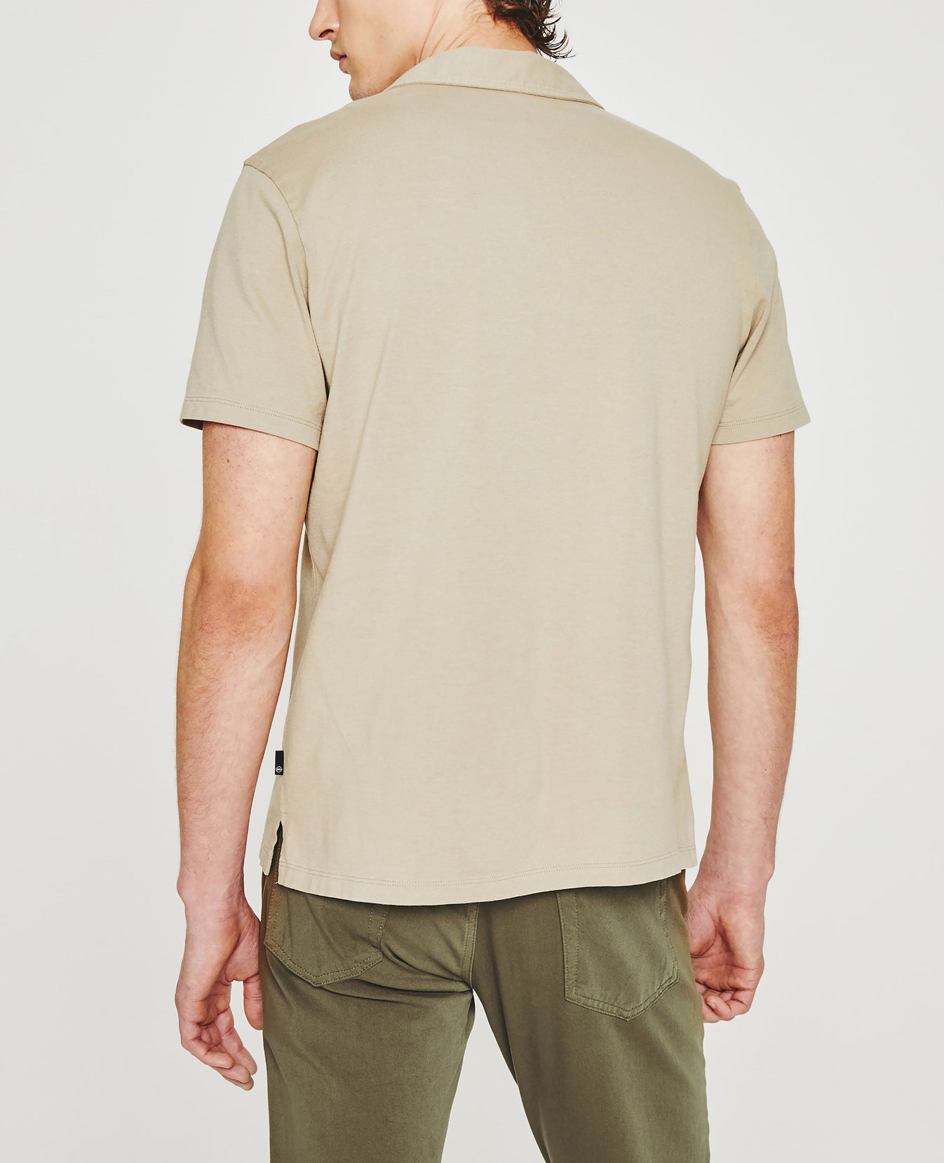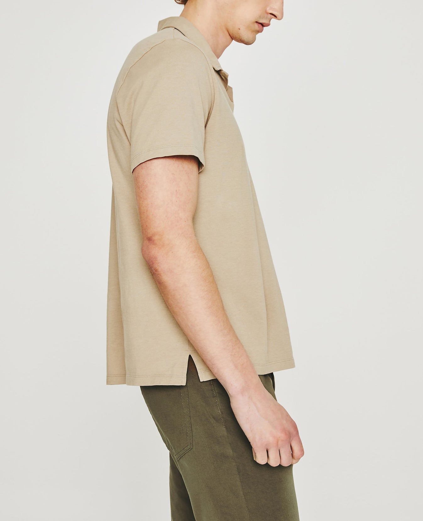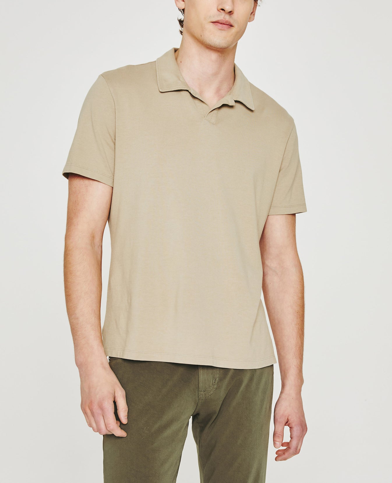 The Bryce Johnny Collar shirt is a classic short-sleeve polo tee with a relaxed neckline and pointed collar. Crafted from our Light Cotton Jersey in beige, it's soft and easy to wear—the perfect companion to a pair of jeans or something a little more tailored.