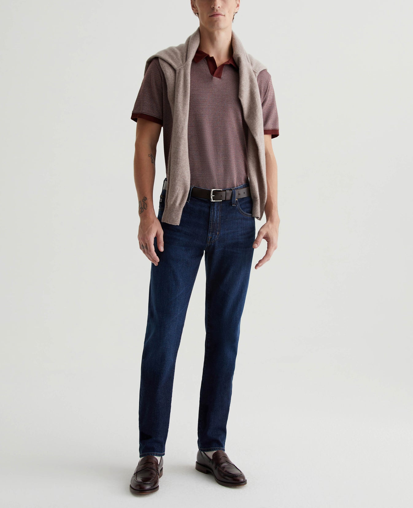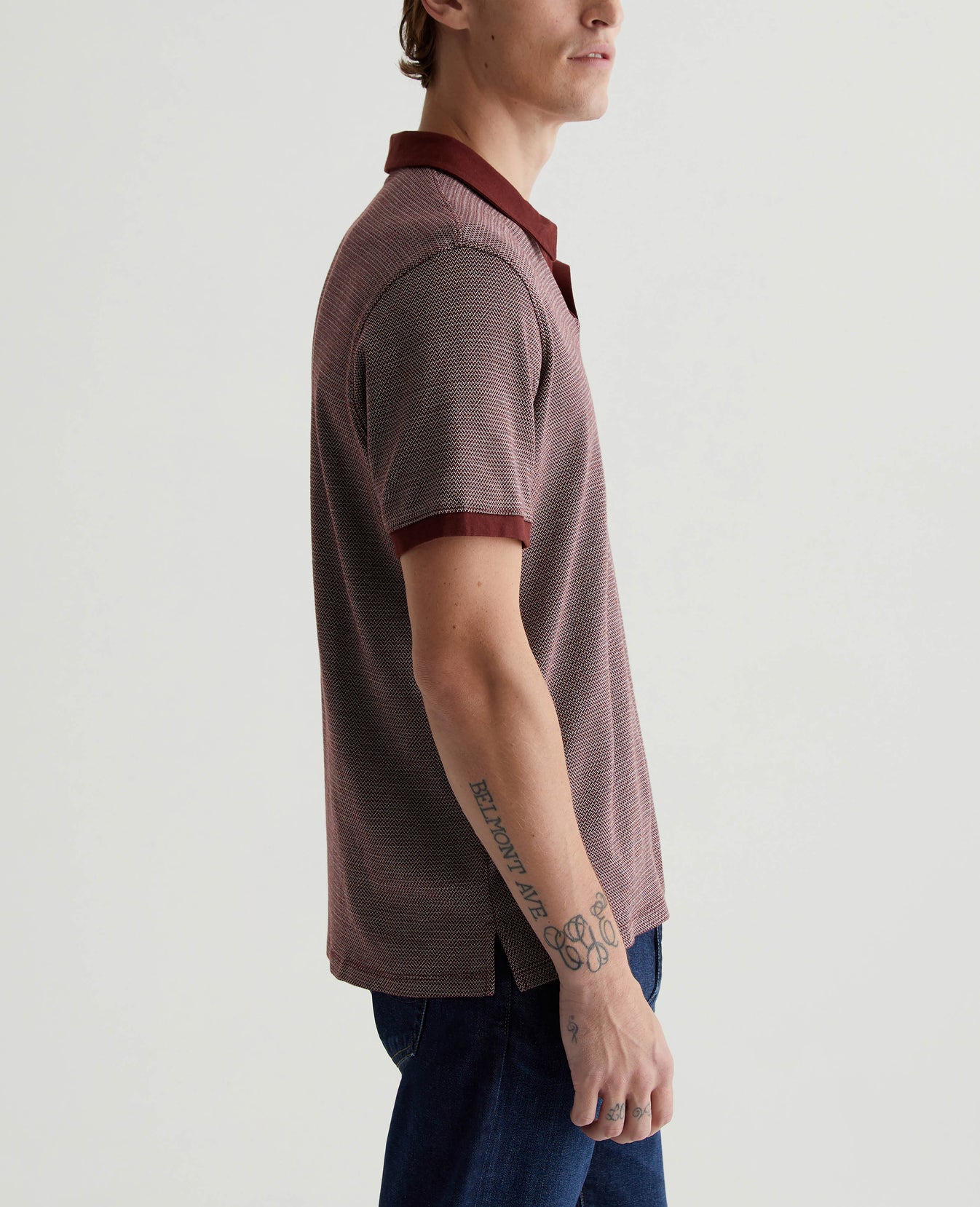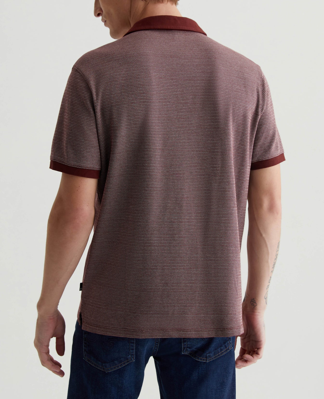The Bryce Johnny Collar shirt is a classic short-sleeve polo tee with a relaxed neckline and pointed collar. Updated in our Luxe Heavy Jacquard, it's got a delicate chevron pattern accented by solid trim.