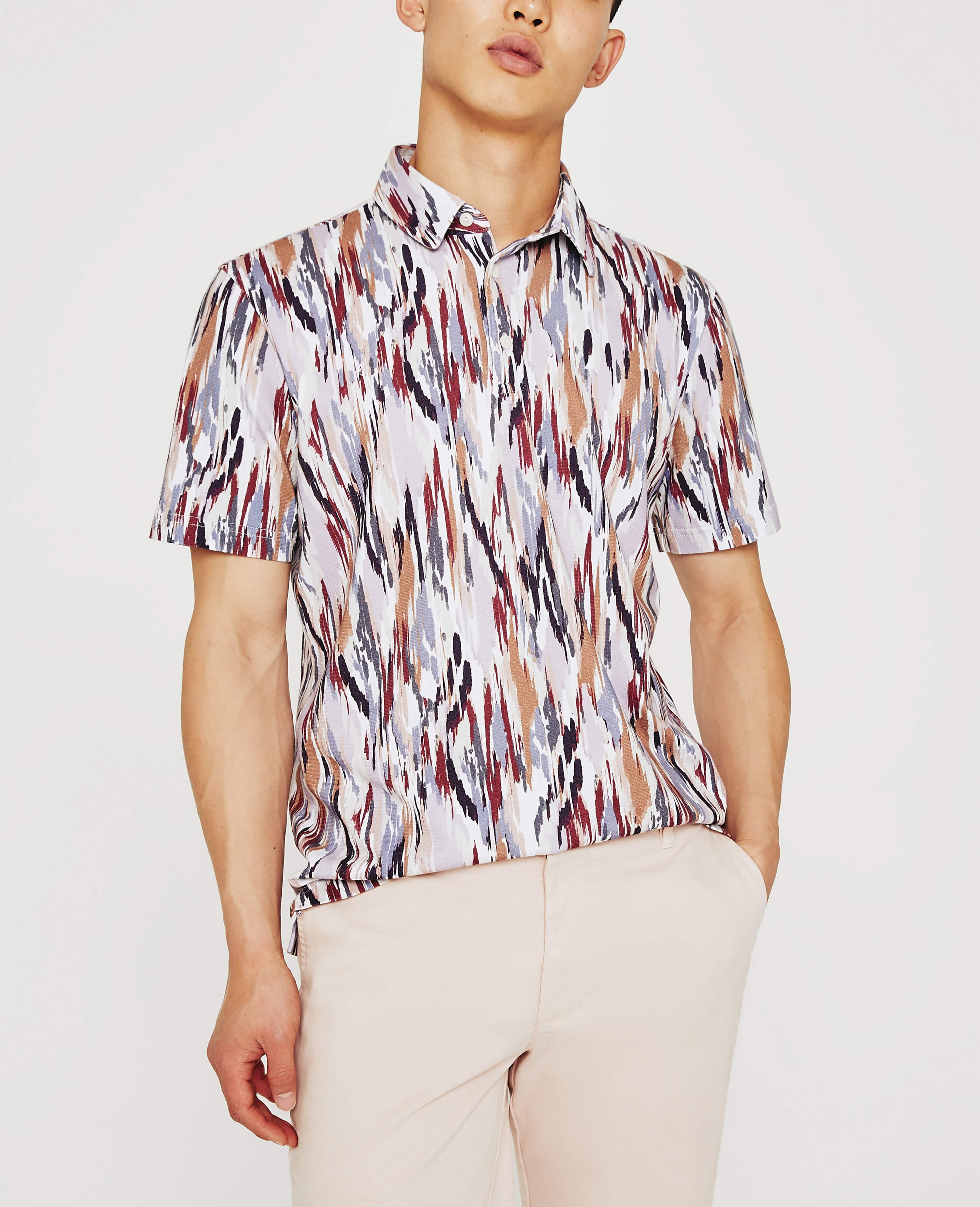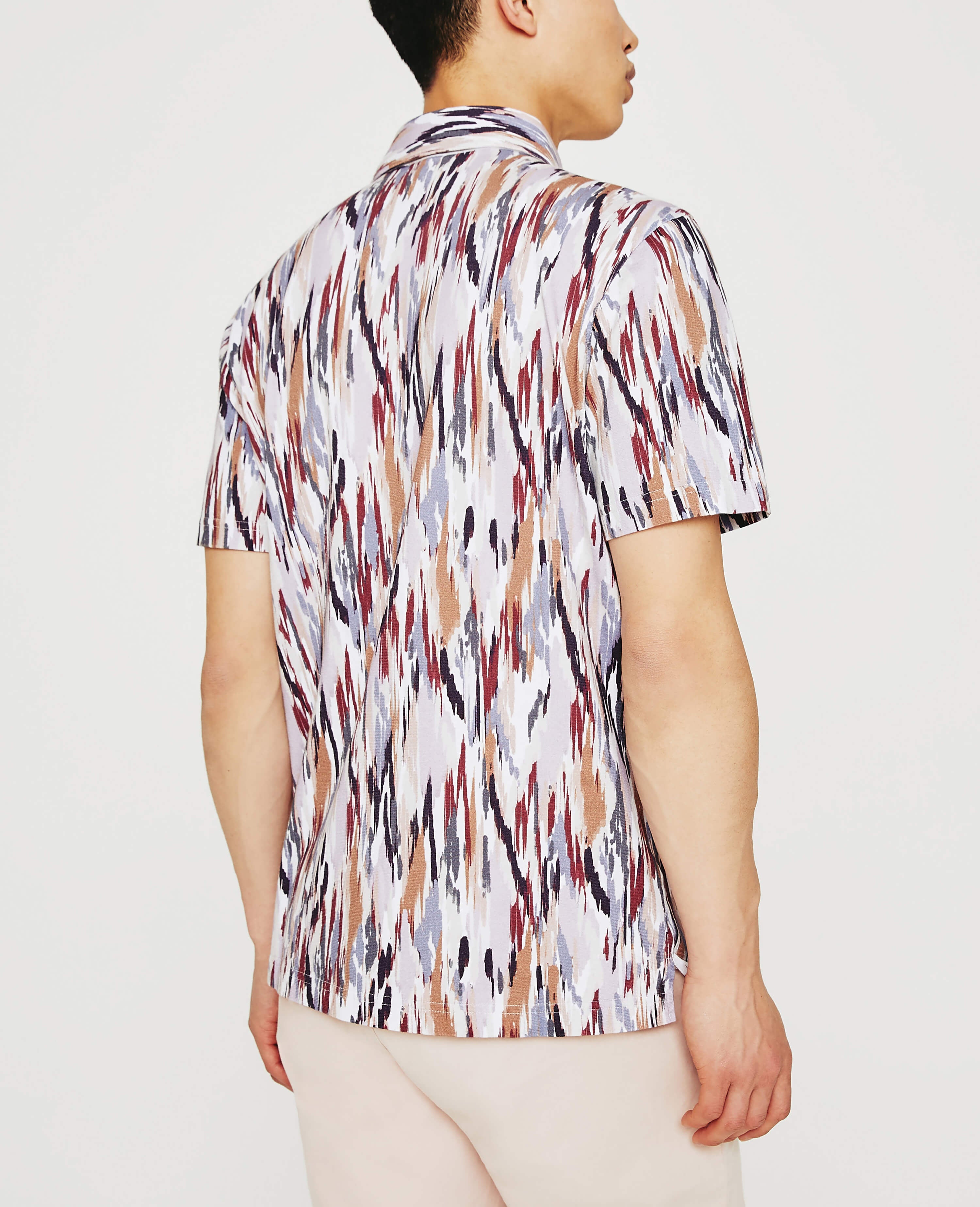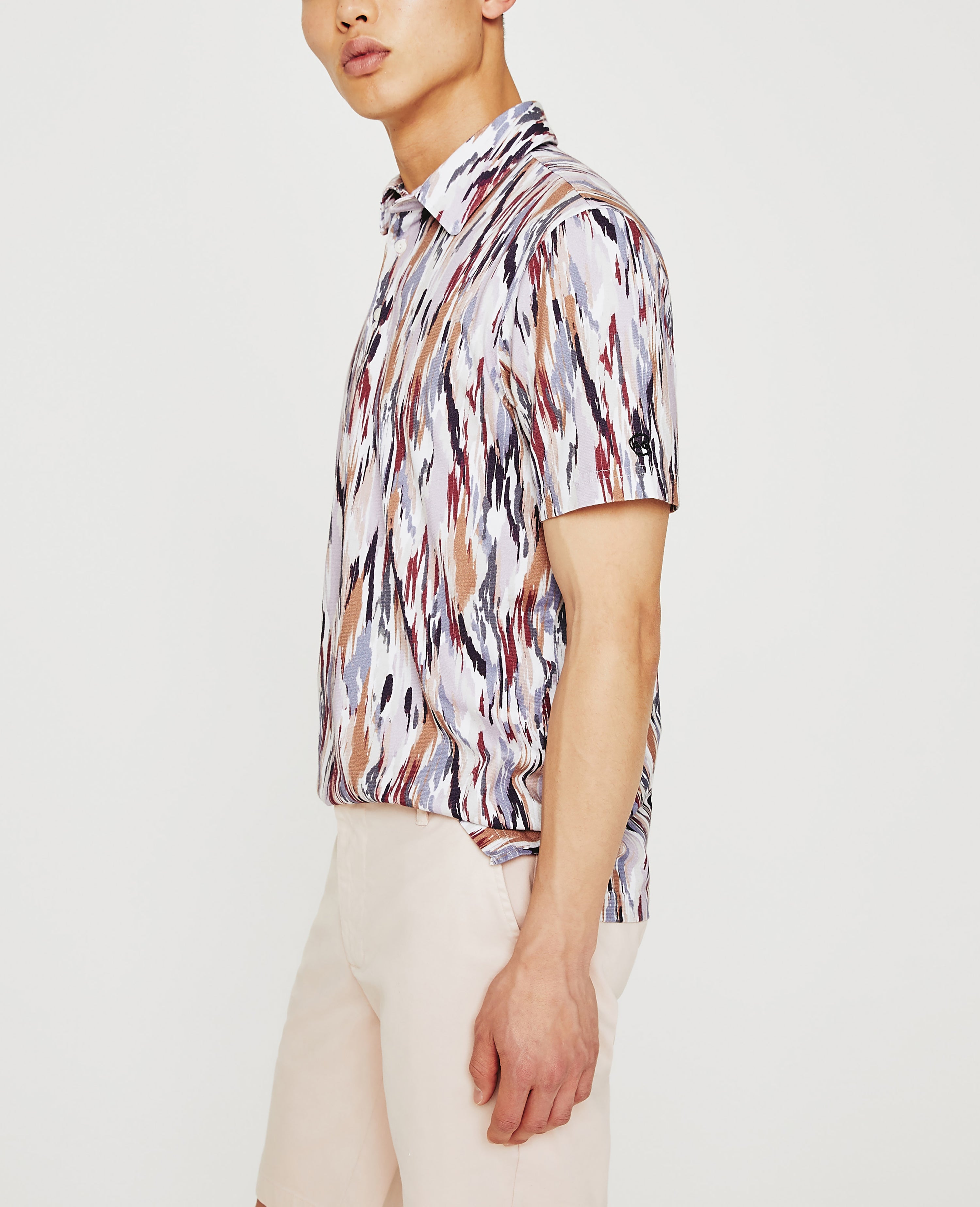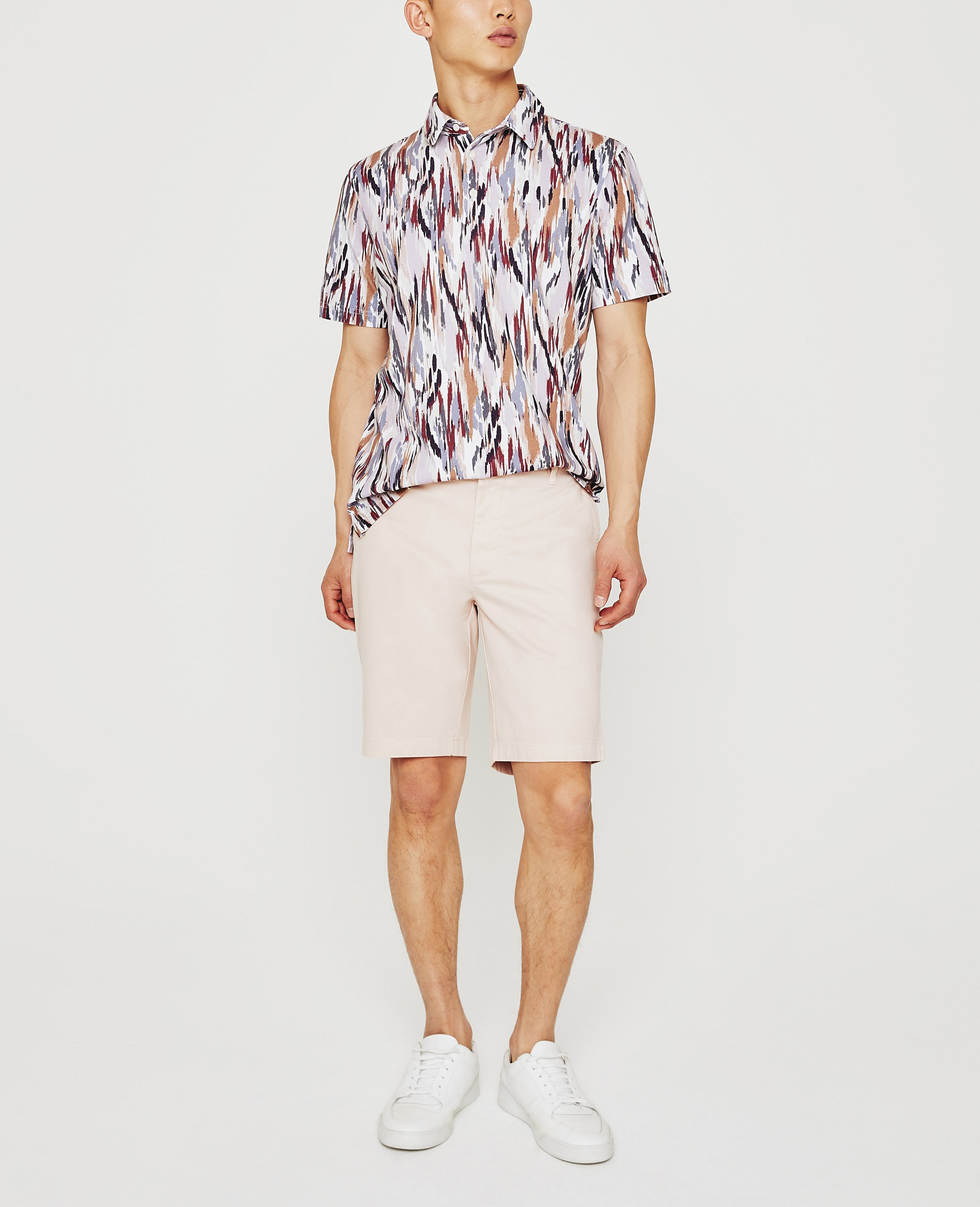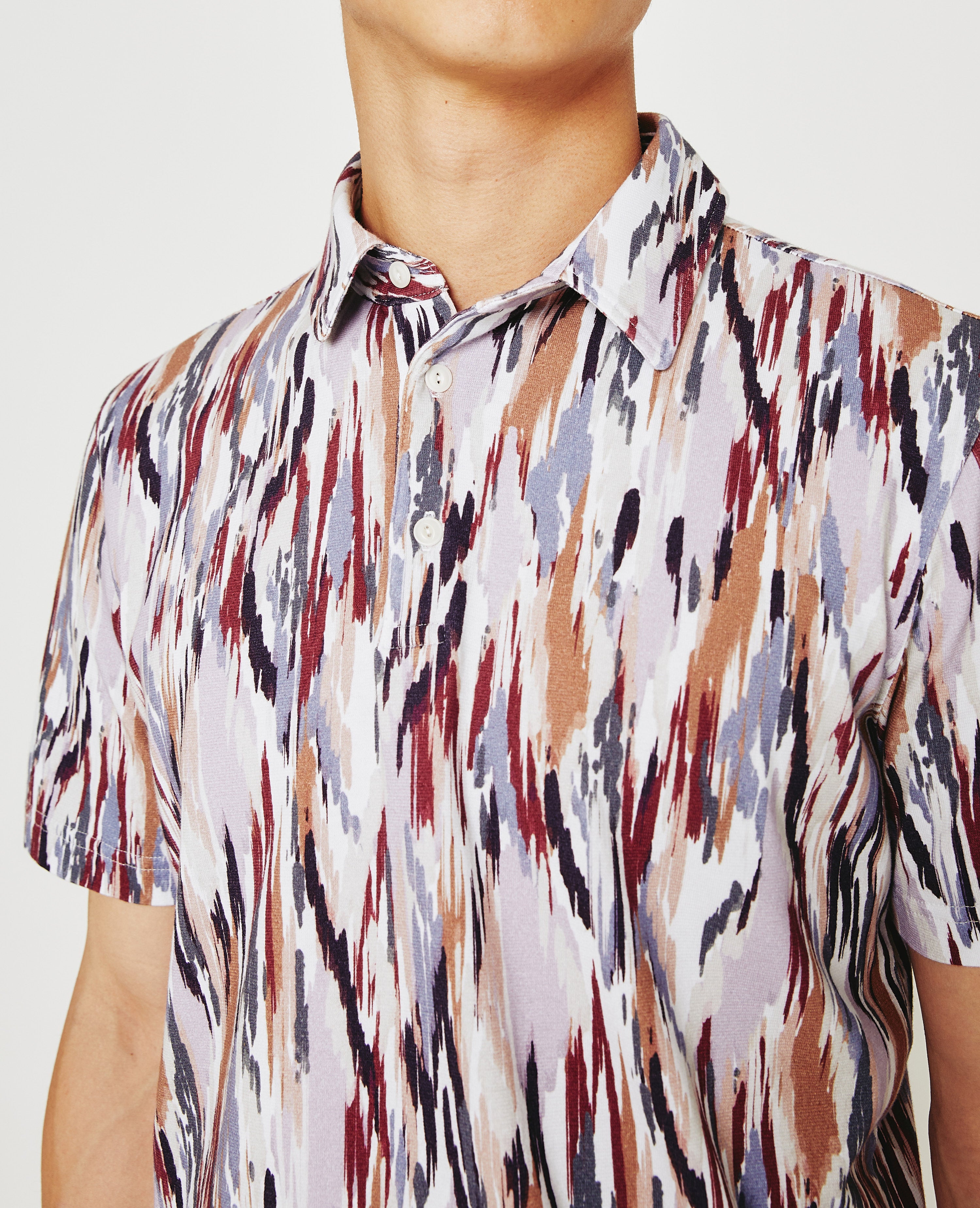 The Bryce Short Sleeve Polo is a wardrobe essential, but the painterly print ensures it's far from boring. The style is naturally soft and breathable in our Light Cotton Jersey, a luxe fabric knitted with S-twist and Z-twist yarns for durable construction that resists unnecessary twisting and torquing. A self-collar and button closures complete the look, so you wear it a little undone or more buttoned up. Embroidered AG logo at left sleeve.
