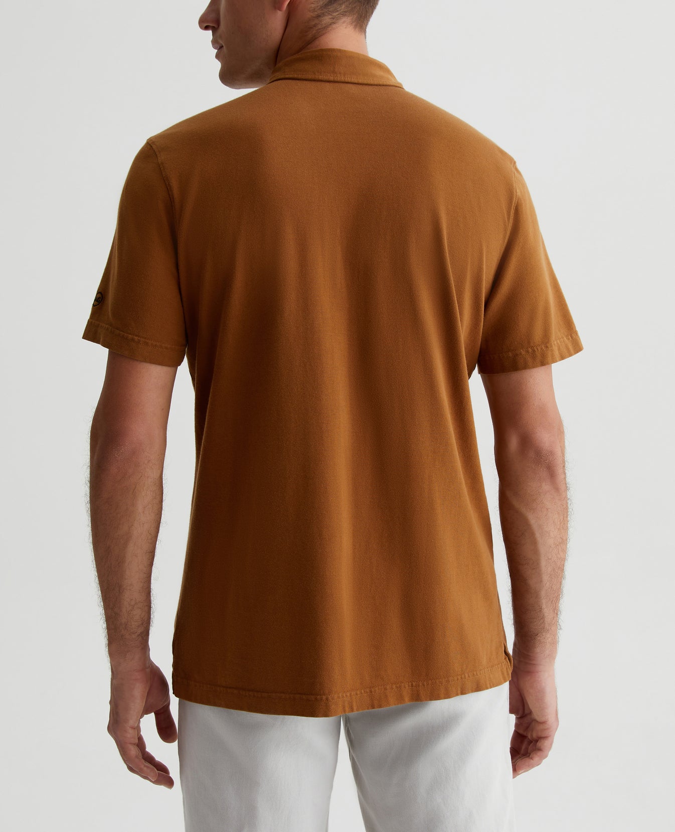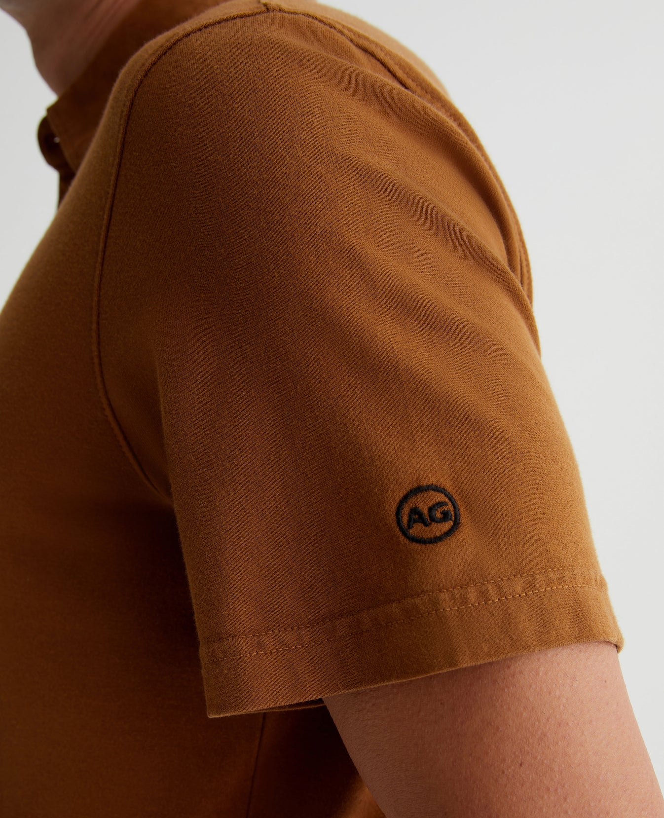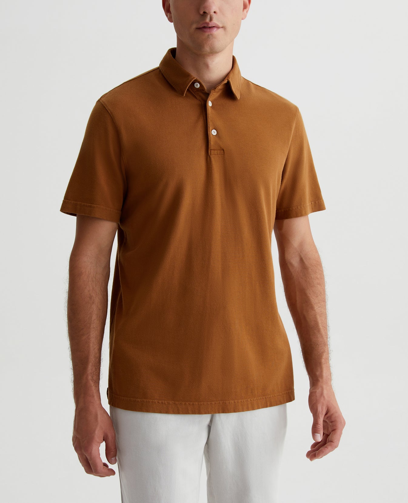 The Bryce Short Sleeve Polo is an effortless addition to your everyday style lineup in a tawny brown shade. The self-collar offers a modern take on the classic polo shirt. It's made from our Light Cotton Jersey knitted with both S-twist and Z-twist yarn to sustain longevity and stability, preventing unnecessary twisting and torquing. Detailed with the AG logo embroidered at one sleeve.