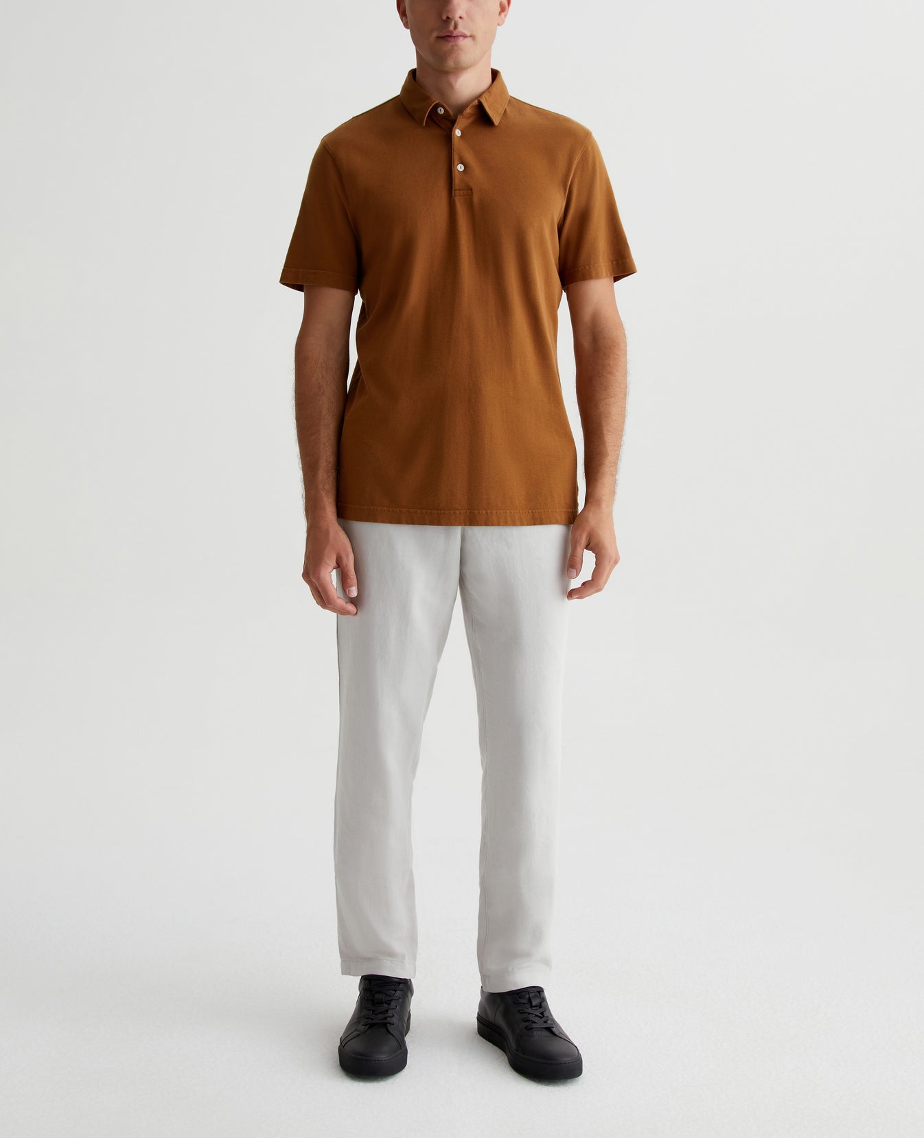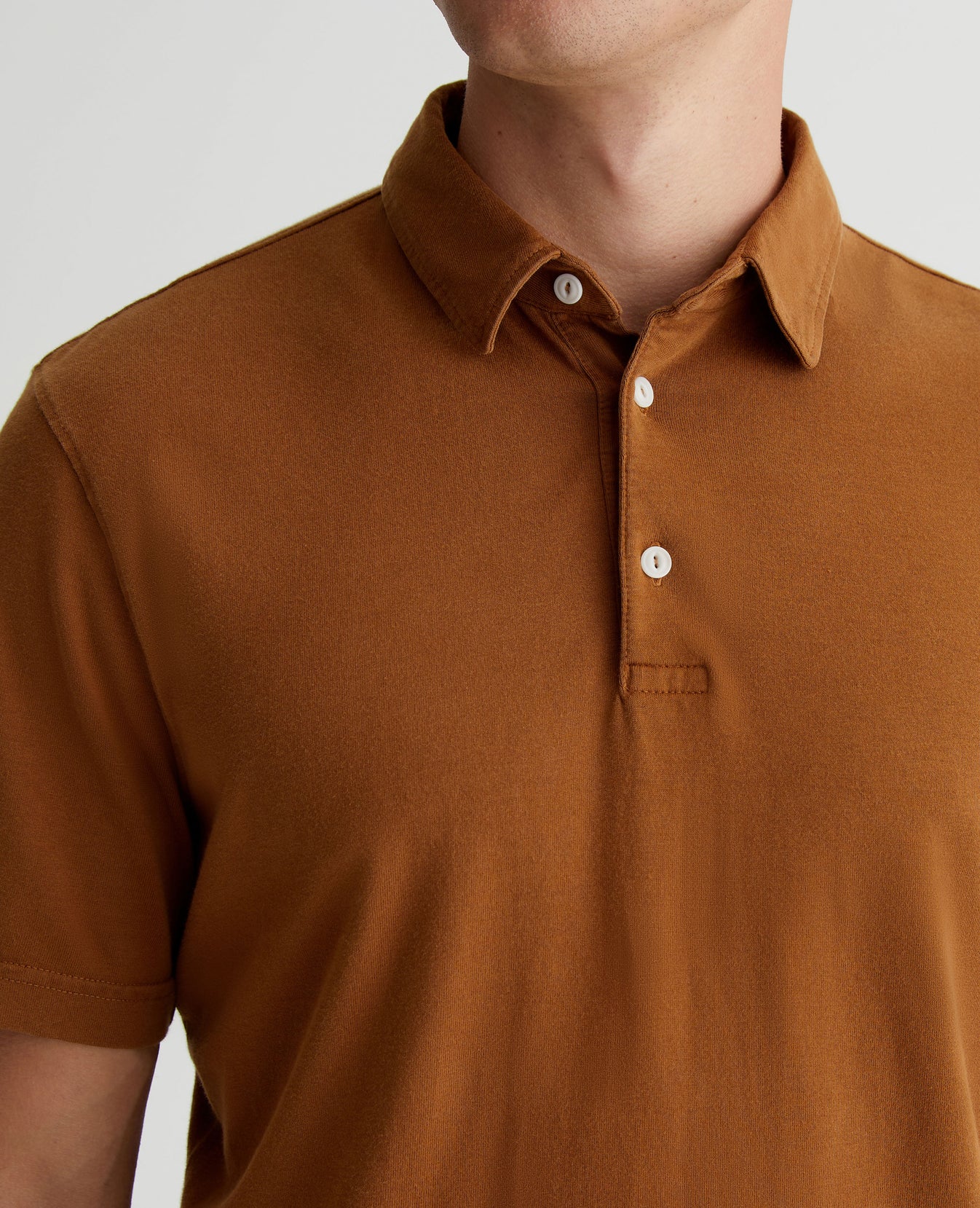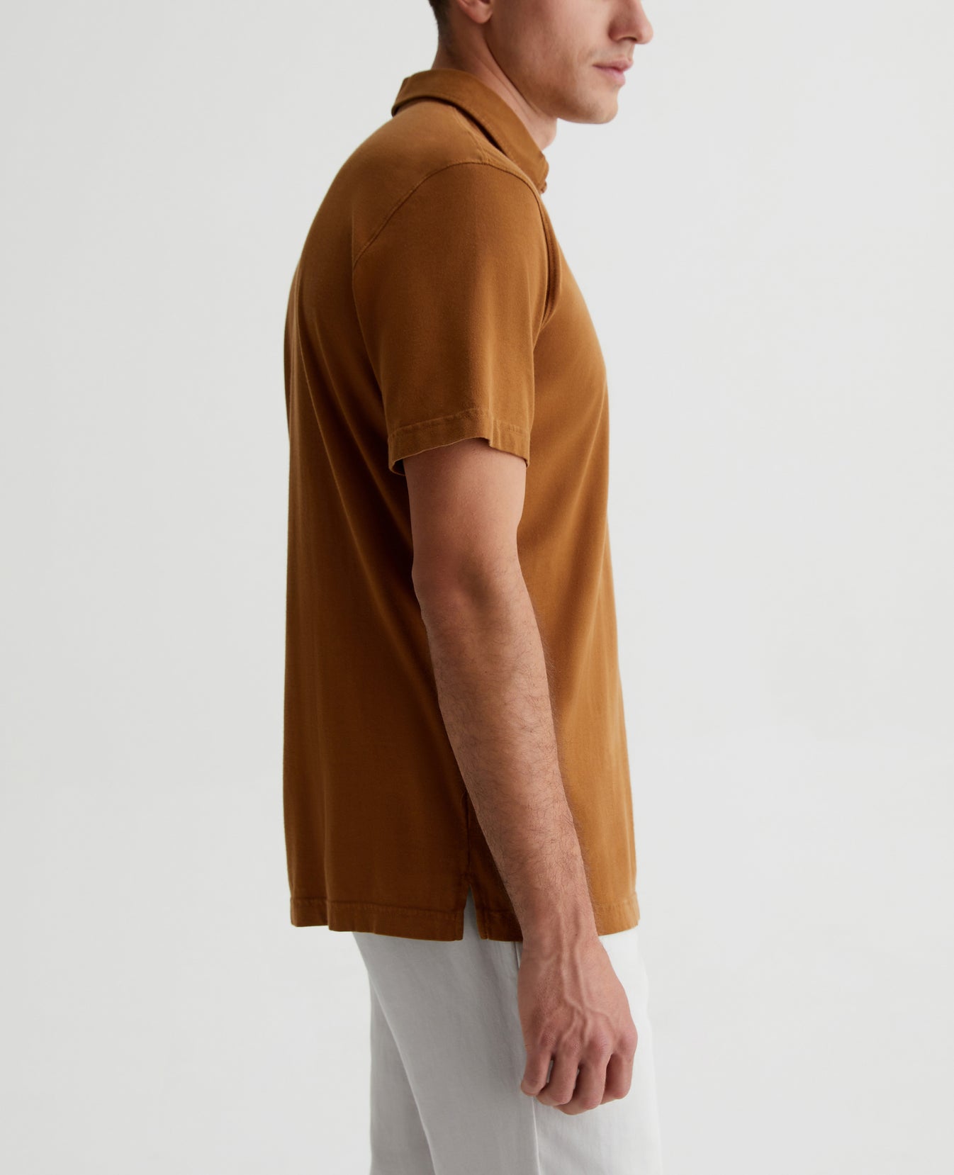 The Bryce Short Sleeve Polo is an effortless addition to your everyday style lineup in a tawny brown shade. The self-collar offers a modern take on the classic polo shirt. It's made from our Light Cotton Jersey knitted with both S-twist and Z-twist yarn to sustain longevity and stability, preventing unnecessary twisting and torquing. Detailed with the AG logo embroidered at one sleeve.