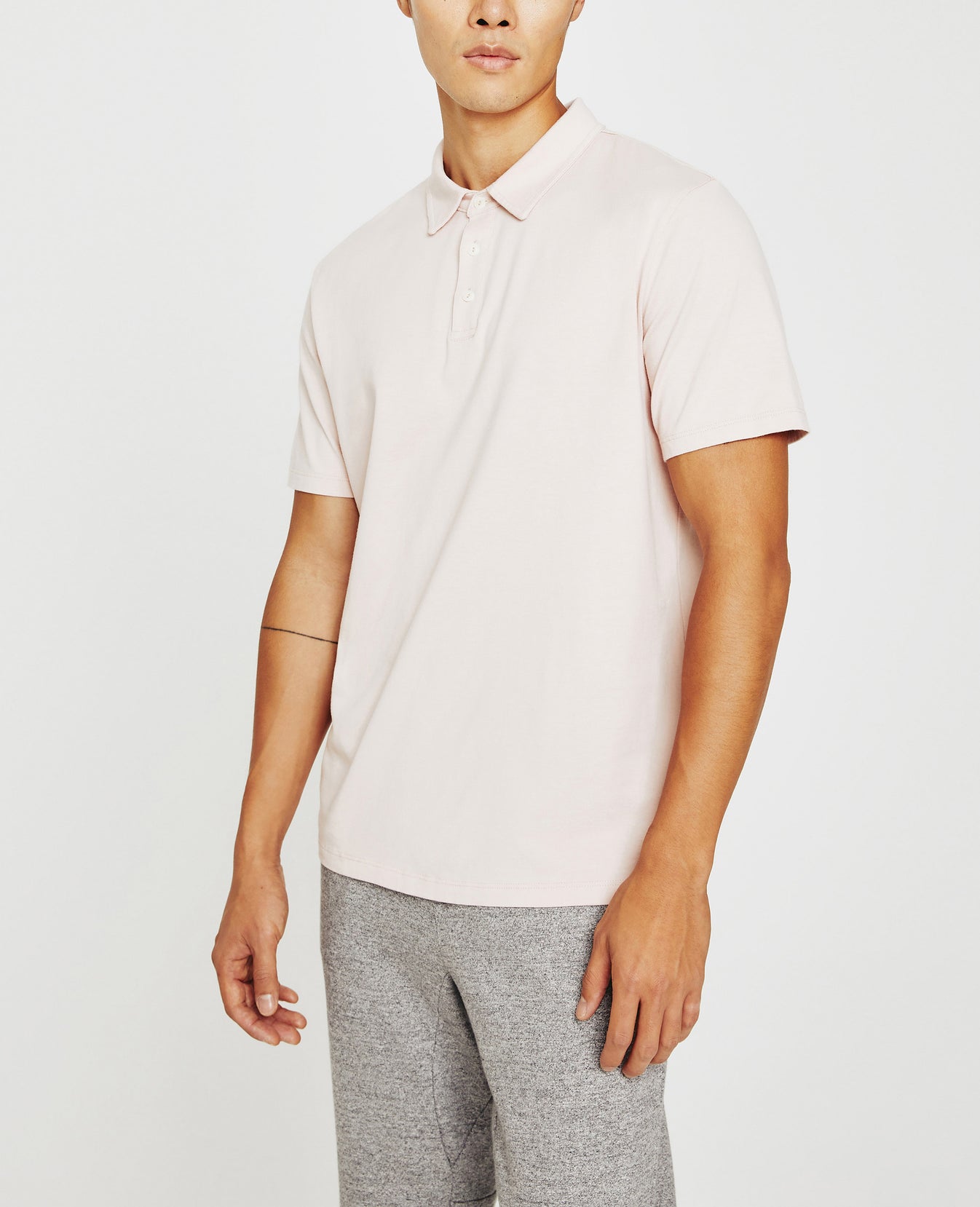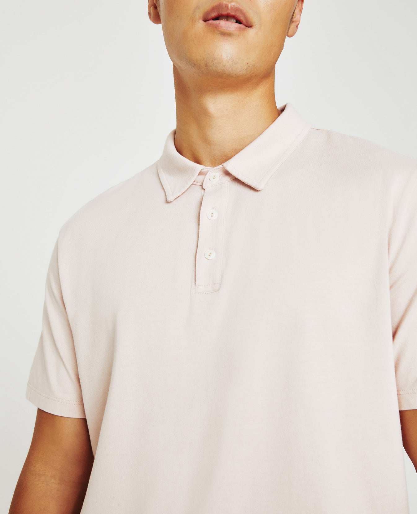 The Bryce Short Sleeve Polo in vintage pink is a unique addition to our Basic Essentials assortment, made with our ultra-luxe jersey fabrication. The self-collar adds a modern take on your classic polo shirt. Our Jersey Knit offers a luxurious comfort that is unrivaled—knitted with both S-twist and Z-twist yarn to sustain longevity and stability, preventing unnecessary twisting and torquing. During the production process, the S-twist yarn is spun counter-clockwise creating a right-handed twill. The Z-twist yarn works in opposition, spinning clockwise for a left-handed twill. This opposition—when working together—yields a softer, more durable fabrication and gives strength to the yarn making it more difficult to pull apart. Designed in 100% Cotton.