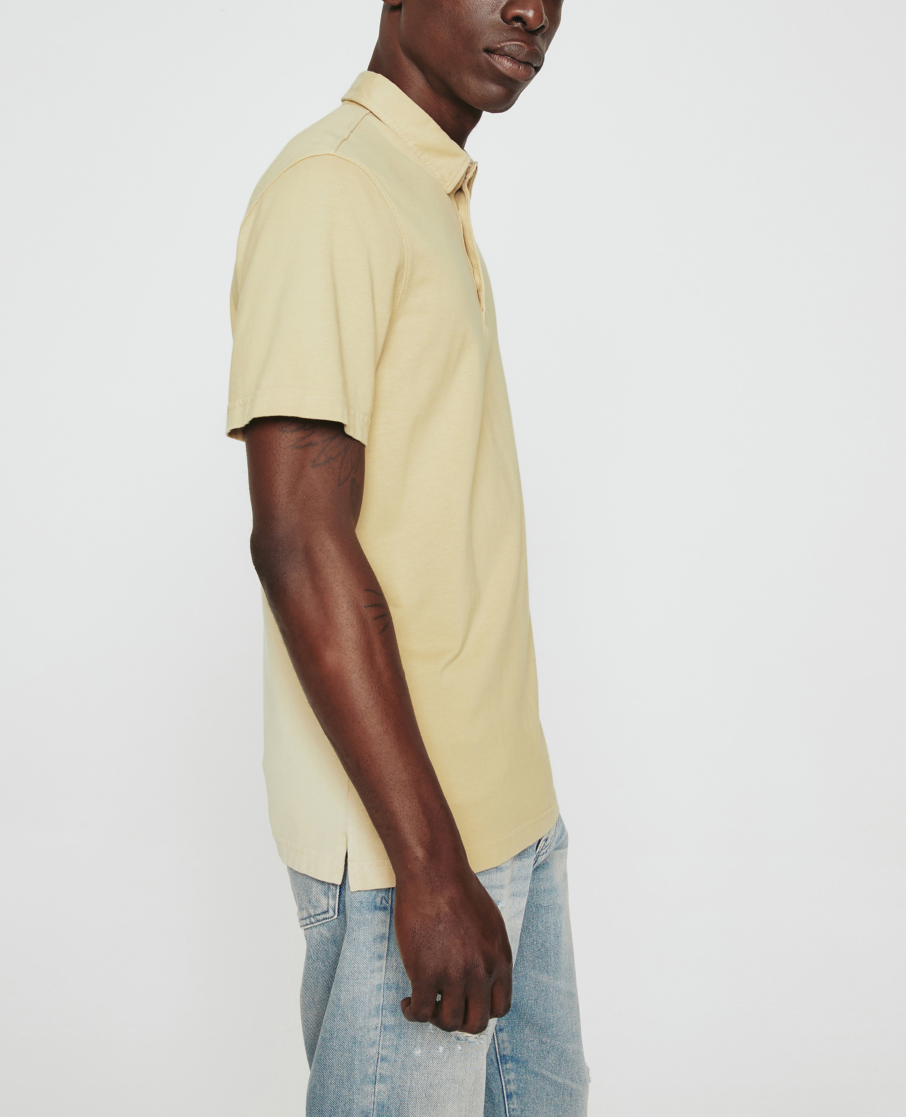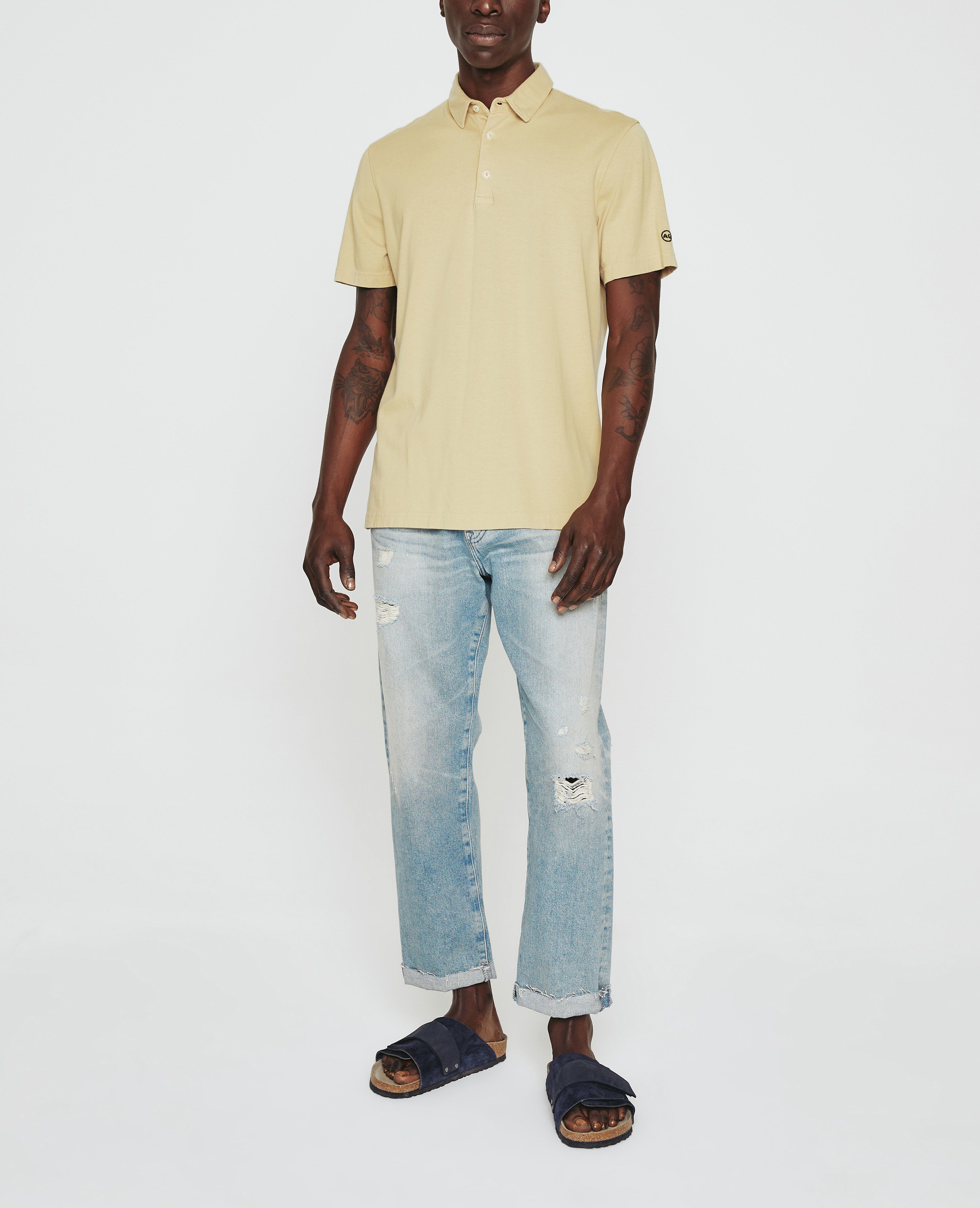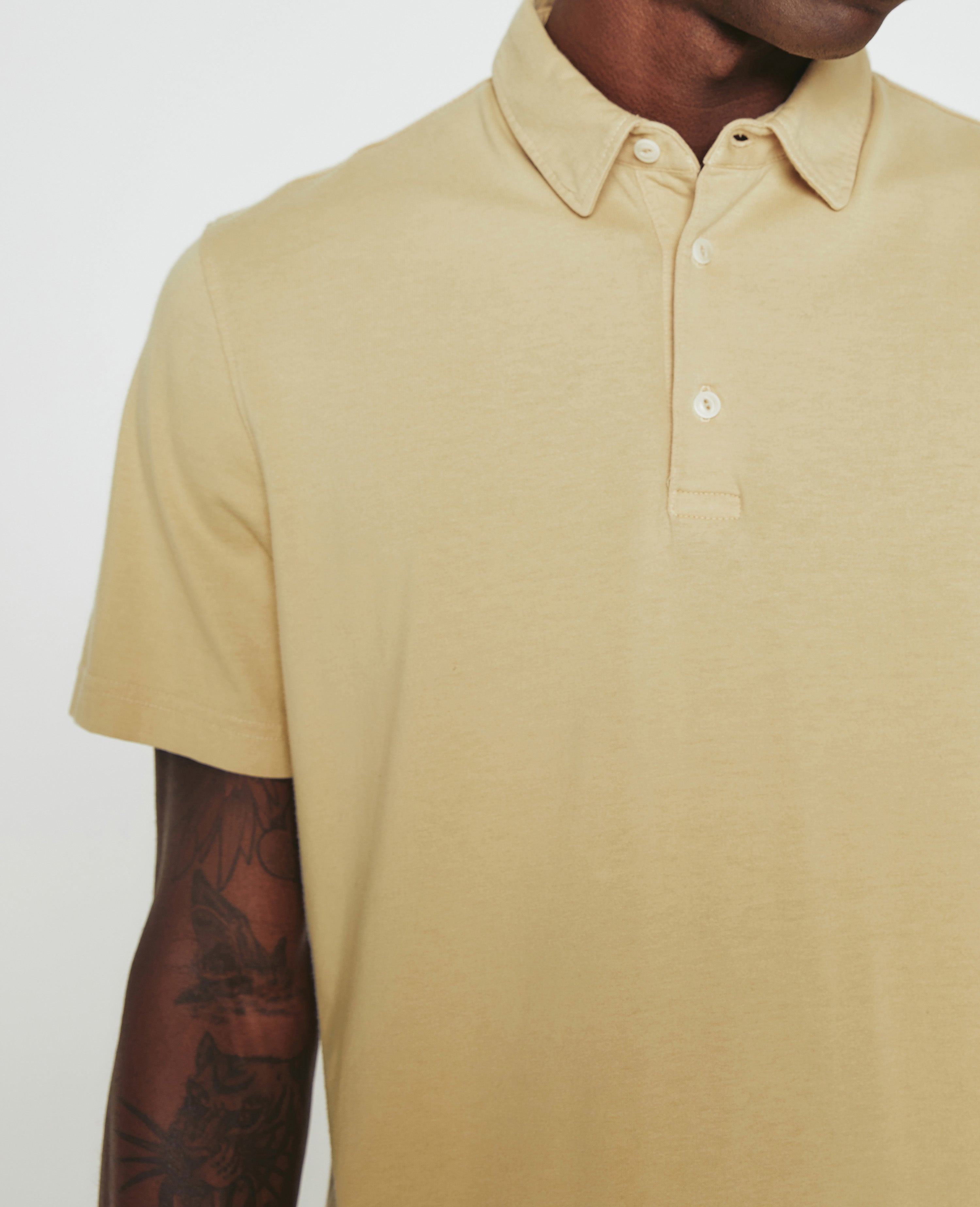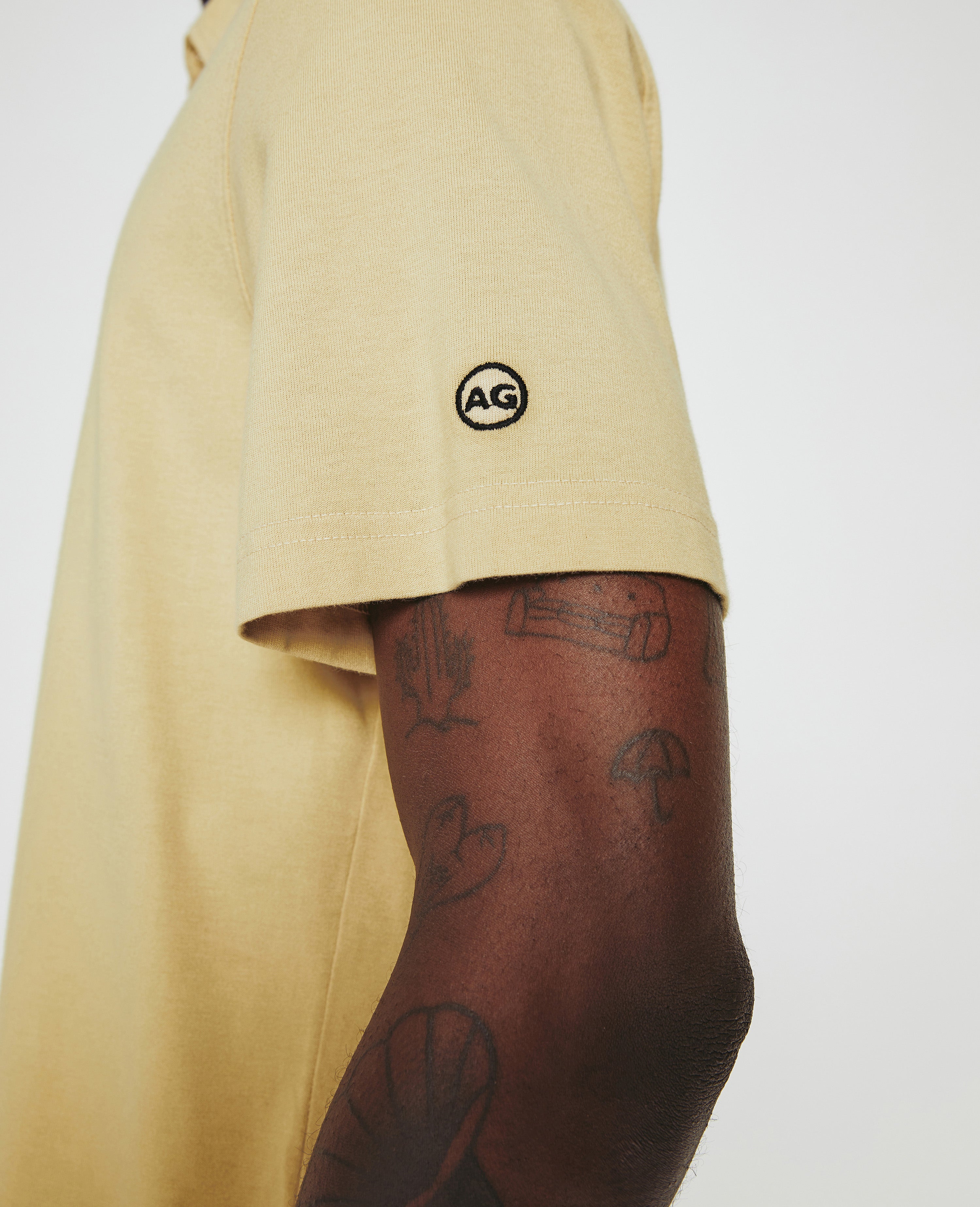 The Bryce Short Sleeve Polo is an effortless addition to your everyday style lineup in a warm khaki shade. The self-collar offers a modern take on the classic polo shirt. It's made from our Light Cotton Jersey knitted with both S-twist and Z-twist yarn to sustain longevity and stability, preventing unnecessary twisting and torquing. Detailed with the AG logo embroidered at one sleeve.