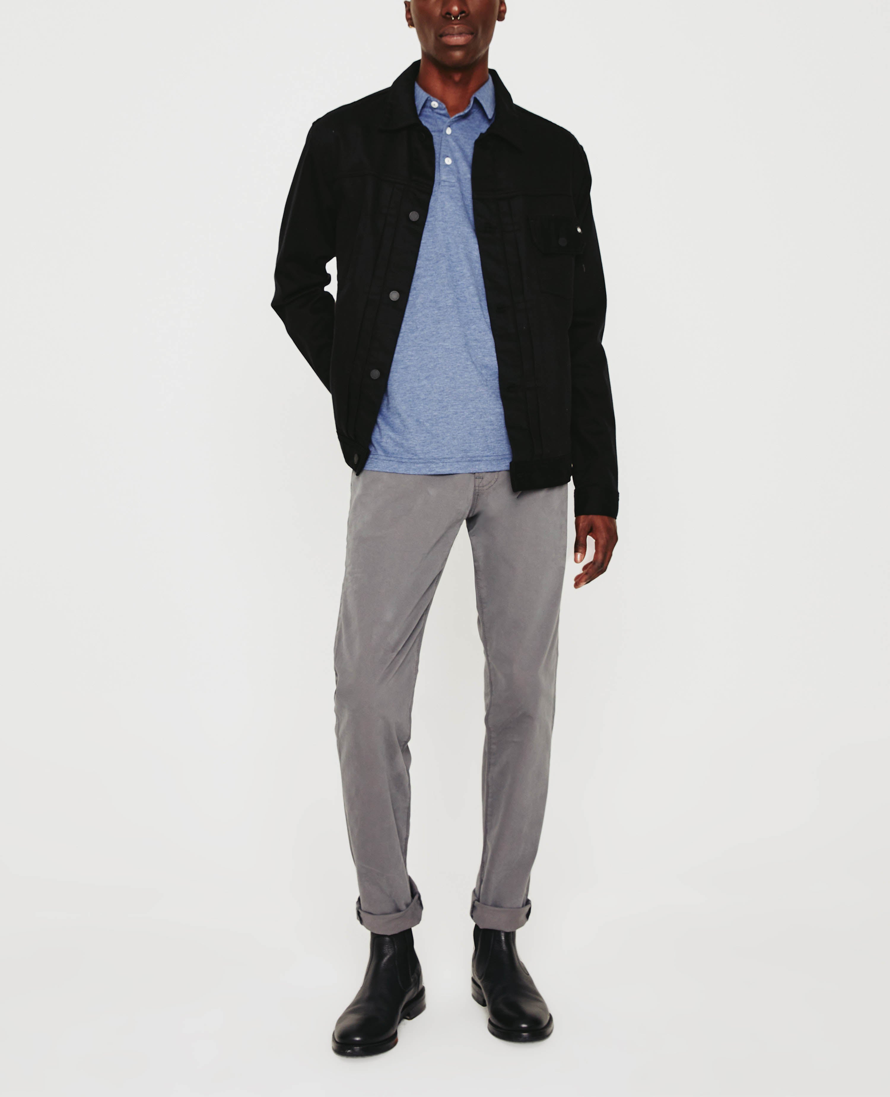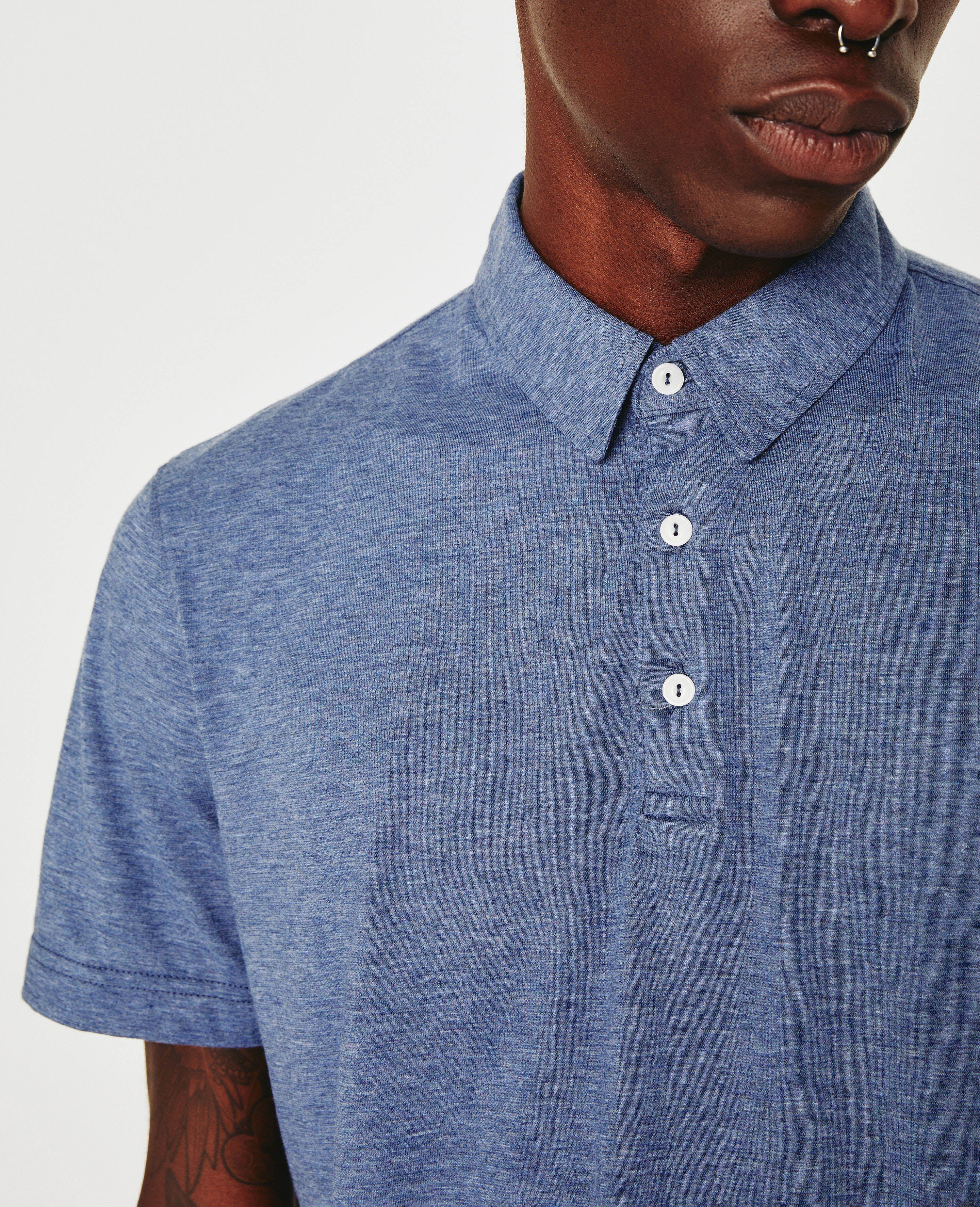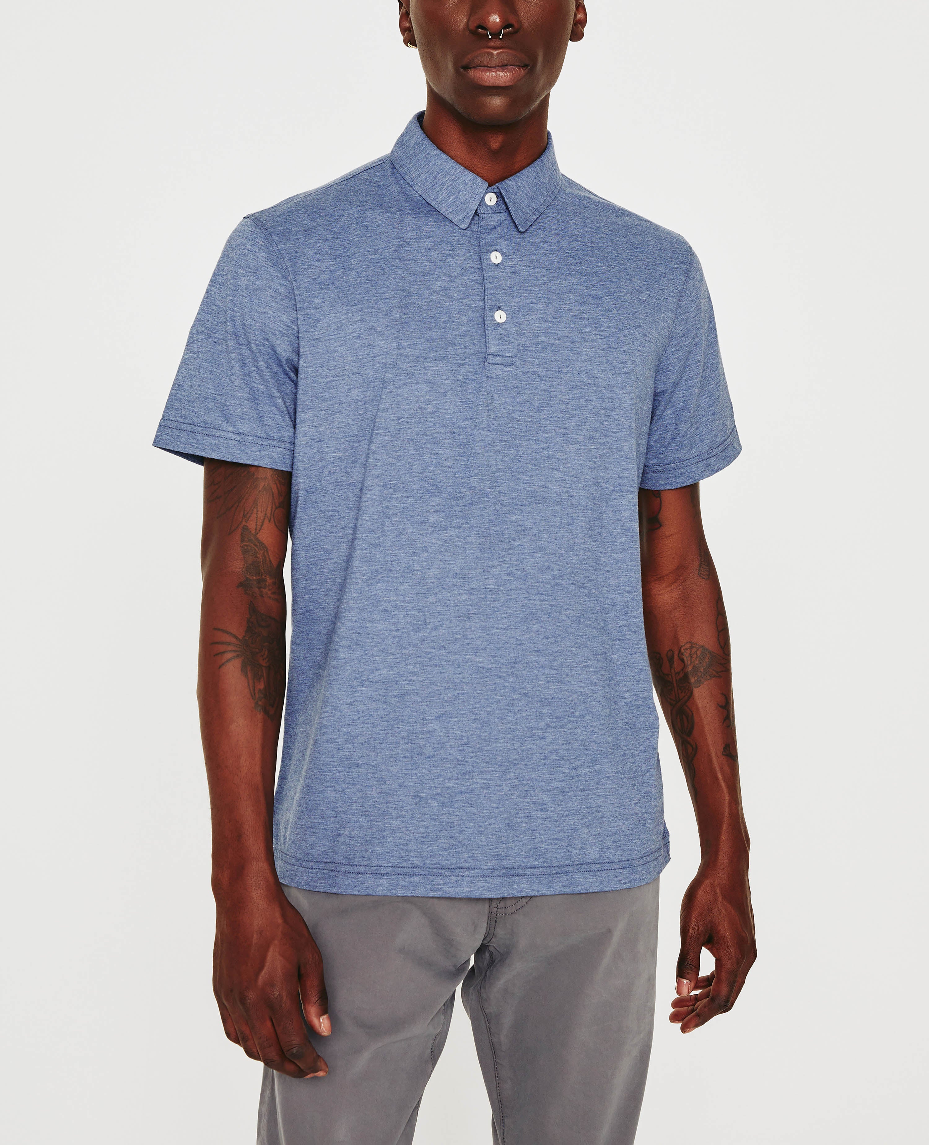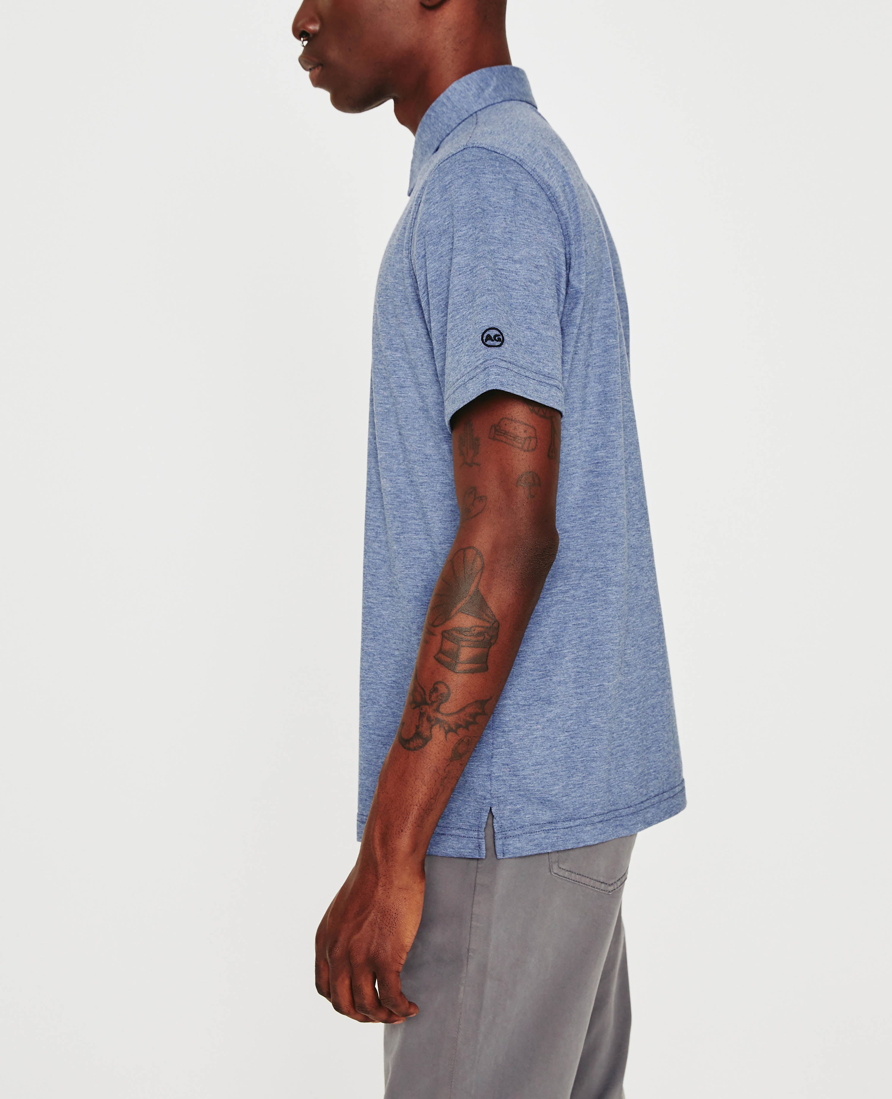 The Bryce Short Sleeve Polo is cut from cotton-blend heather jersey in navy. The short-sleeve style has a self-collar for a modern take on your classic polo shirt and side slits to ease the fit. Detailed with the AG logo embroidered at one sleeve.