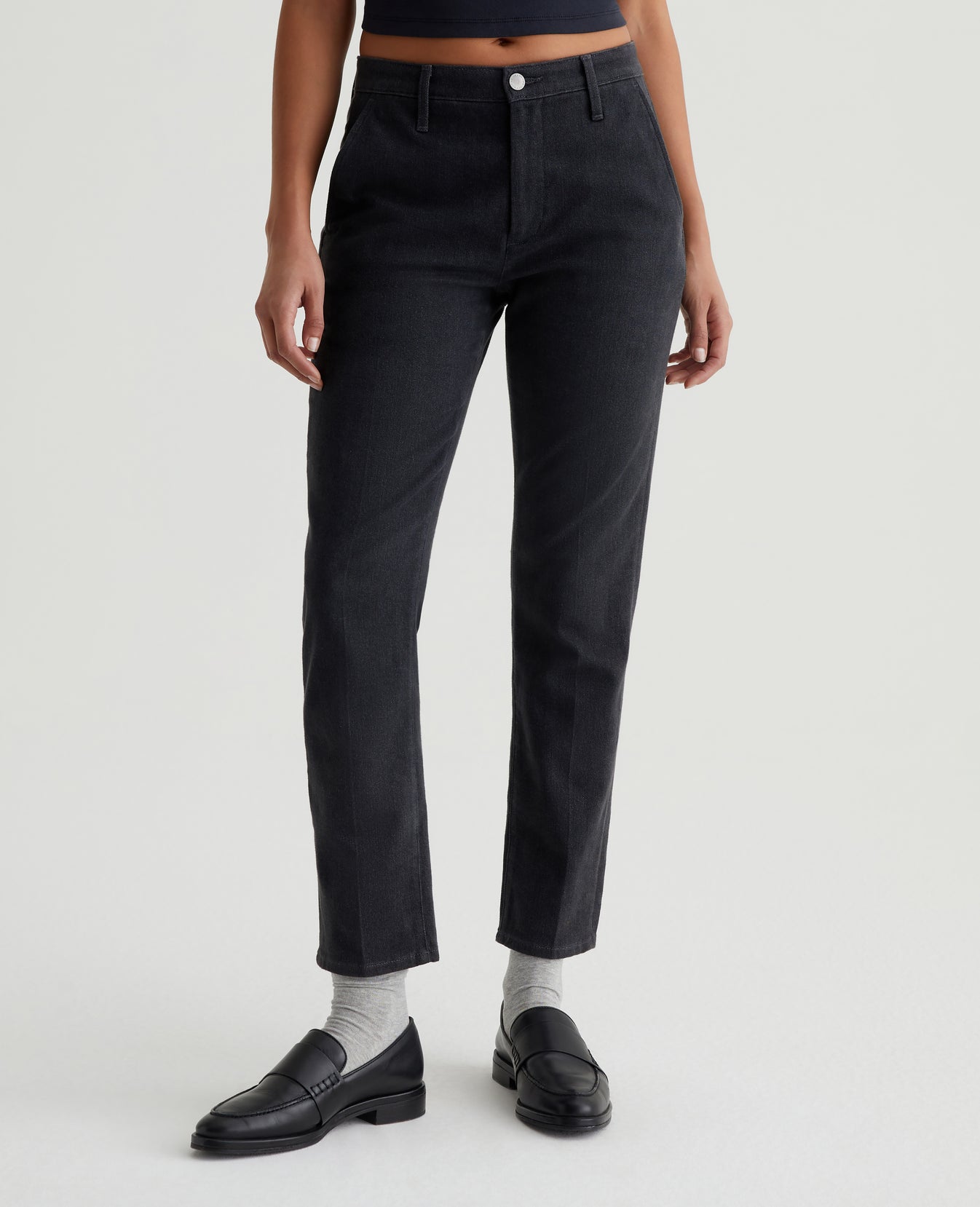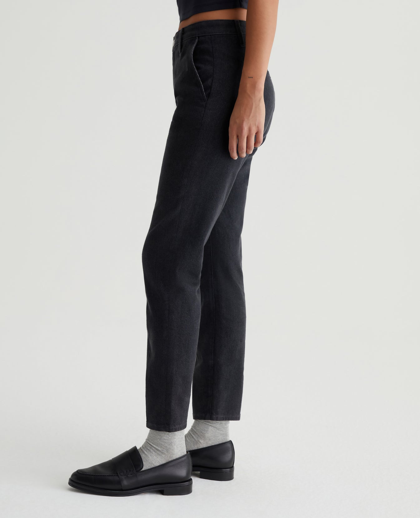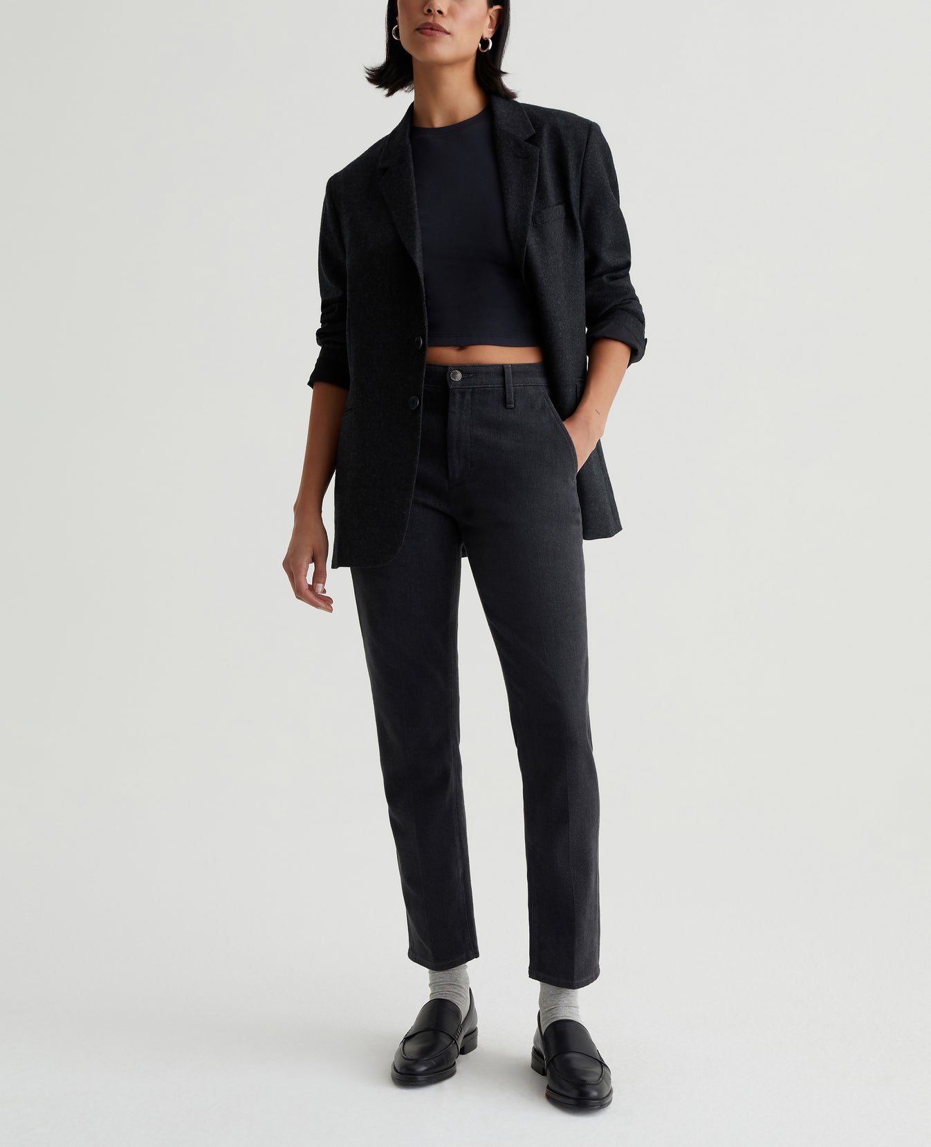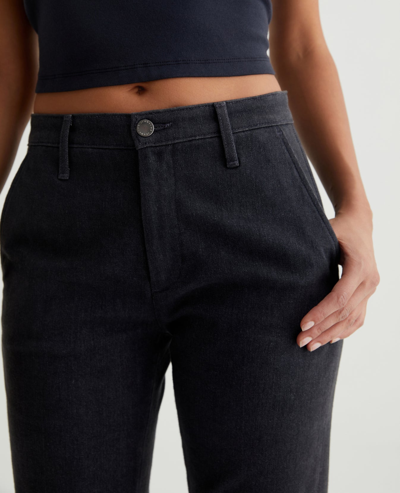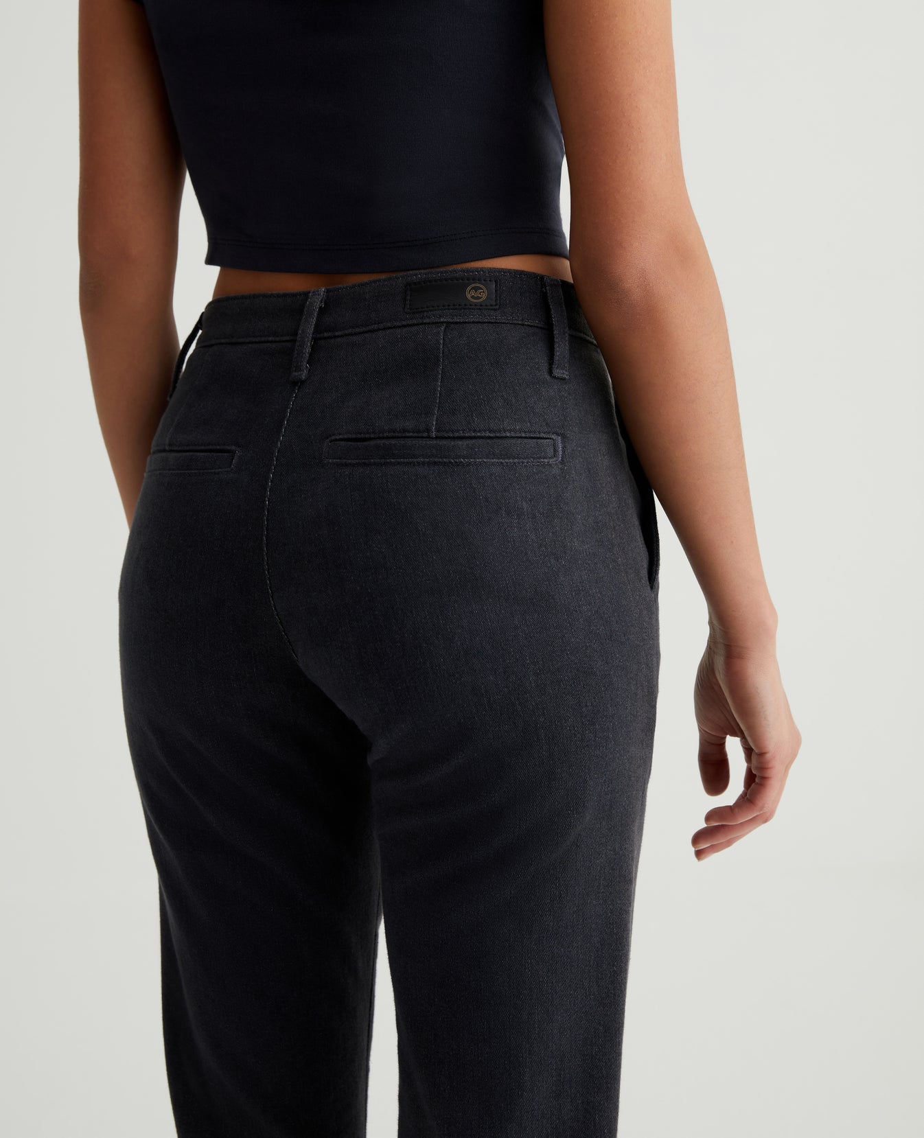The Caden tailored trouser pant for women features a relaxed fit through the hip, slight tapering at the thigh, and a cropped ankle length. It's crafted from 9.1 oz. Hypersoft Black Denim and washed to a dark grey shade. Part of our AG Cloud Soft Denim™ collection, the fabric's special construction allows the yarns to gently relax and untwist for a supple feel that gets softer with every wear. There's stretch woven in for enhanced comfort.