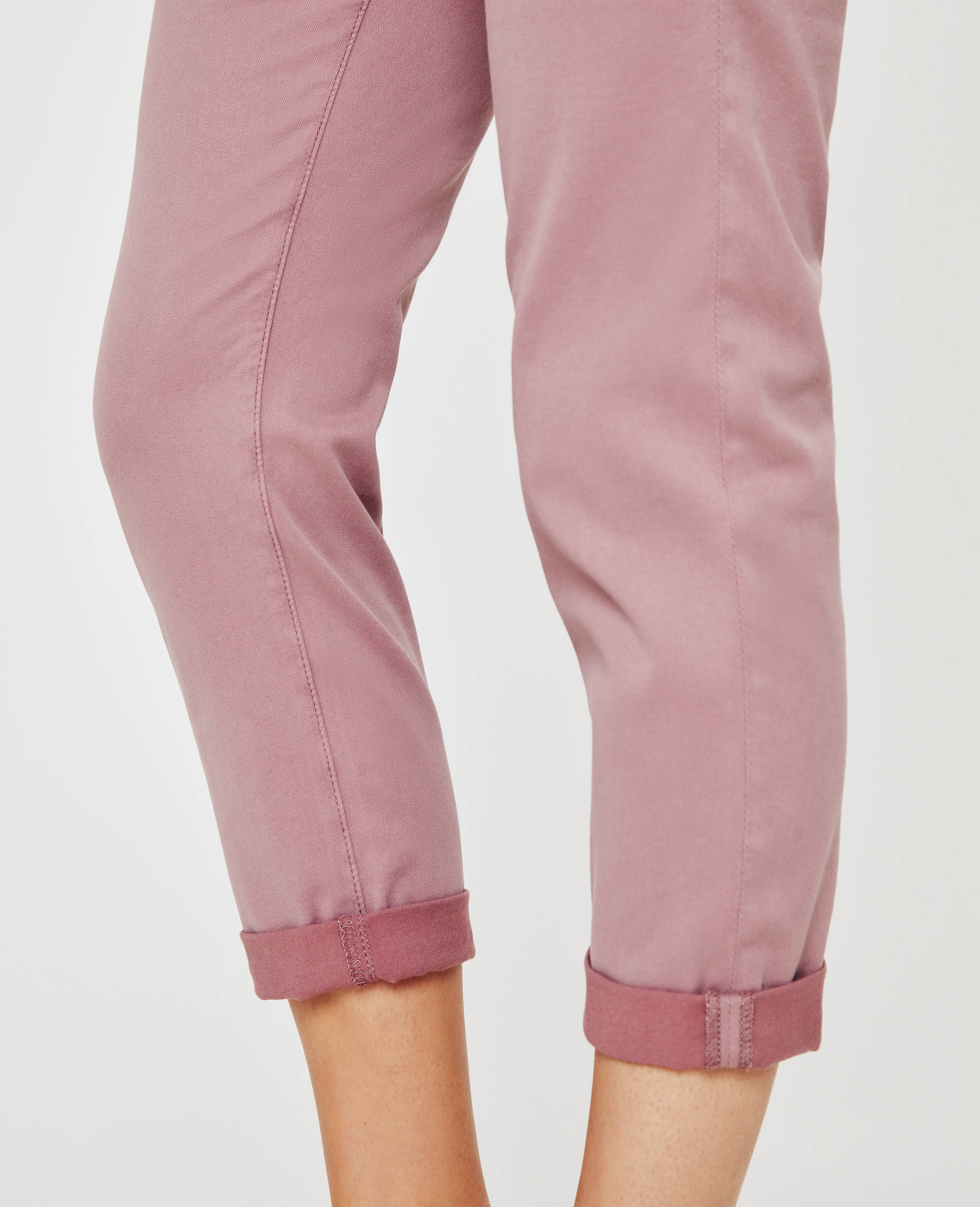 Caden is a tailored trouser for women featuring a lavender hue on 7.5 oz. Sumptuous Stretch Broken Twill. The trouser features a relaxed fit through the hip, slight tapering at the thigh, and a cropped ankle. This women’s trouser is designed in a luxurious lightweight fabric with comfortable super stretch wear.