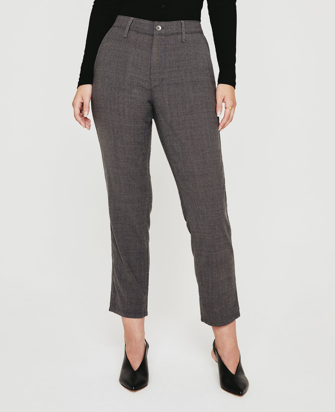 Our Caden mid-rise trouser pant features a slightly relaxed fit with tapered legs and a cropped length. This pair comes in our new machine-washable Italian stretch twill made from virgin wool and 360° flex fibers, offering enhanced softness and superior mobility. Slant front pockets and welt back pockets complete the tailored design.