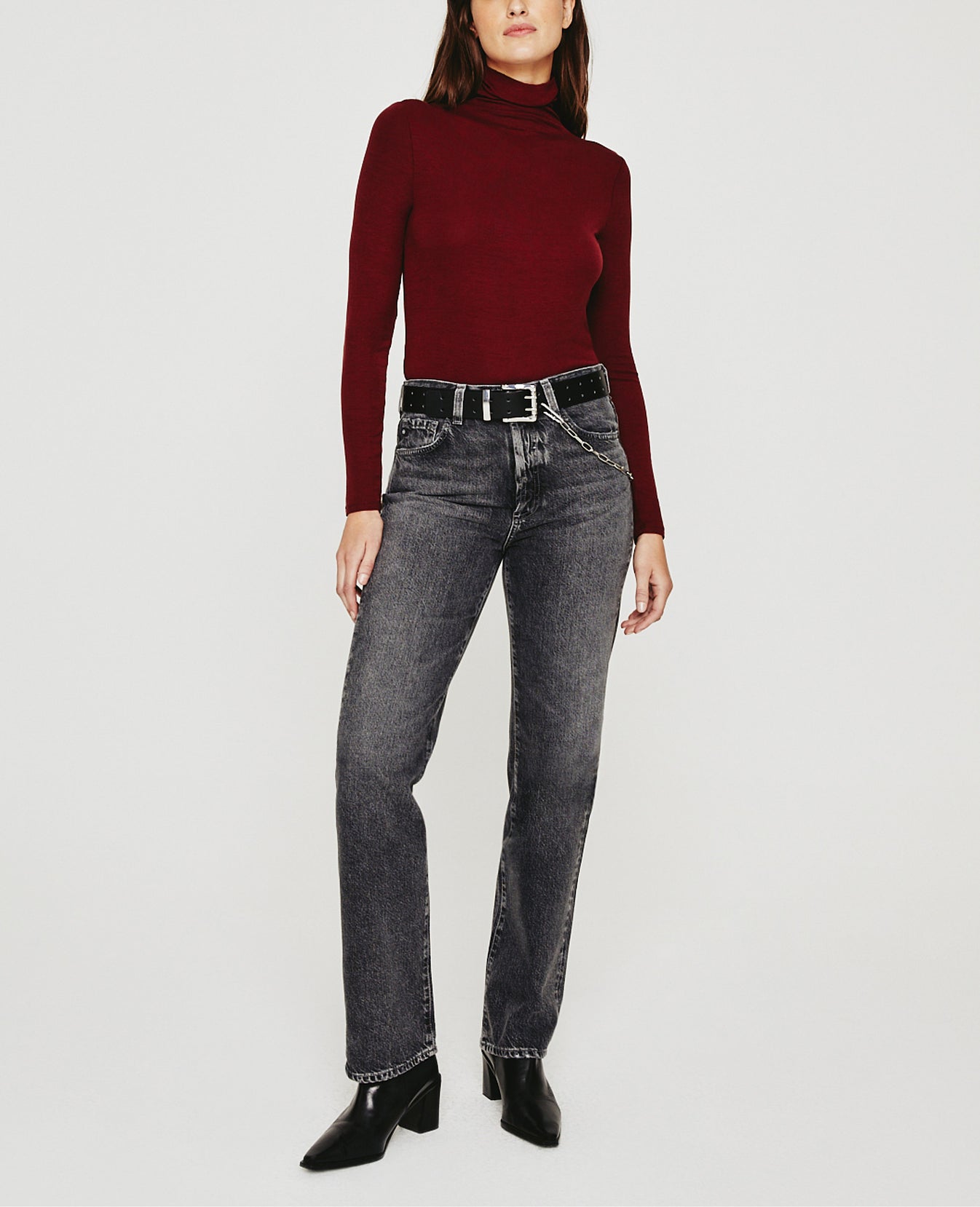 Updated in a rich autumnal red, the Chels Turtleneck for women features a formfitting silhouette with a fold-over neck and extended sleeves finished by raw edges. This women’s top is designed in 2 x 1 Lyocell Rib fabric, offering comfort and luxury in a wider rib construction.