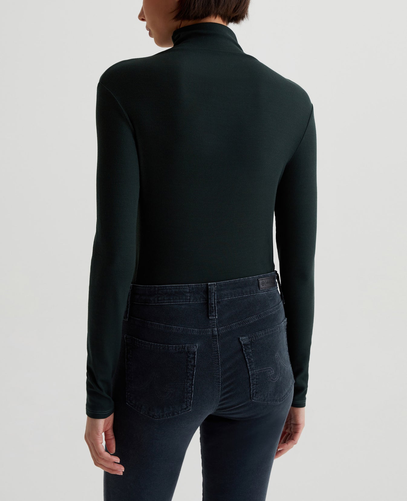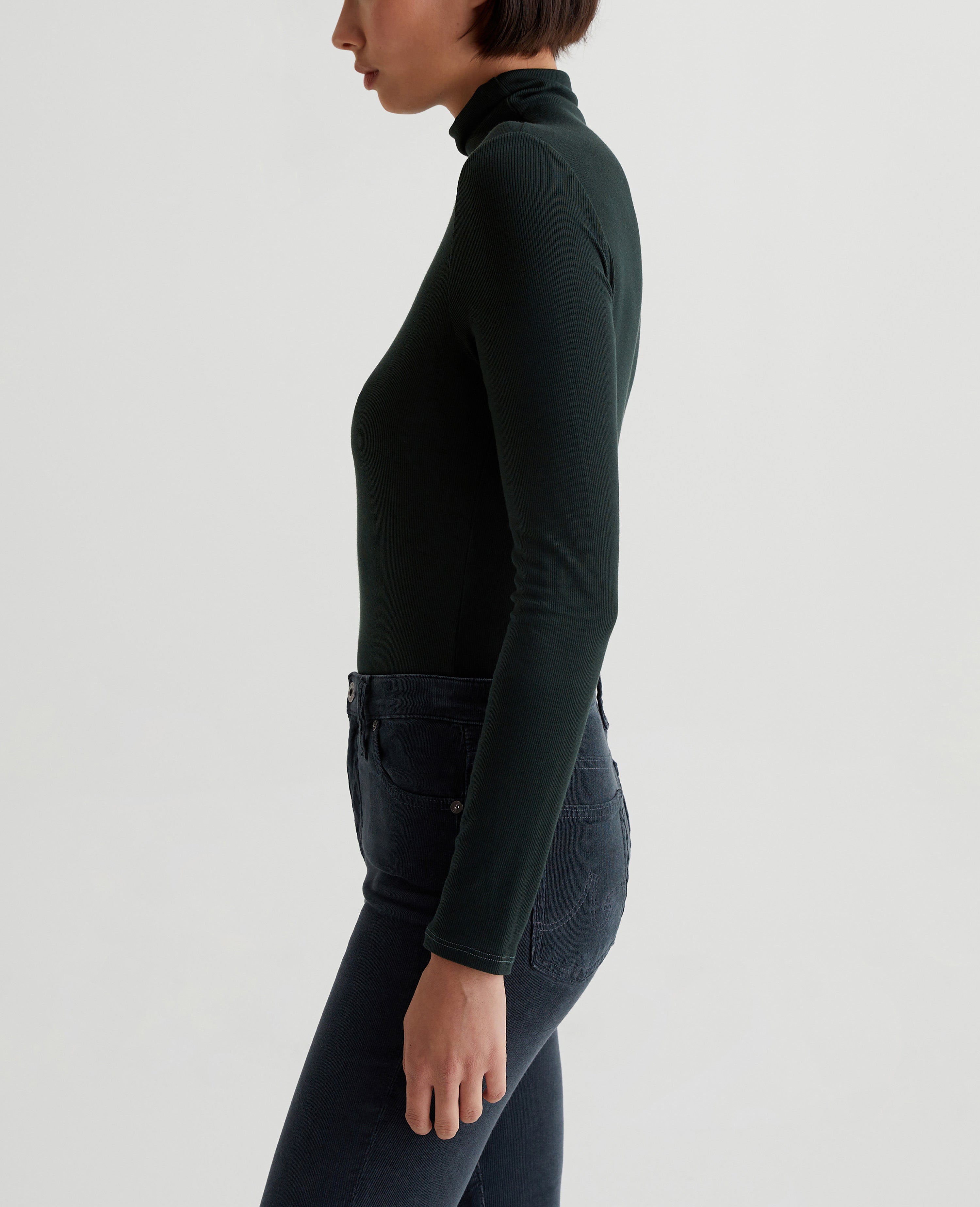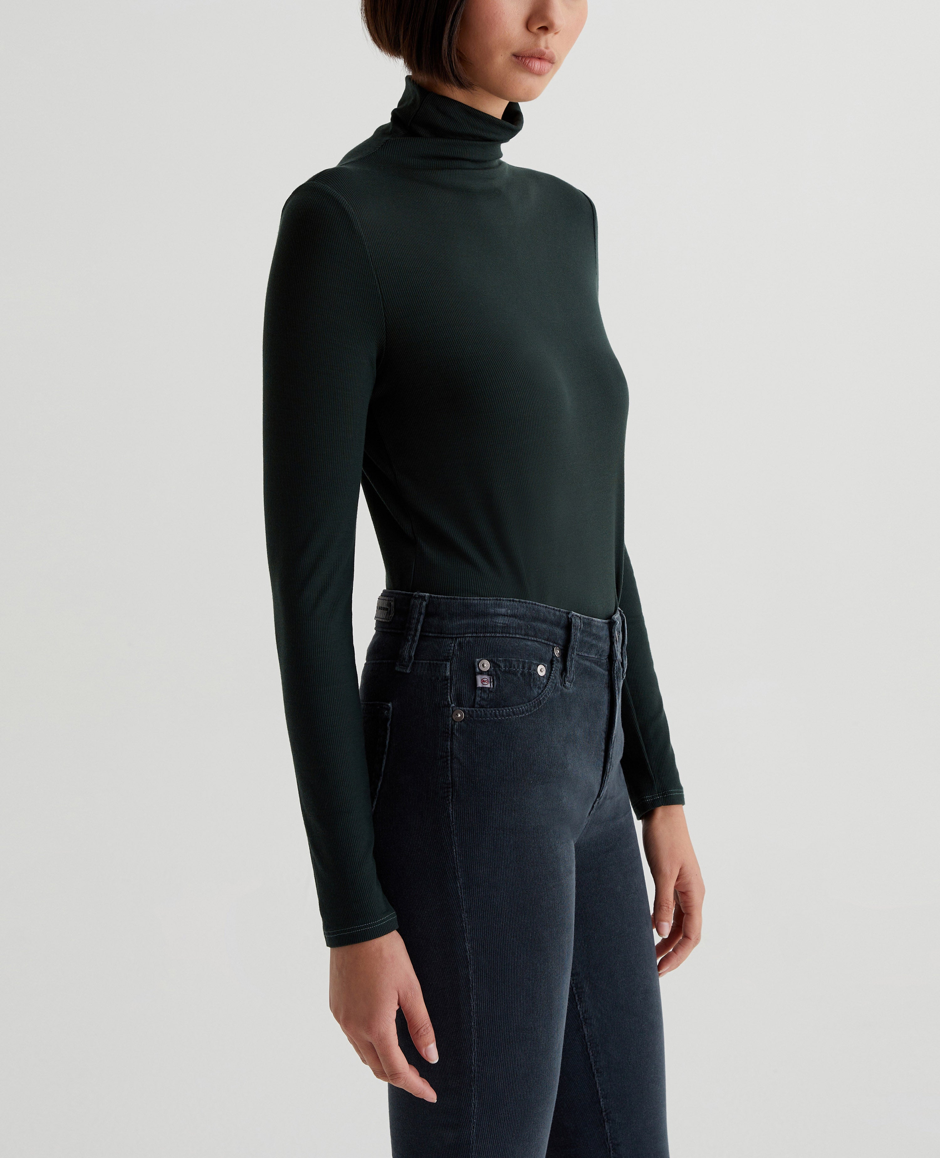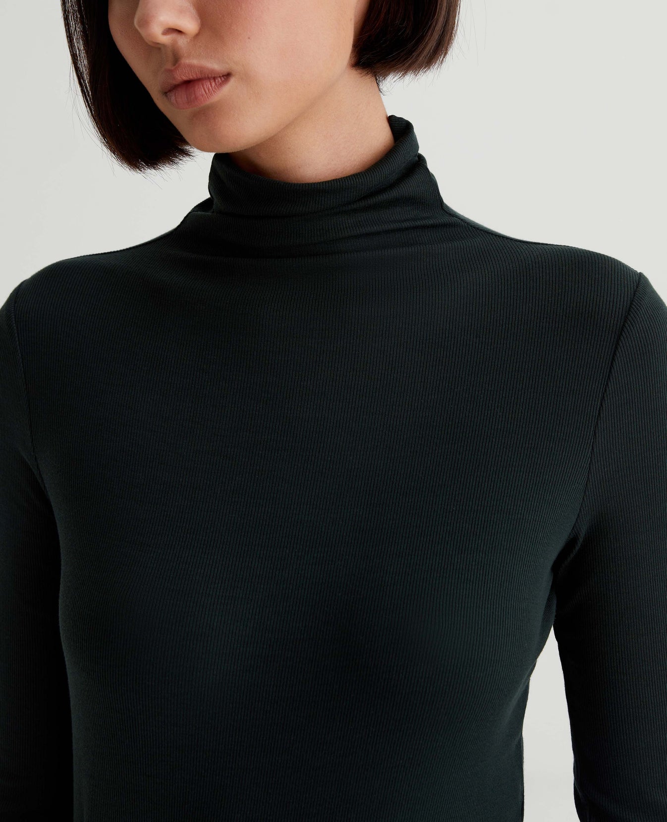 The Chels Turtleneck has a slim, formfitting silhouette with a high neckline and long sleeves. Featuring a dark green shade, this women’s top is designed in a 2x1 Lyocell Rib knit with a luxuriously comfortable feel that's soft against the skin.