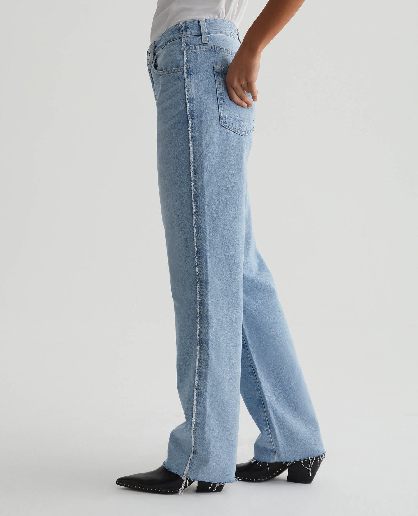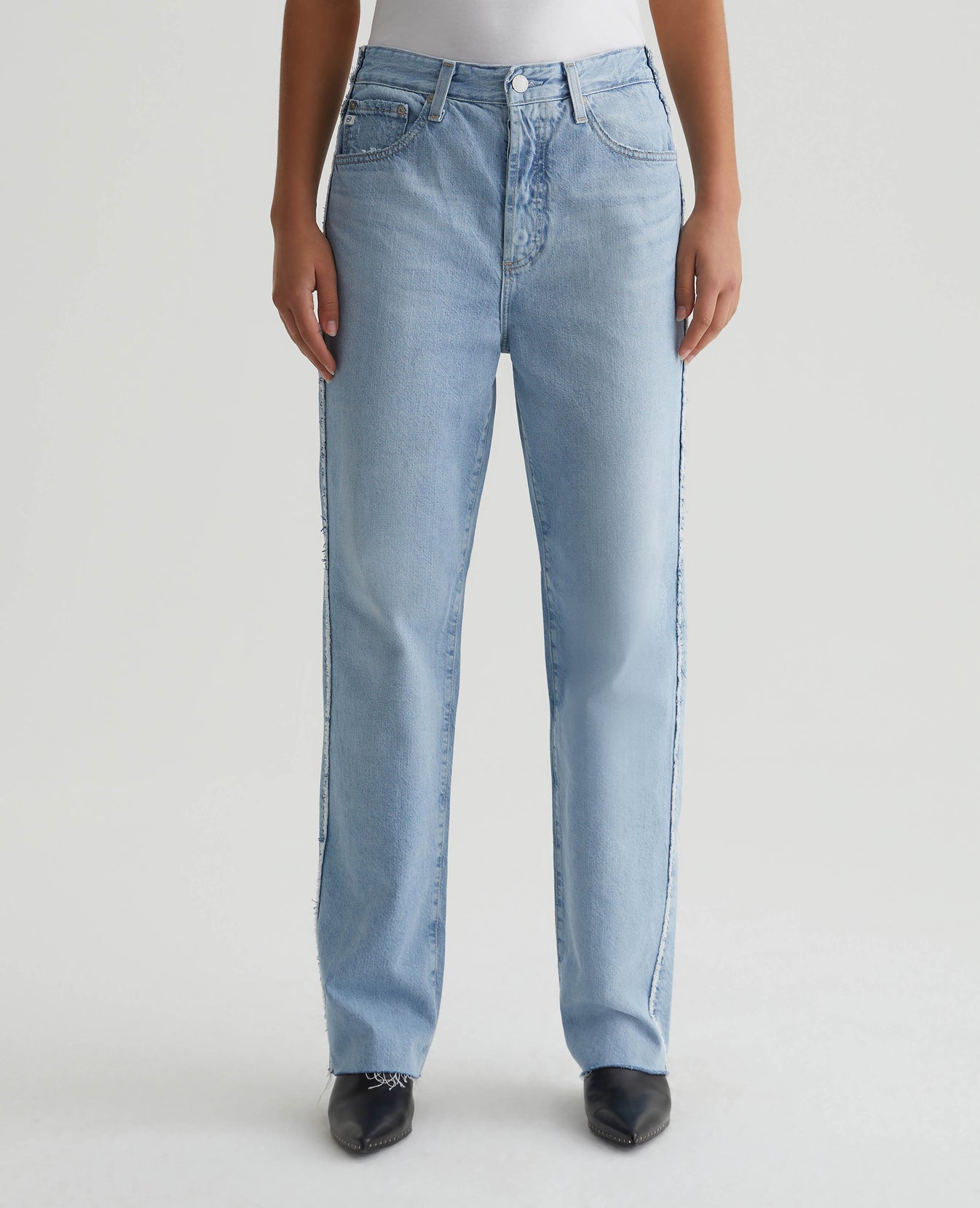 The Clove Rework jean features our favorite relaxed vintage straight fit updated with DIY-inspired raw-edged side seams and double-needle topstitching. Crafted from 11.75 oz. Legion Denim in a light wash, the pair features a '90s-inspired silhouette with an ultra-high rise, concealed button fly, and cut hems. Hits of destruction add lived-in character.