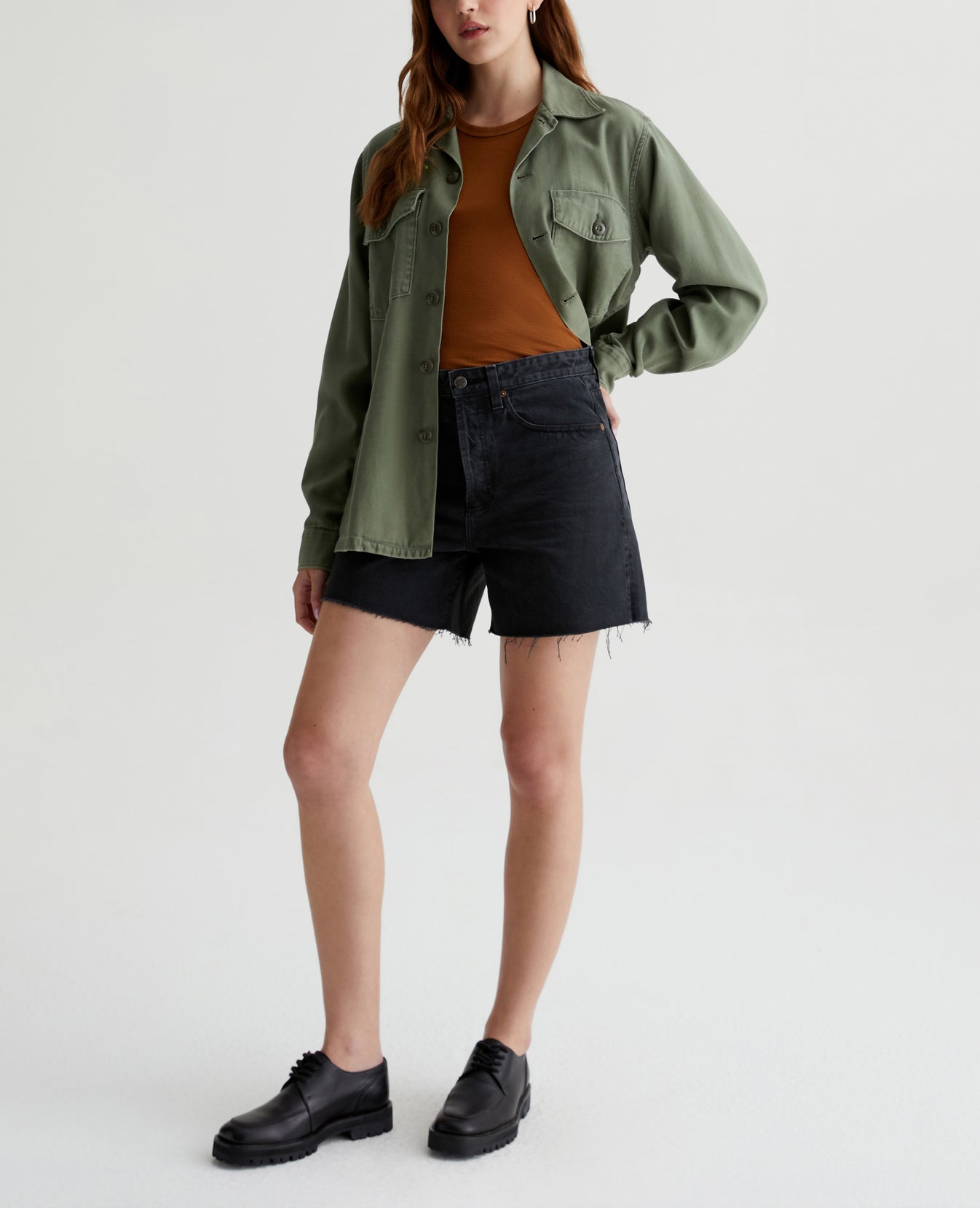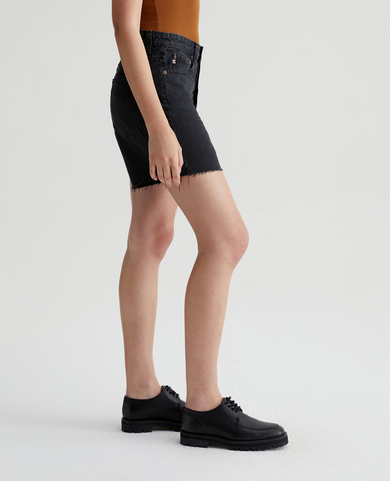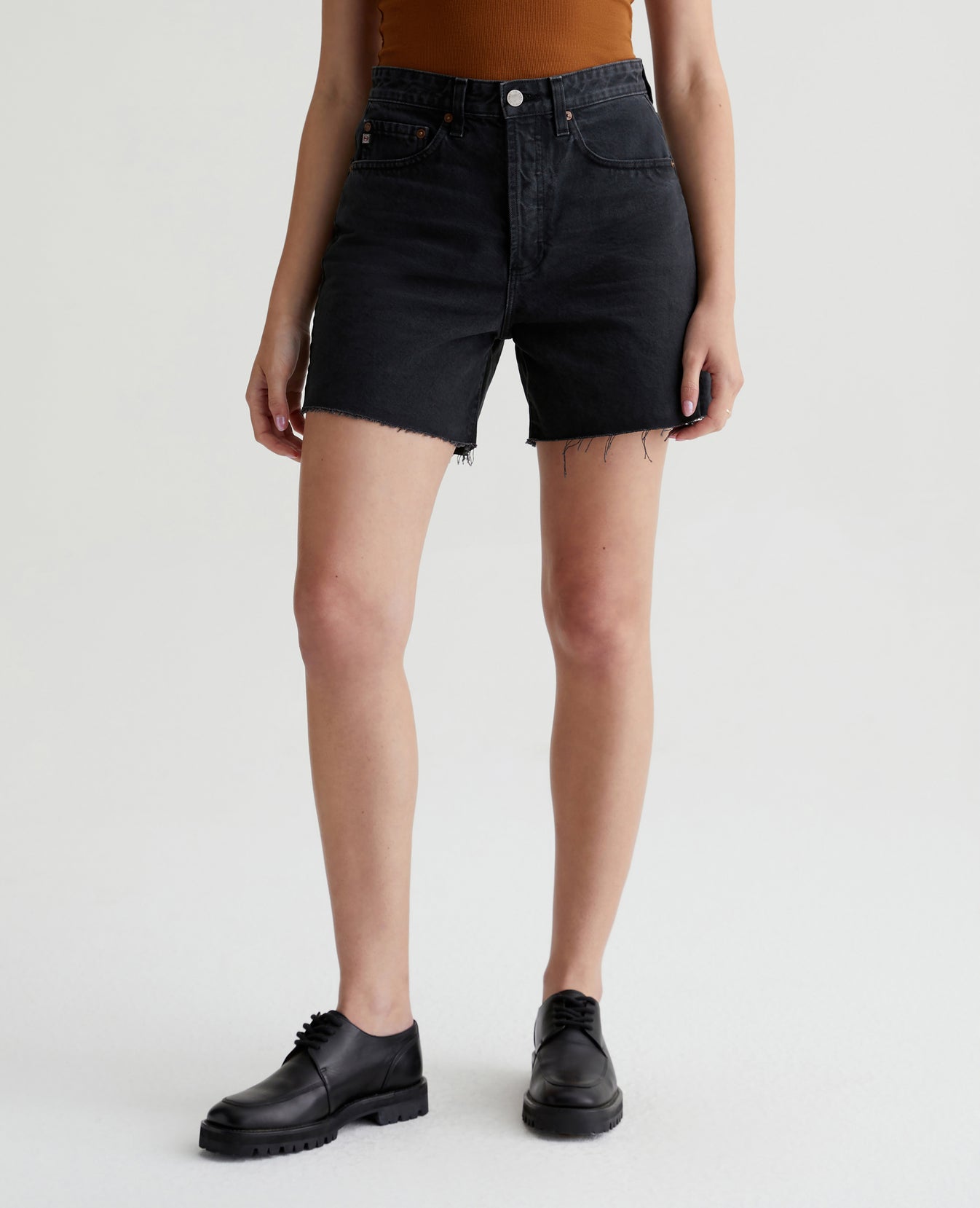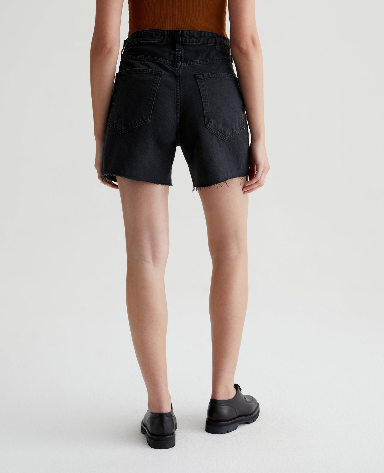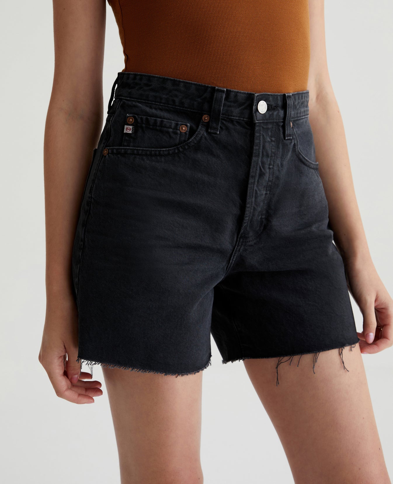 Our Clove Short takes the denim cut-off higher. This vintage-inspired pair features a high-rise baggy fit with a concealed button fly and raw hems that skim the mid-thigh. The pair here is crafted from 100% cotton Natural Bull Denim in black with subtle AG-ed™ fading to emulate 7 years of wear. Mixed-metal hardware finishes the classic five-pocket design.