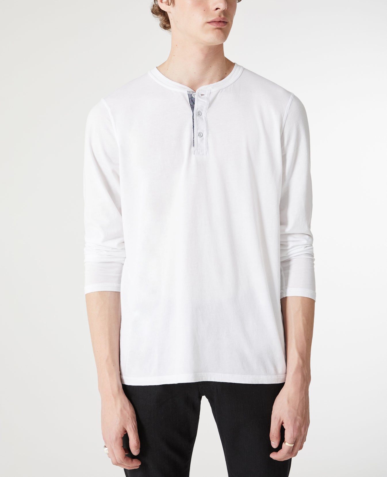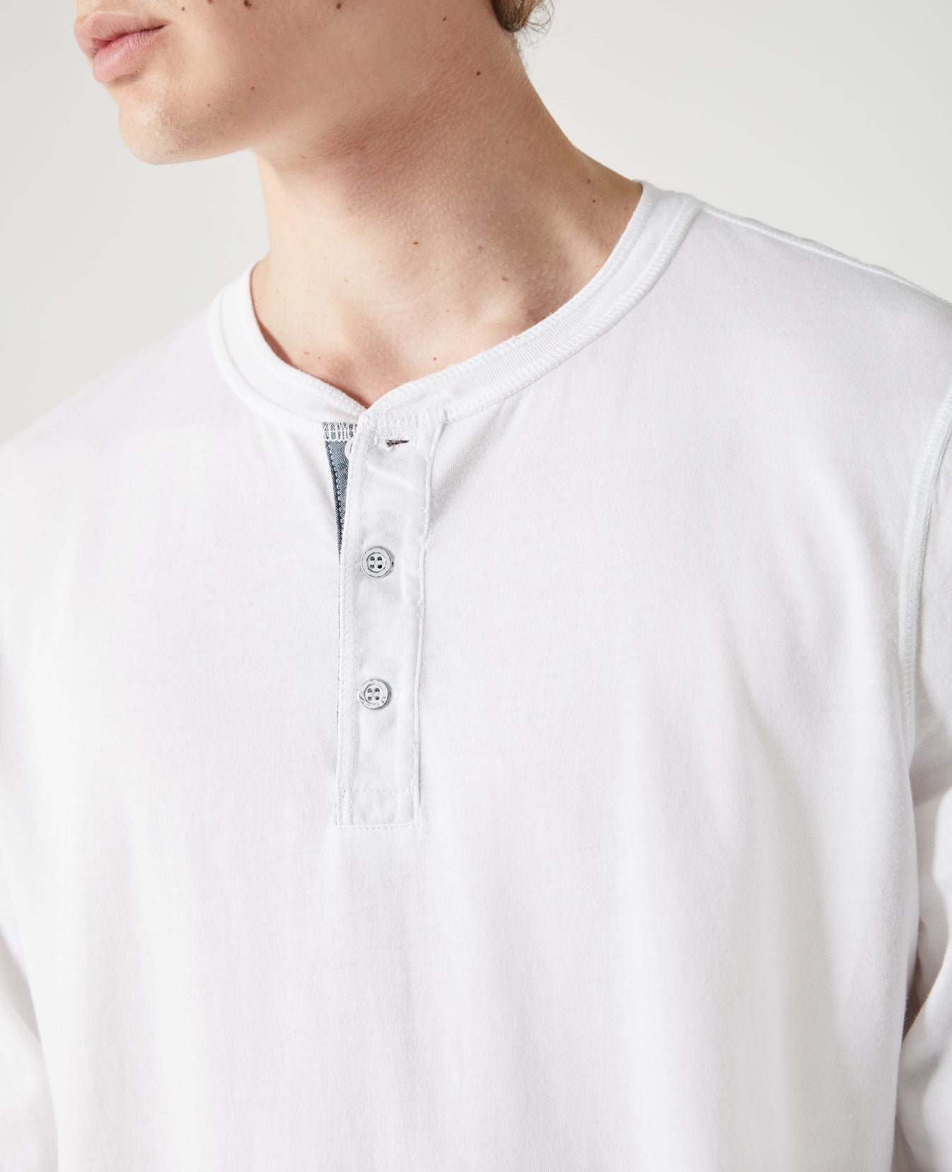 The Clyde Henley a basic henley is a foolproof addition to your casual wardrobe in exceptionally comfortable cotton-modal jersey. Cut for a standard fit designed with a three-button placket and long sleeves.
