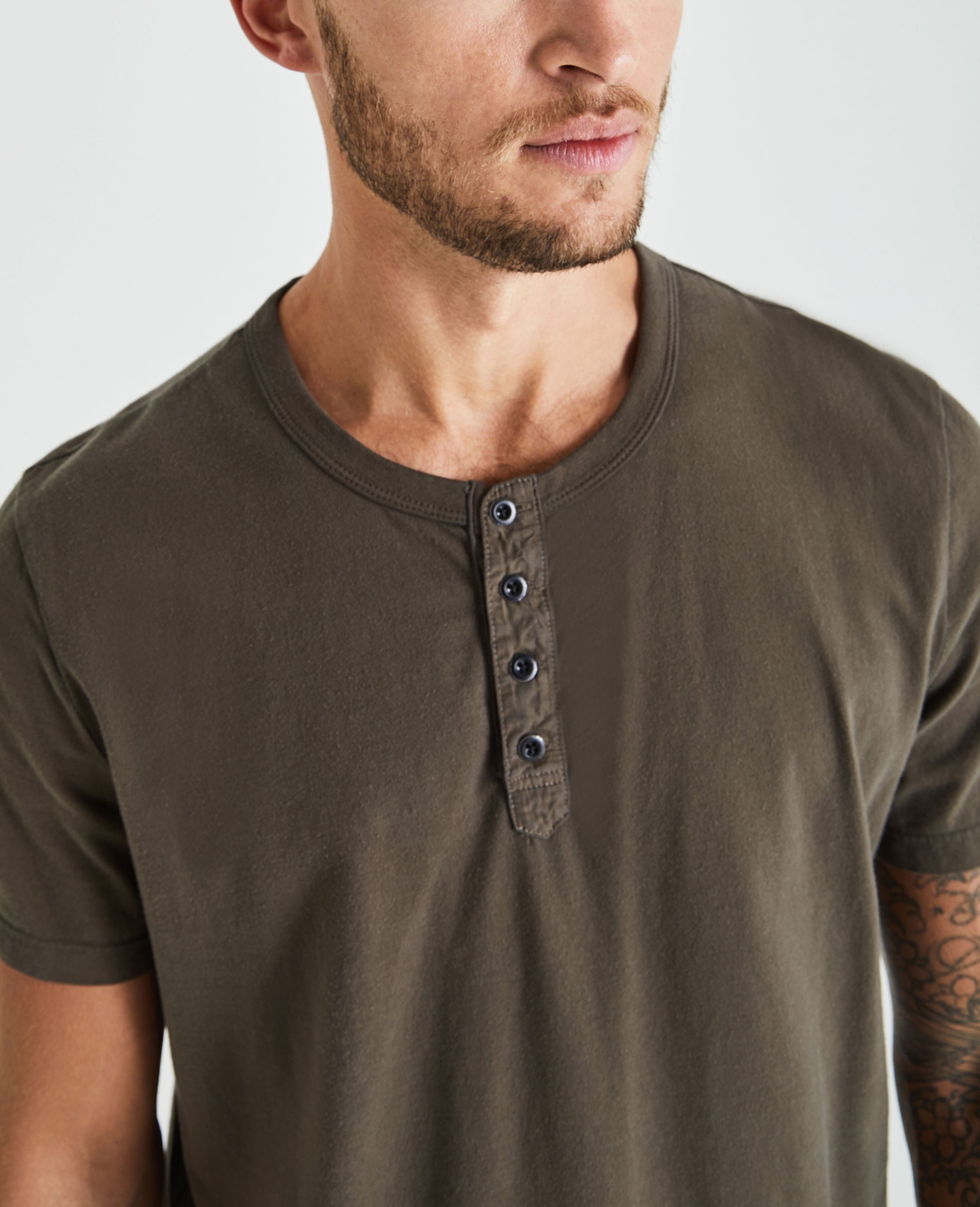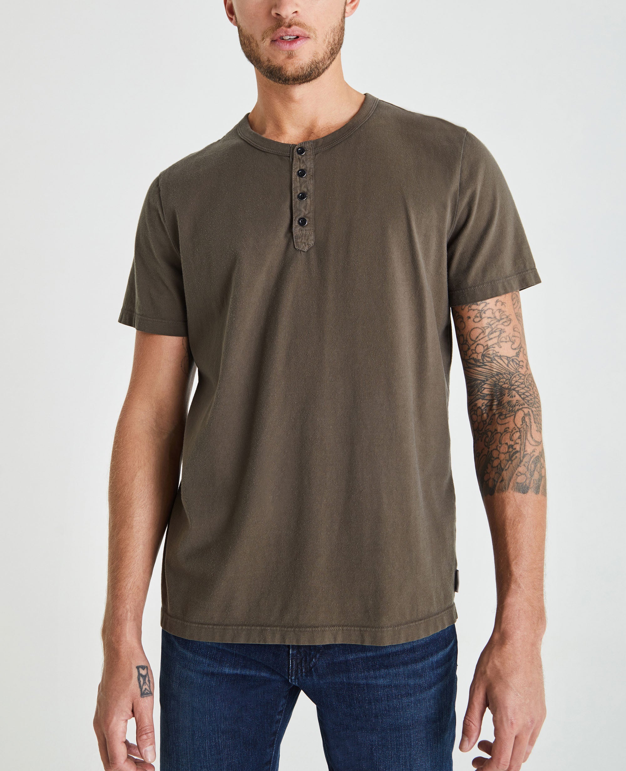 The Clyde Henley Top for men features a rich brown taupe hue, a classic crew neckline, and long sleeves complete with ribbed cuffs. This men’s long sleeve shirt is designed in a lightweight fabric made from 100% cotton fibers that are thoughtfully knitted to prevent torqueing. This AG exclusive fabric offers a durable 20/1 knit that withstands everyday wear through the seasons.