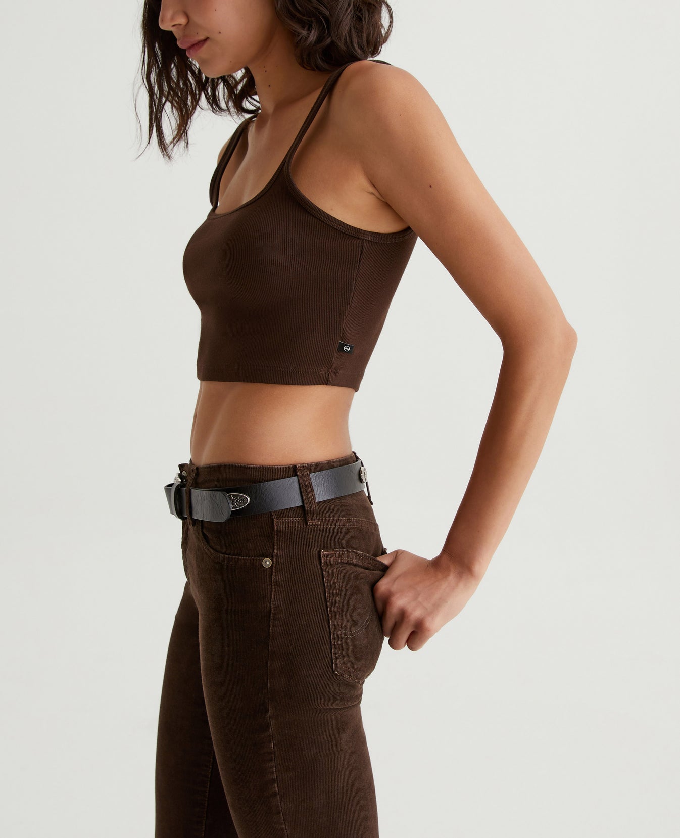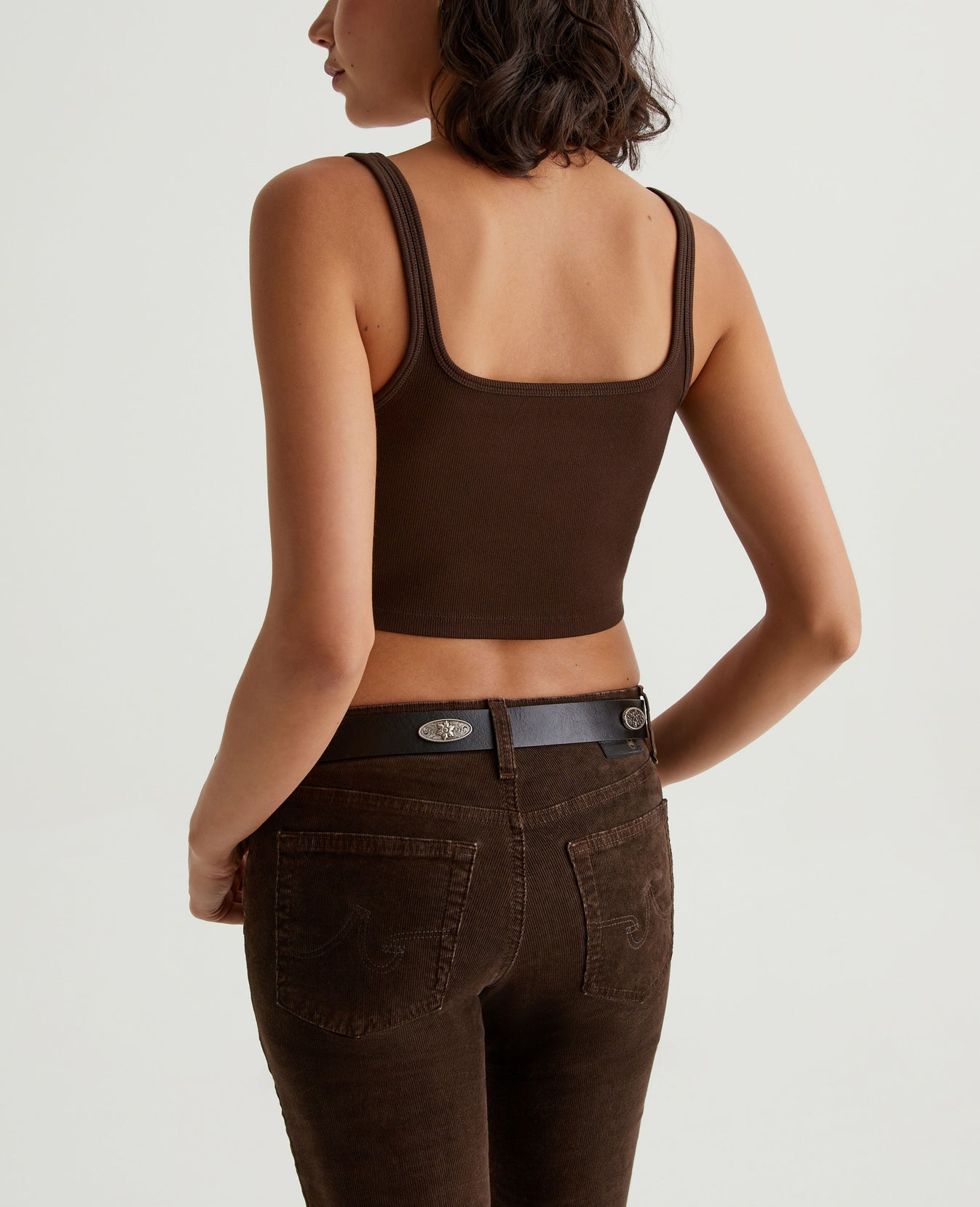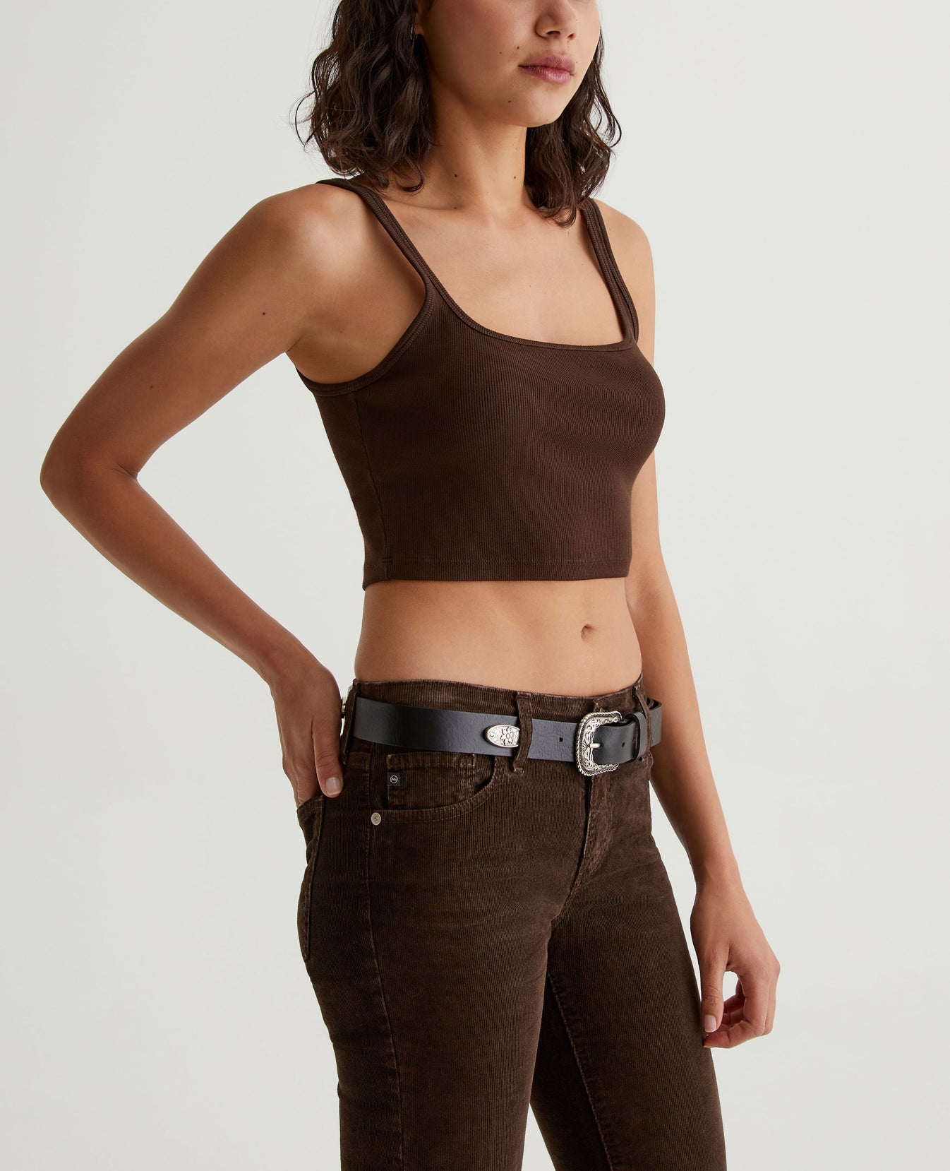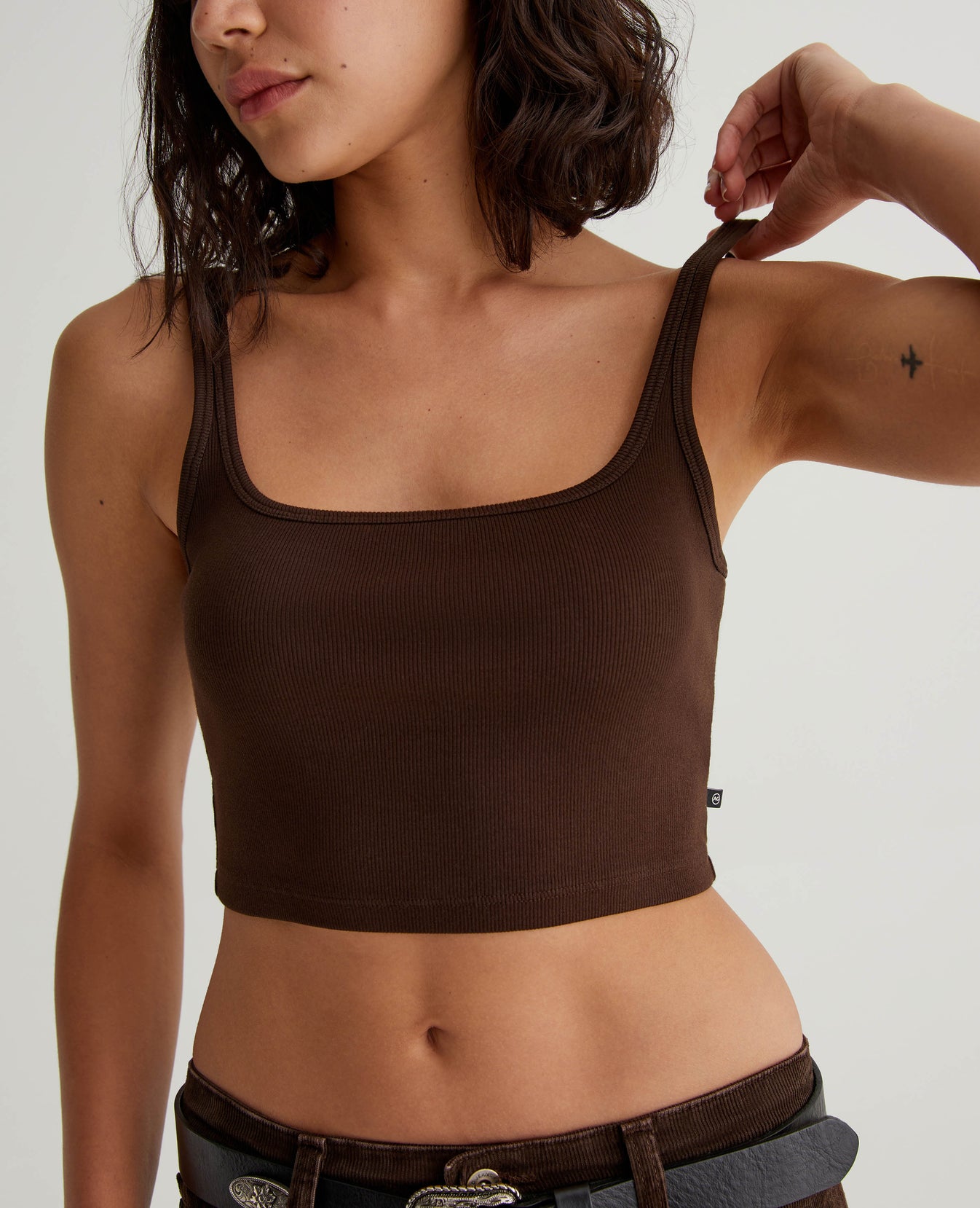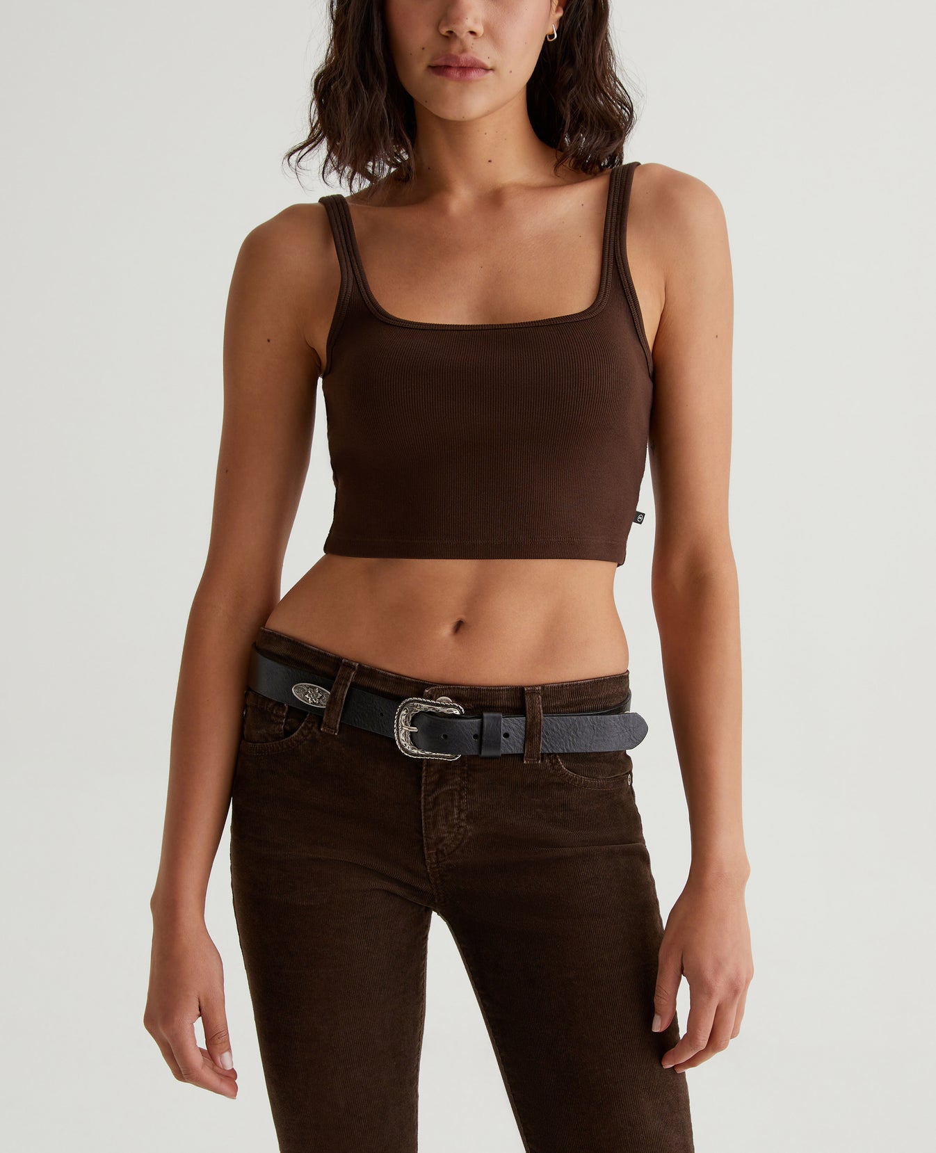 The Cooper tank is cut for a midriff-baring slim fit in a heavy cotton-blend rib knit that gives structure and support to the rounded square-neck design. This tank is easy to dress up or wear casual.